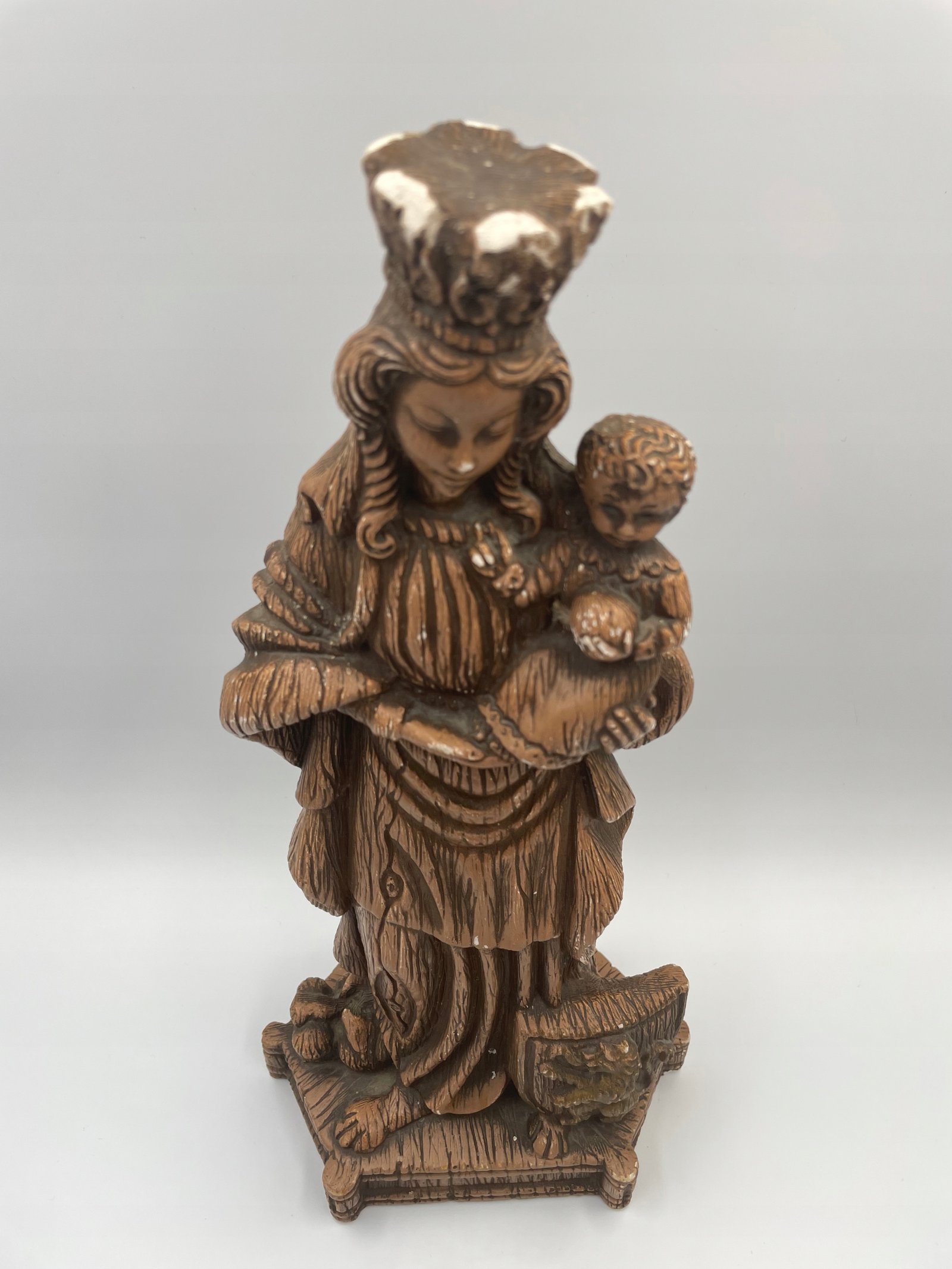 Figurka gipsowa Madonna z Dzieciątkiem Notre Dame Merlini vintage