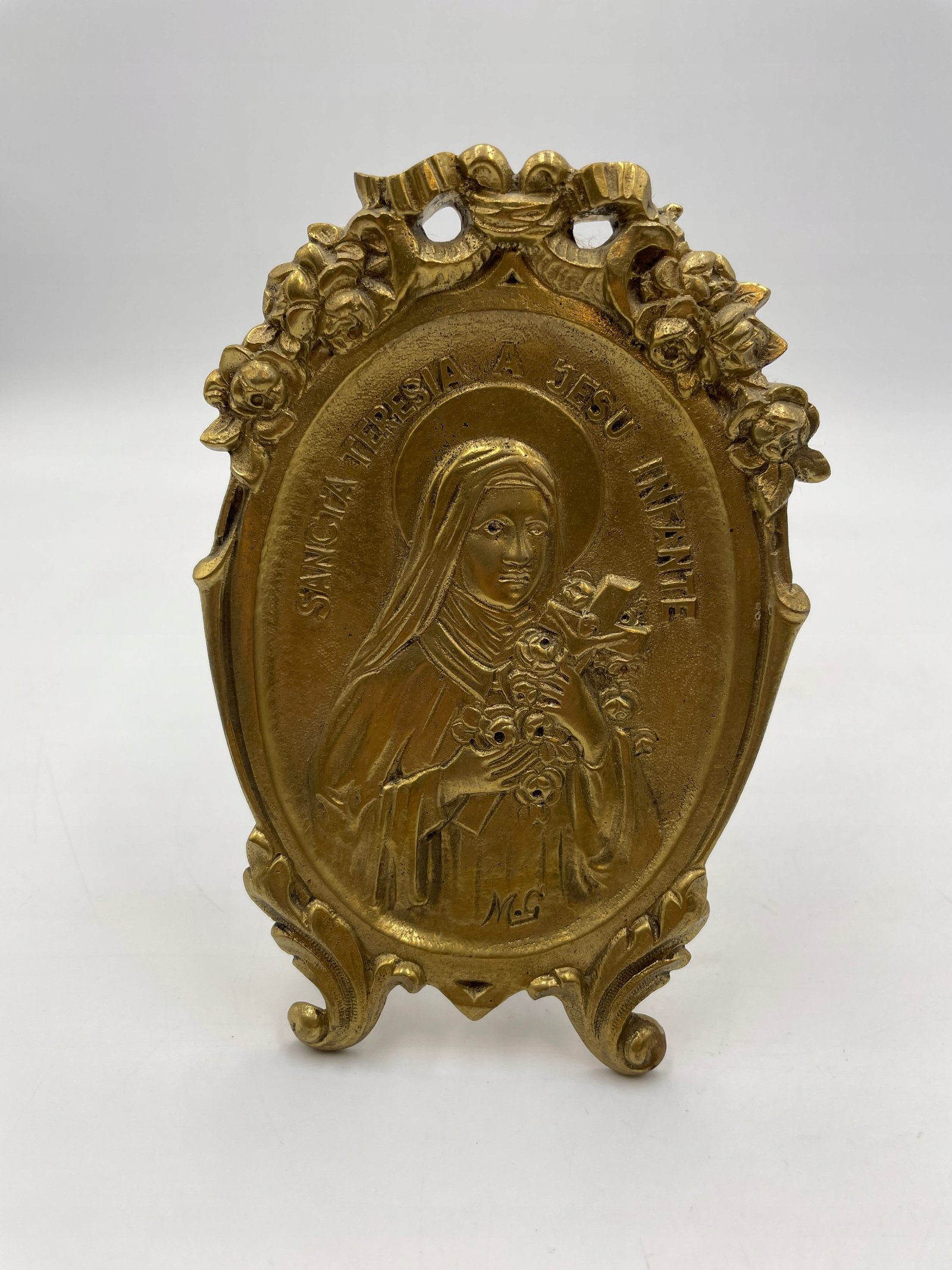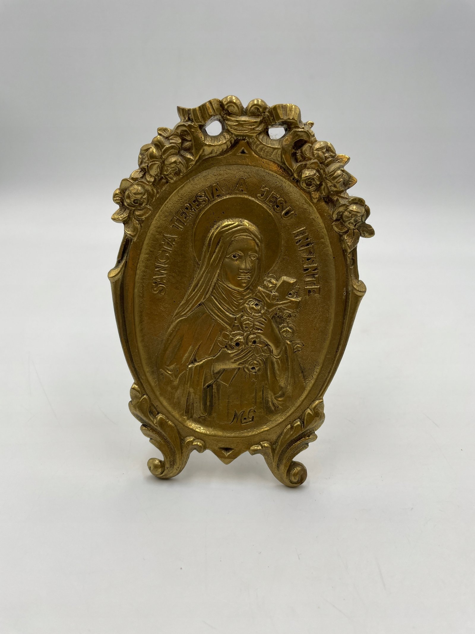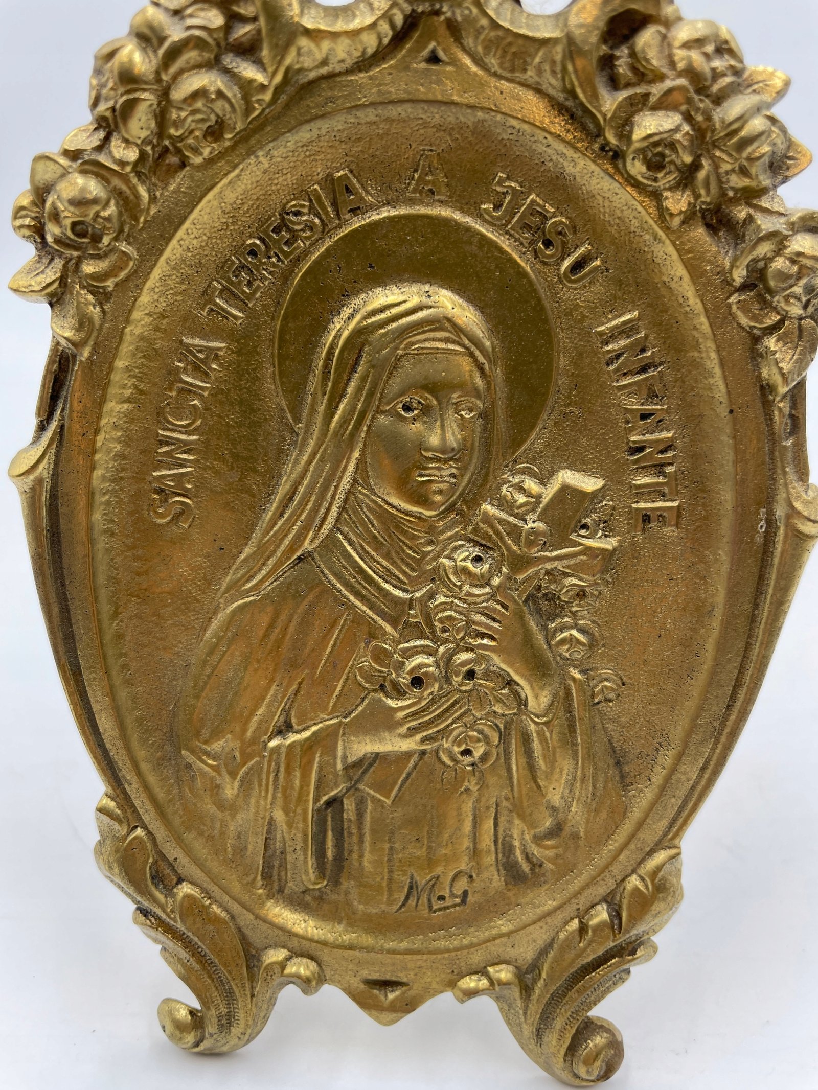 Płaskorzeźba mosiężna z wizerunkiem św. Teresy