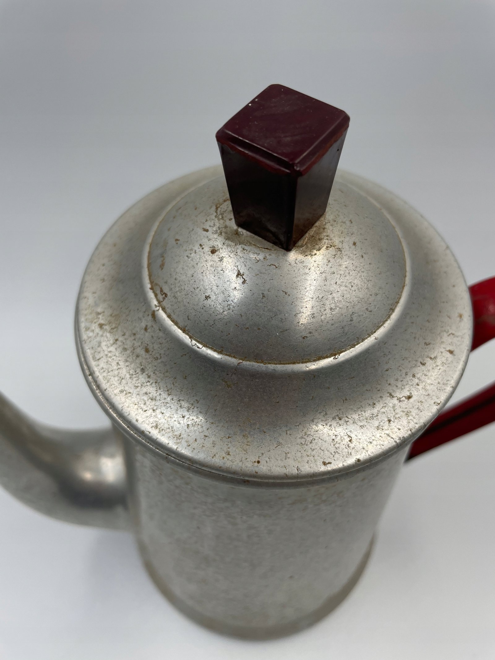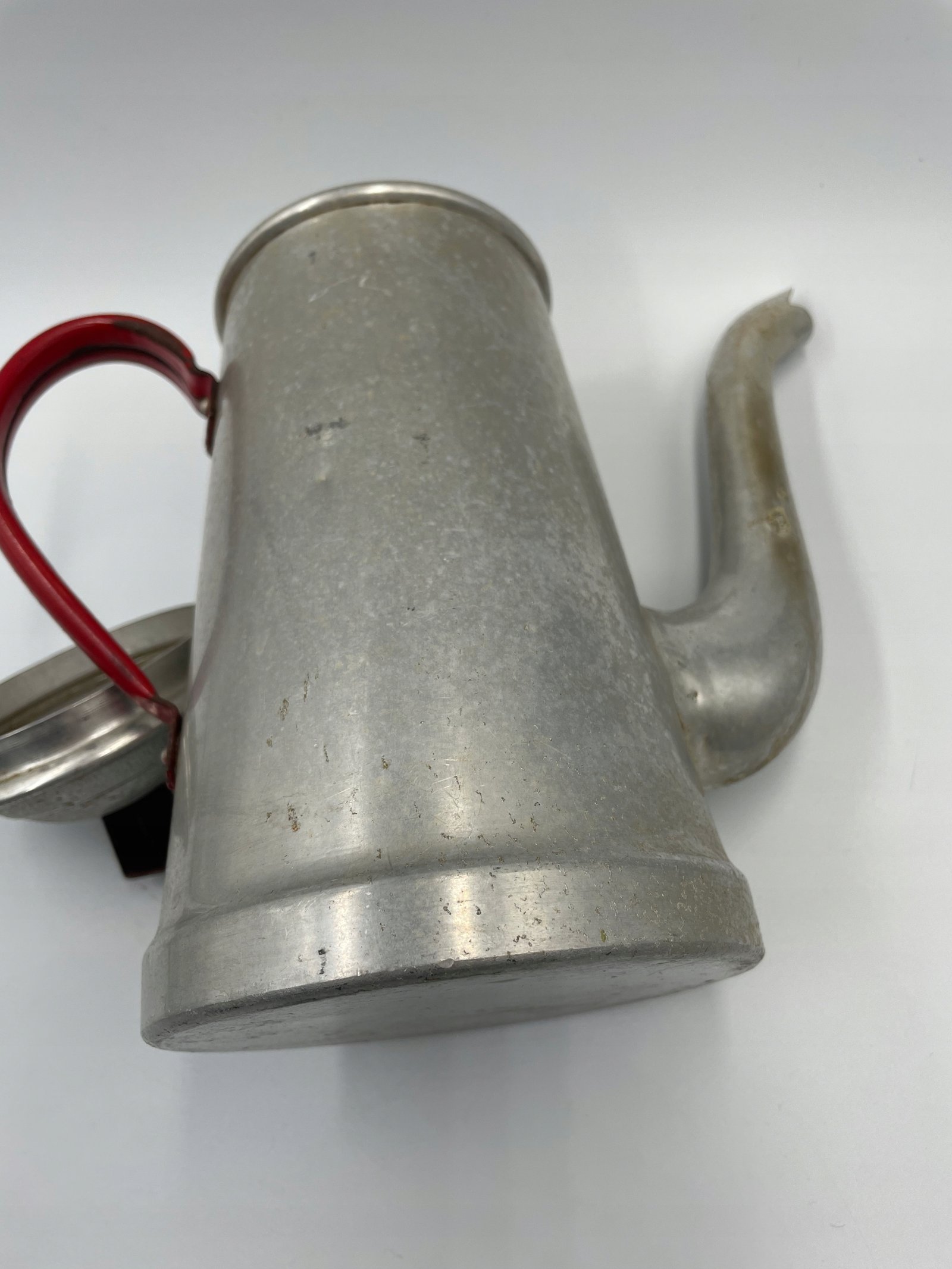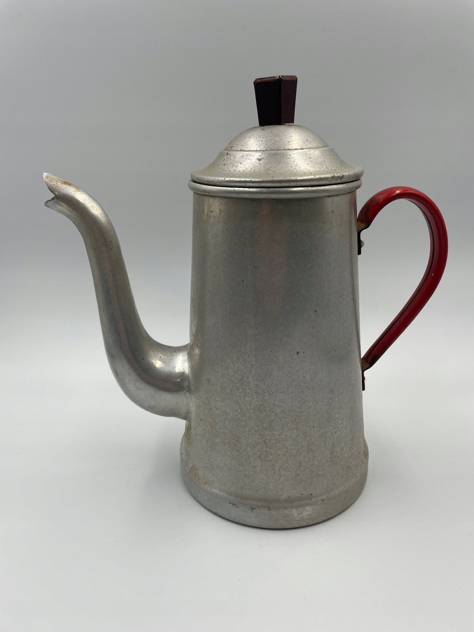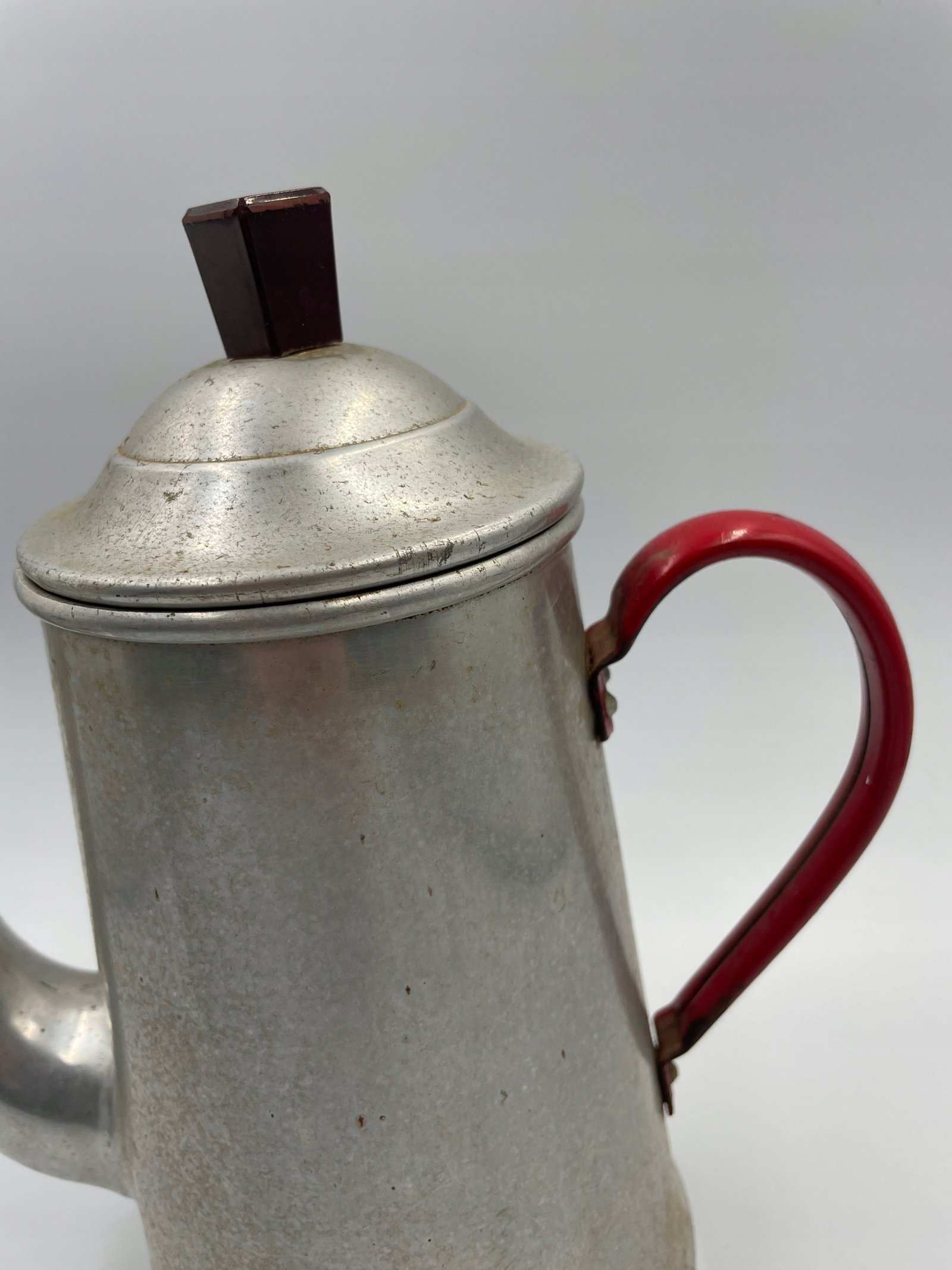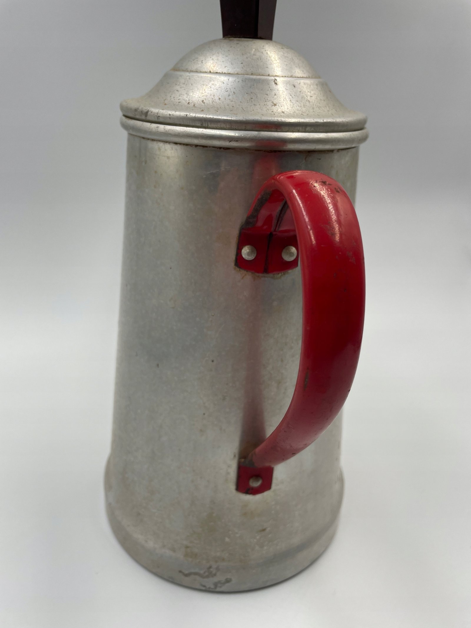 Ekspres do kawy aluminiowy z czerwonym uchwytem vintage