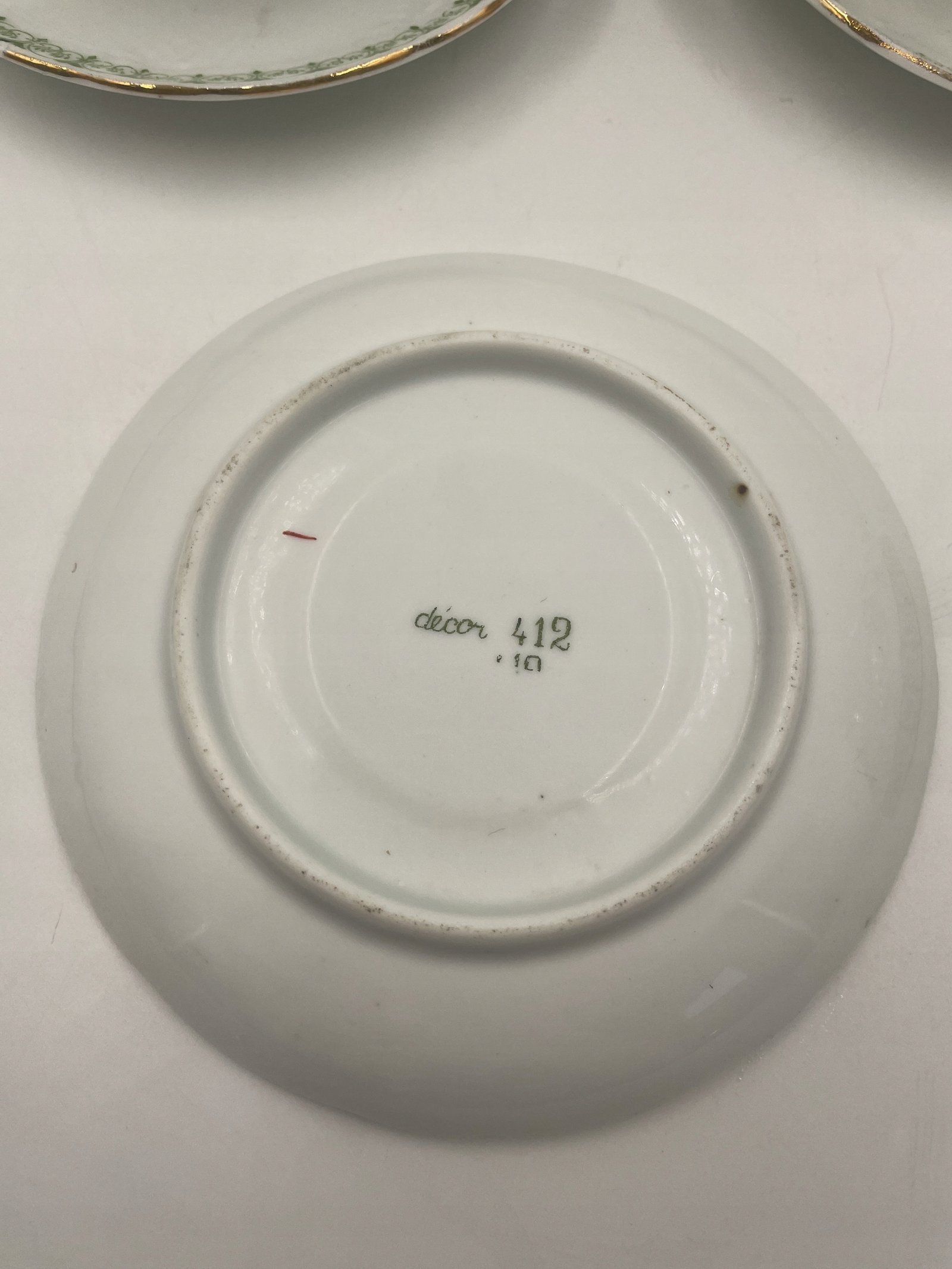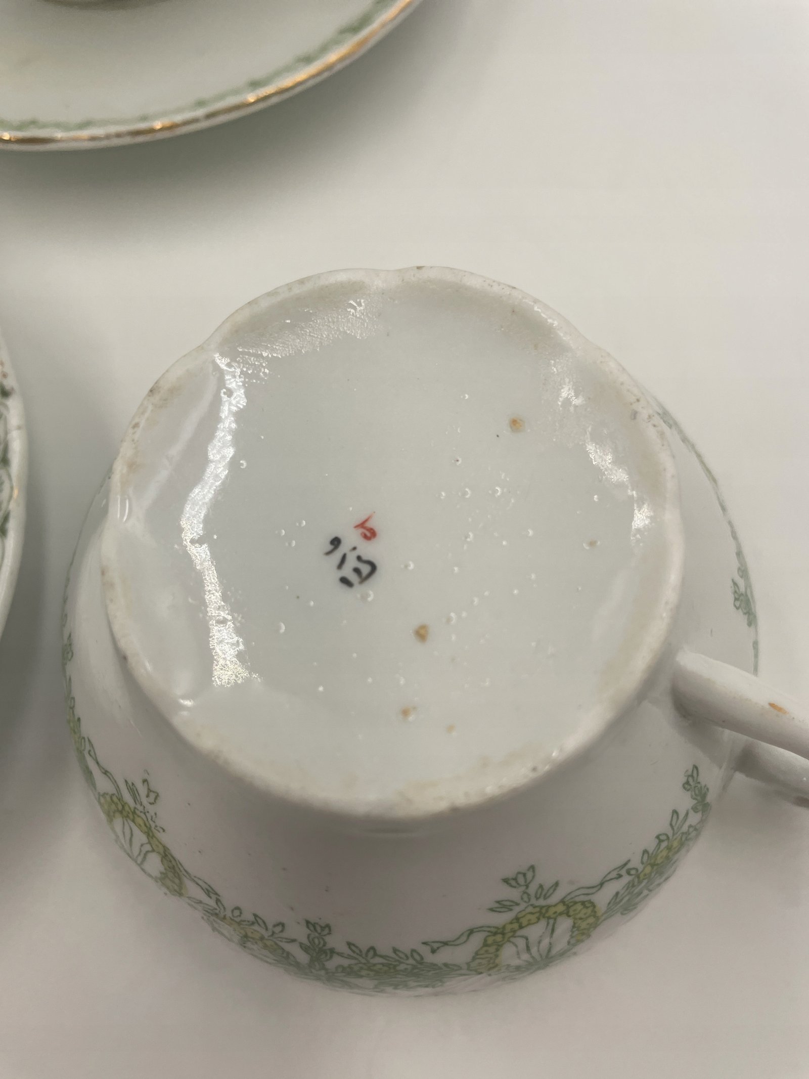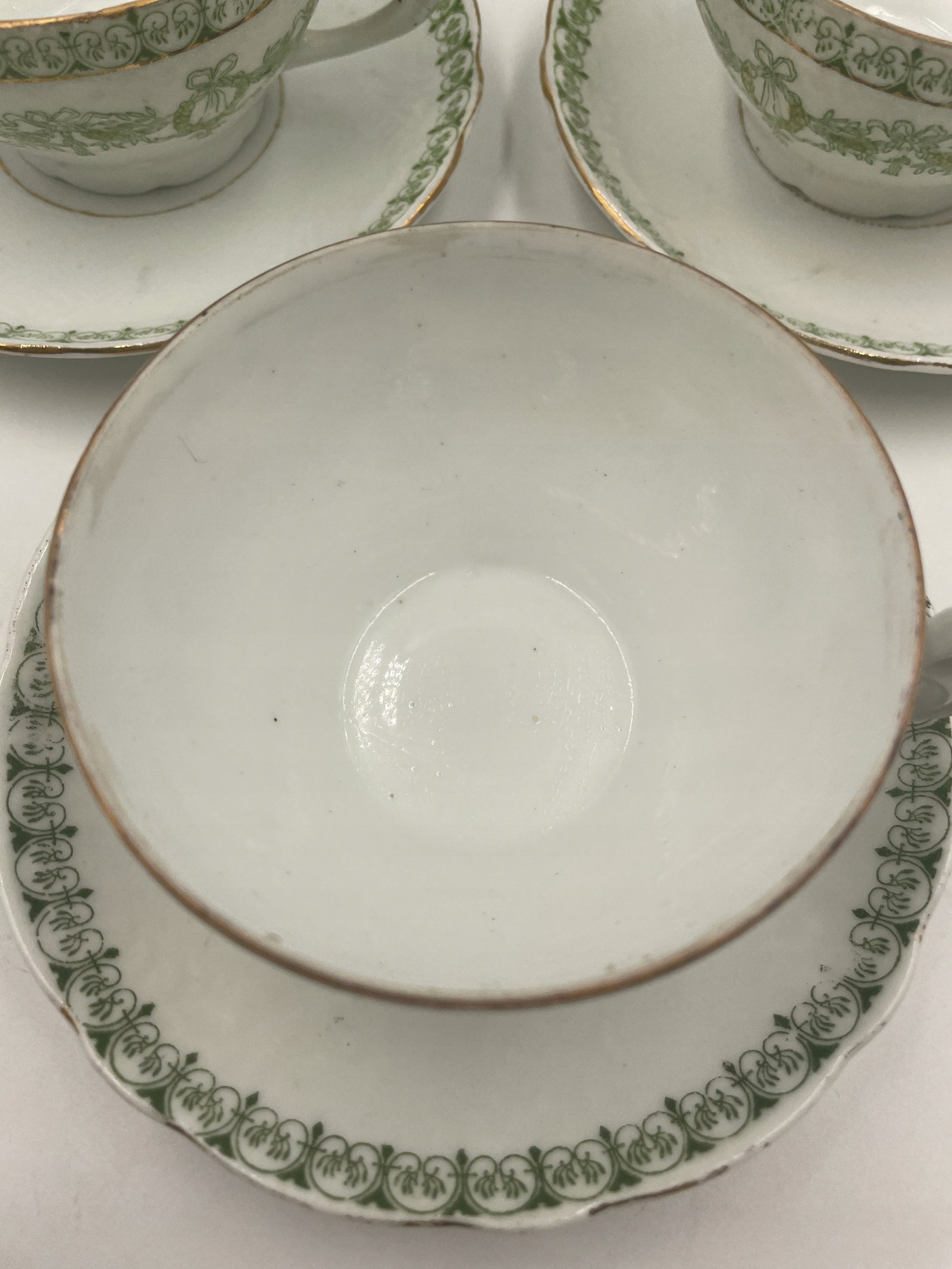 Zestaw filiżanek ze spodkami porcelanowy biało-zielony 5 osób vintage