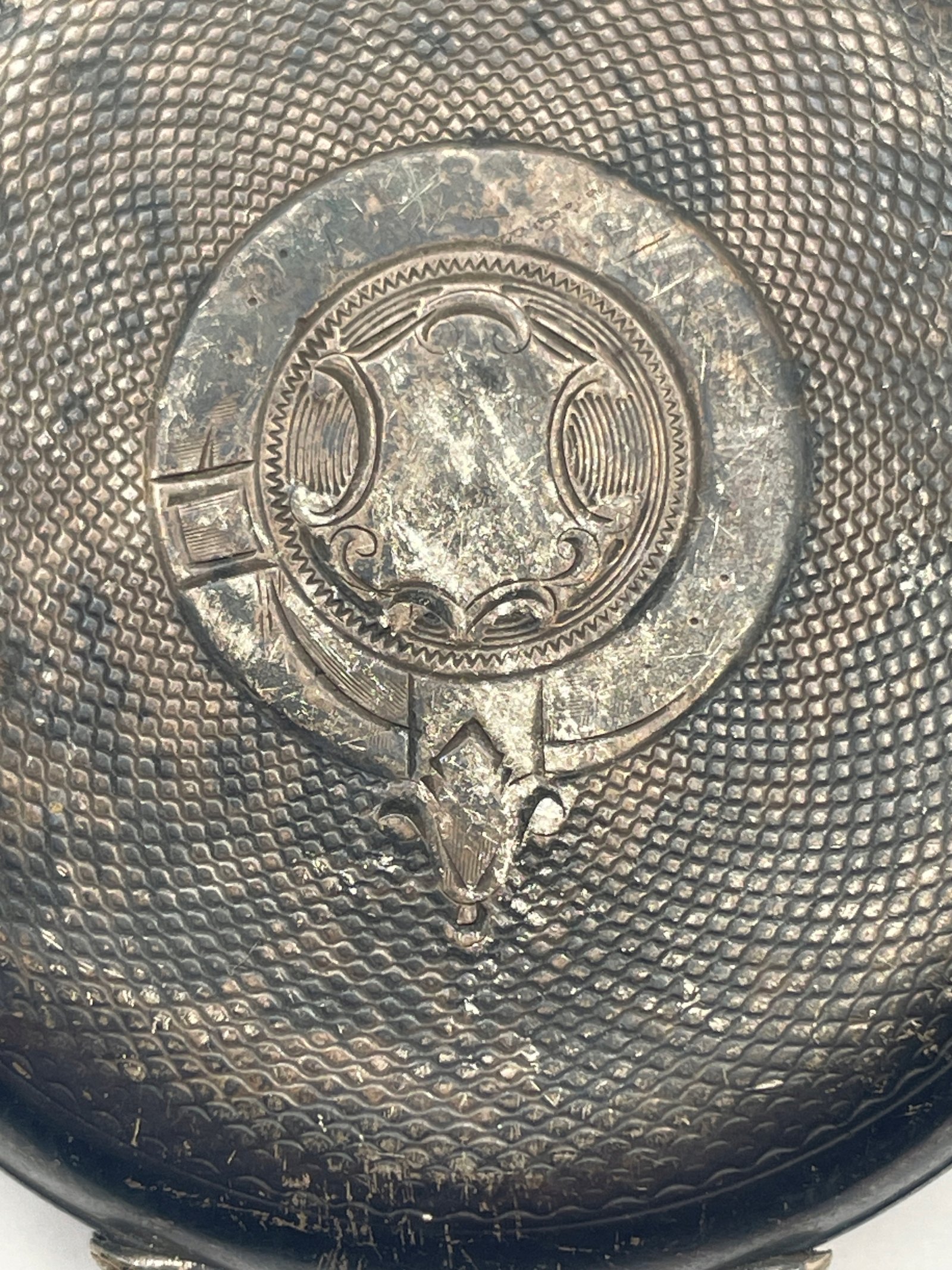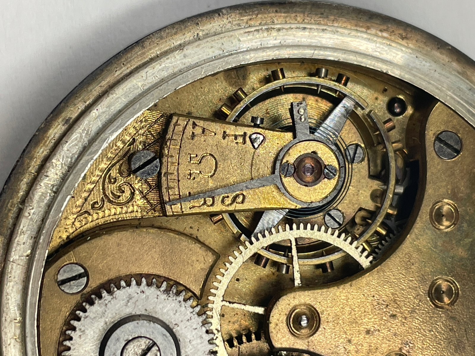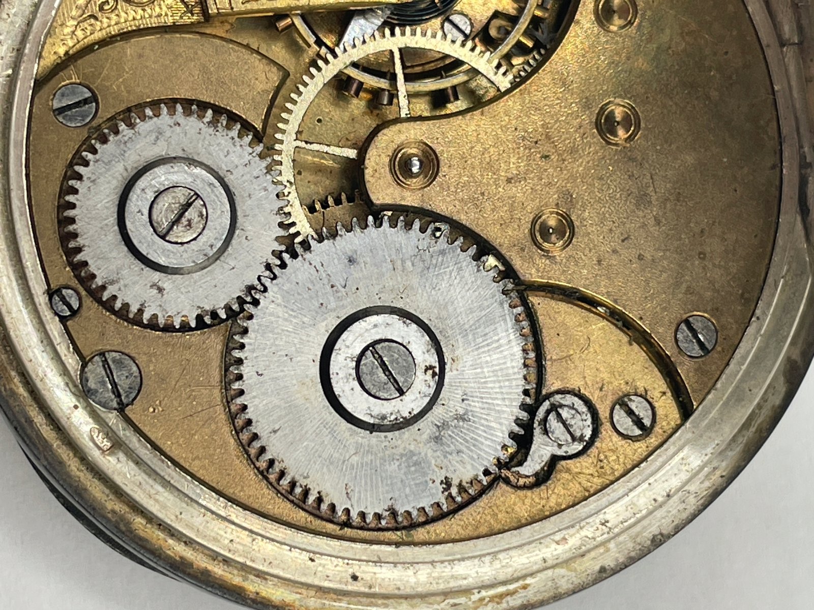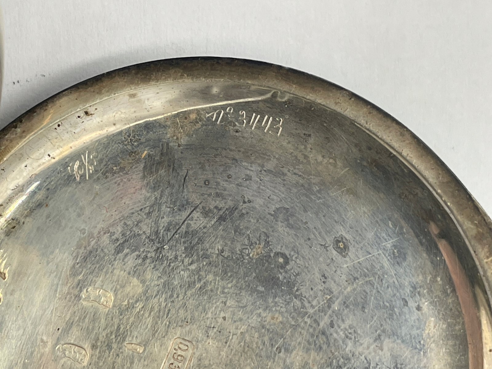 Stylowy, antyczny zegarek kieszonkowy wykonany z wysokiej próby srebra 935. Potwierdzają to punce znajdujące się na kopercie. Wewnętrzna osłona mechanizmu została wykonana z innego metalu, co było powszechną praktyką dla dodatkowej ochrony mechanizmu.