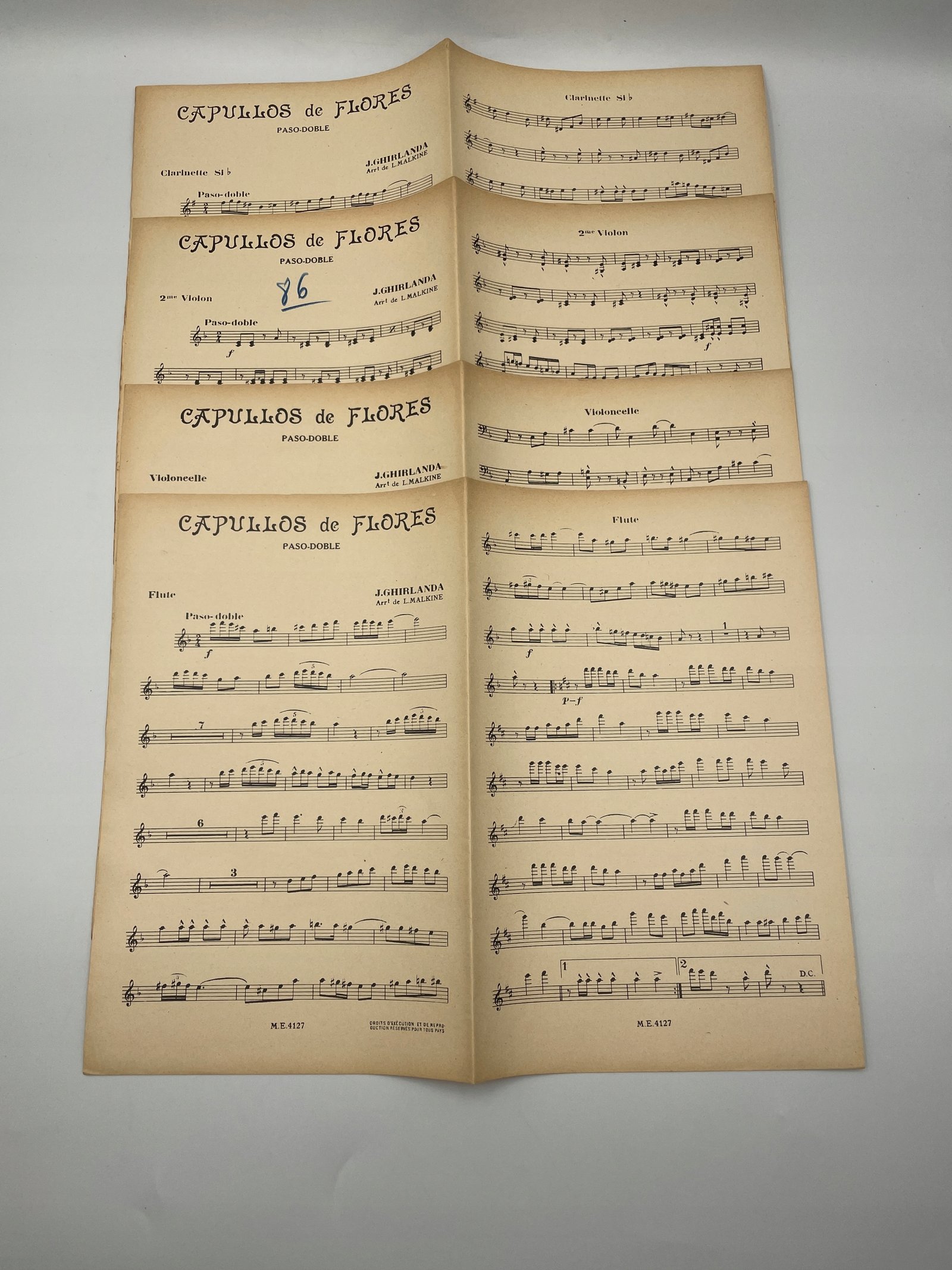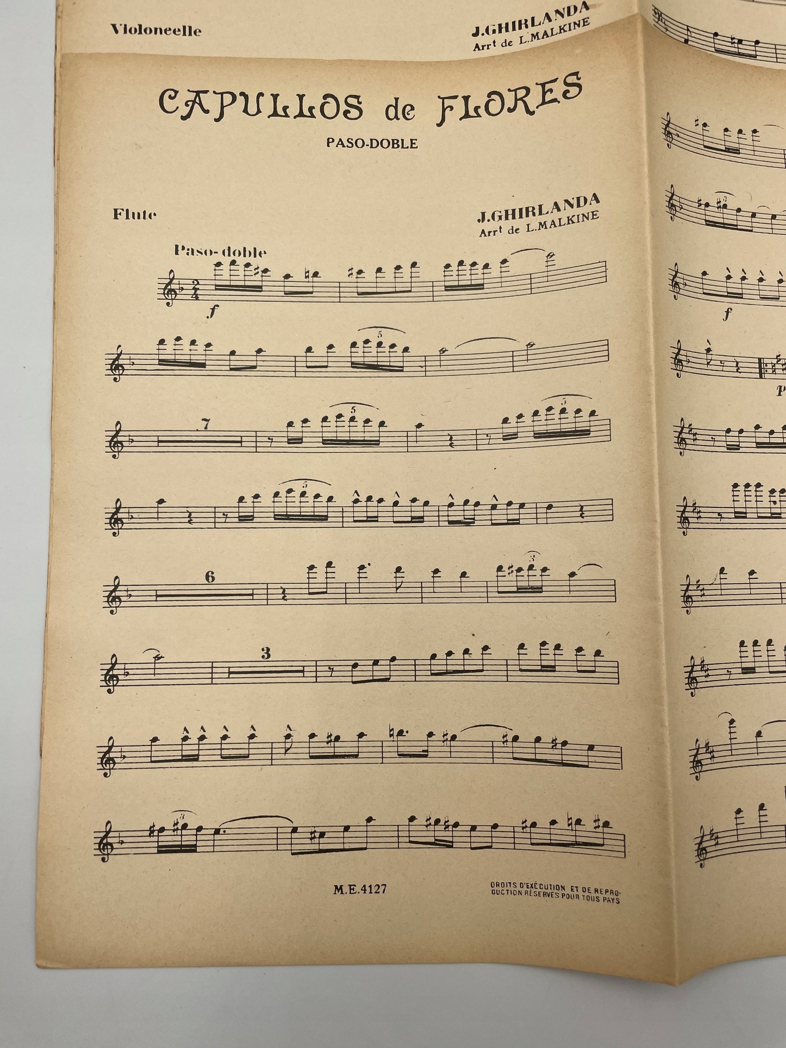 Oryginalne wydanie utworu „Capullos de Flores”, skomponowanego przez J. Ghirlanda, z aranżacją L. Malkine’a. To paso doble — hiszpański taniec o marszowym rytmie i żywiołowej melodii, utrzymany w duchu popularnej muzyki XX wieku.