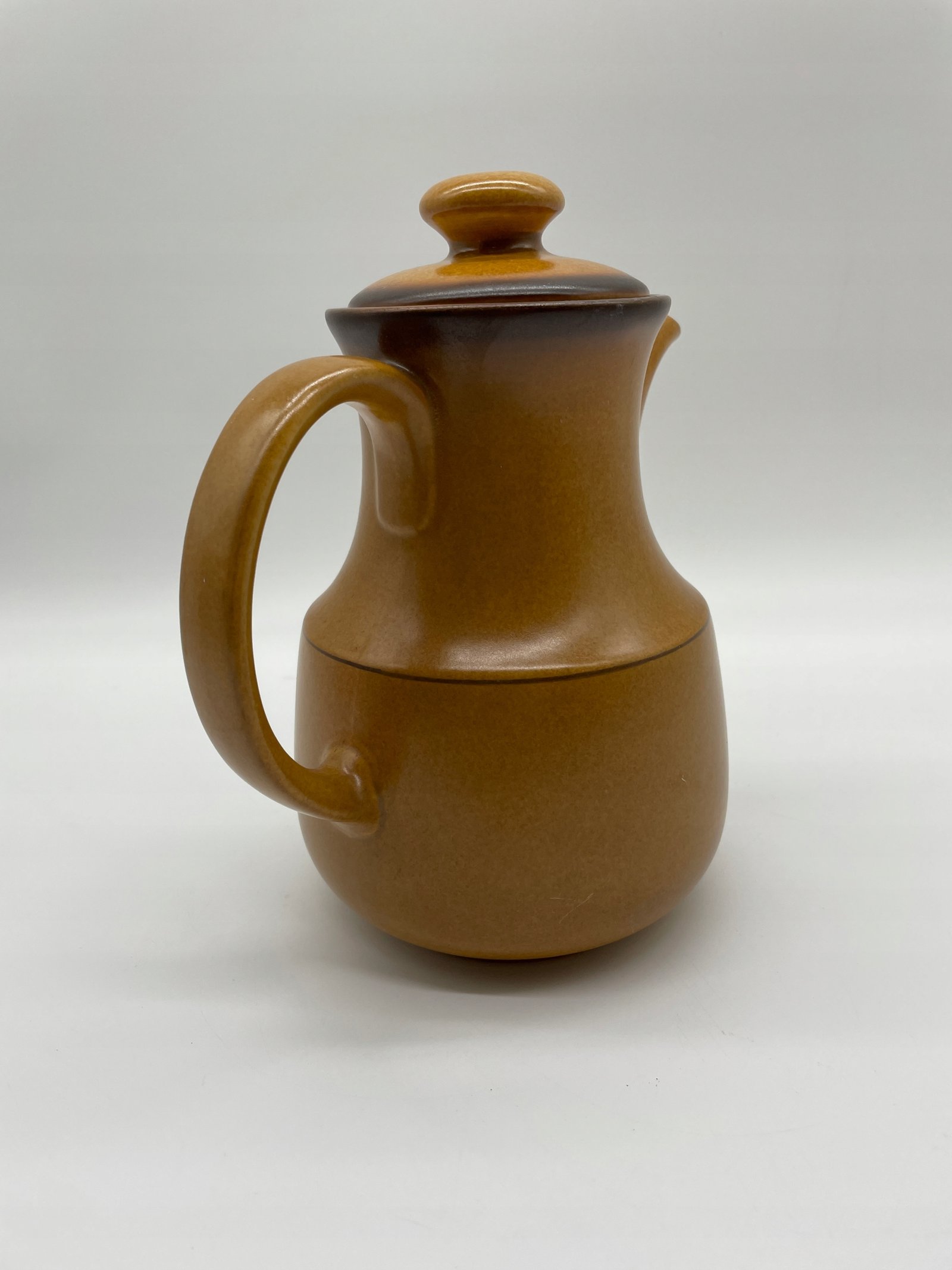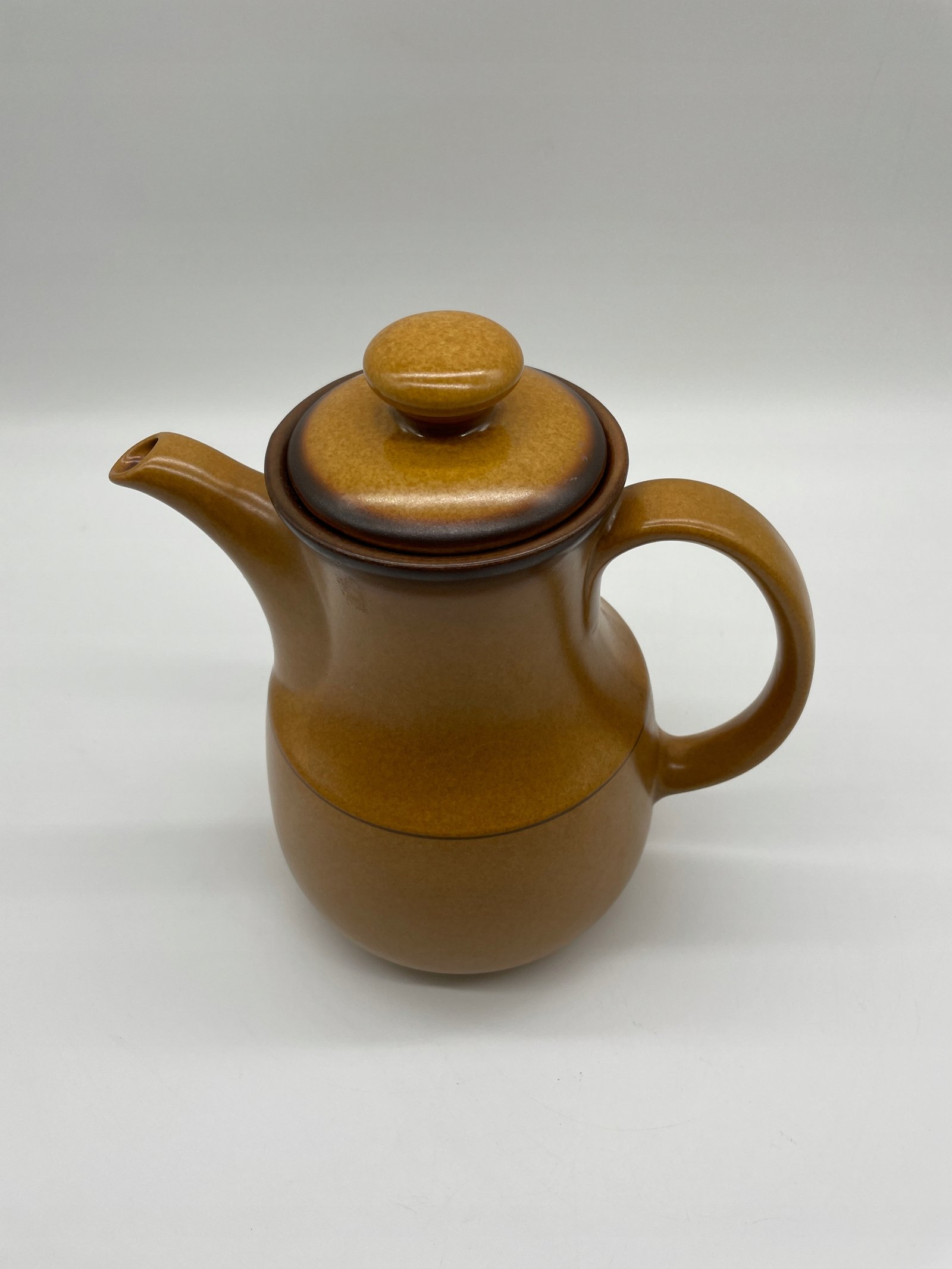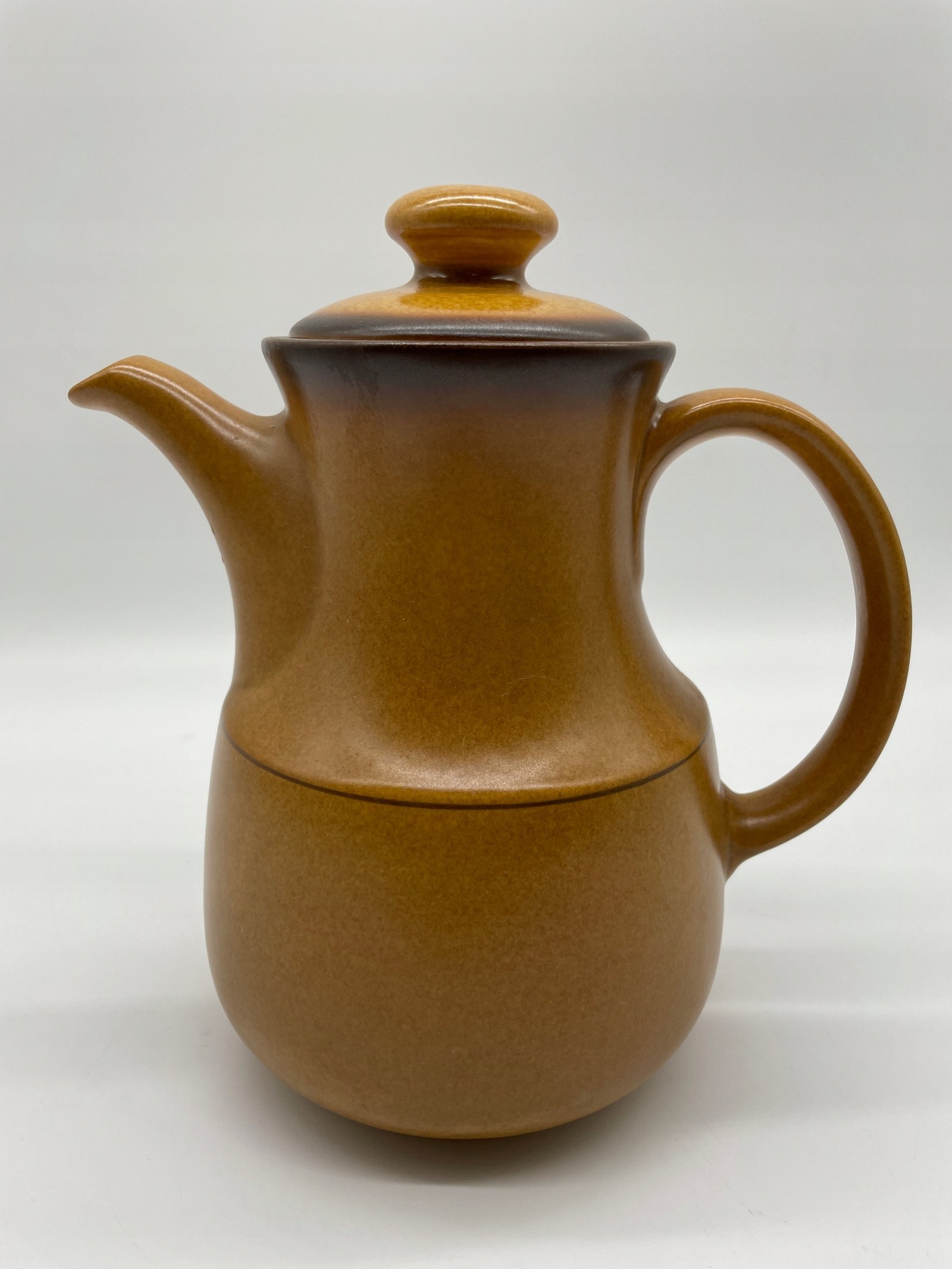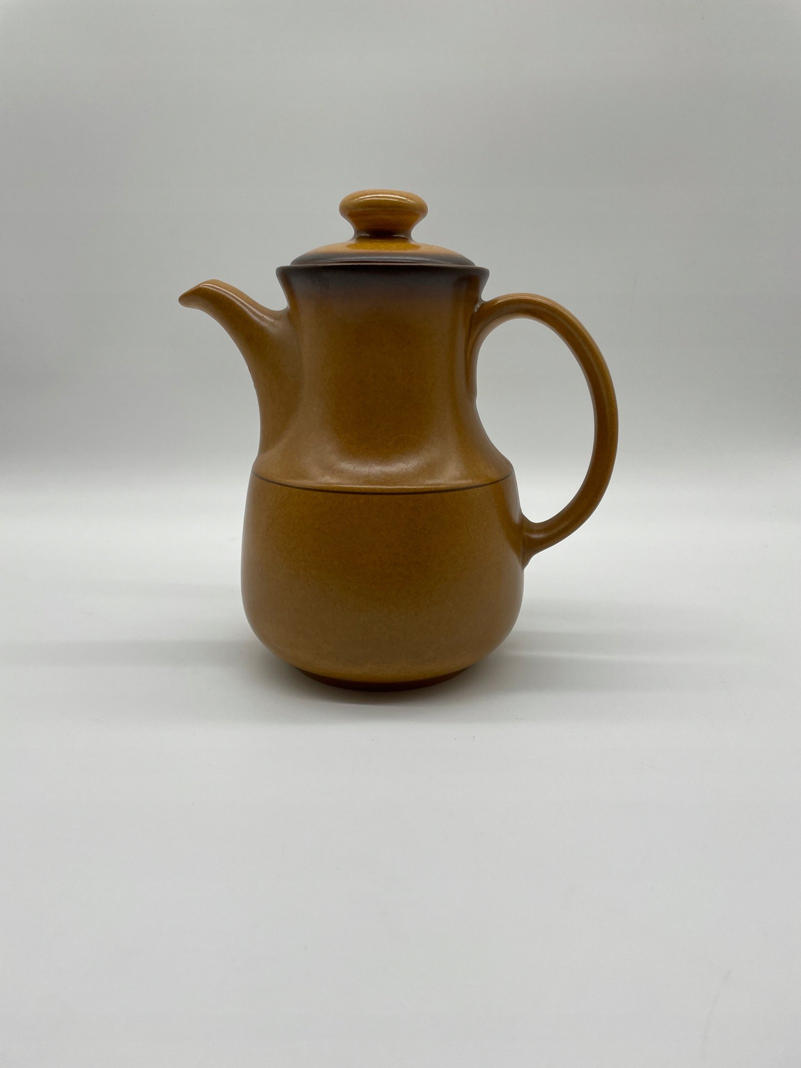 Oryginalny czajnik ceramiczny sygnowany przez renomowaną belgijską manufakturę Boch Keramis z La Louvière. Wykonany w stylu vintage z lat 60./70., szkliwiony w odcieniach ciepłego karmelu. Funkcjonalny i dekoracyjny – idealny do parzenia herbaty lub jako stylowy element kuchennej kolekcji.