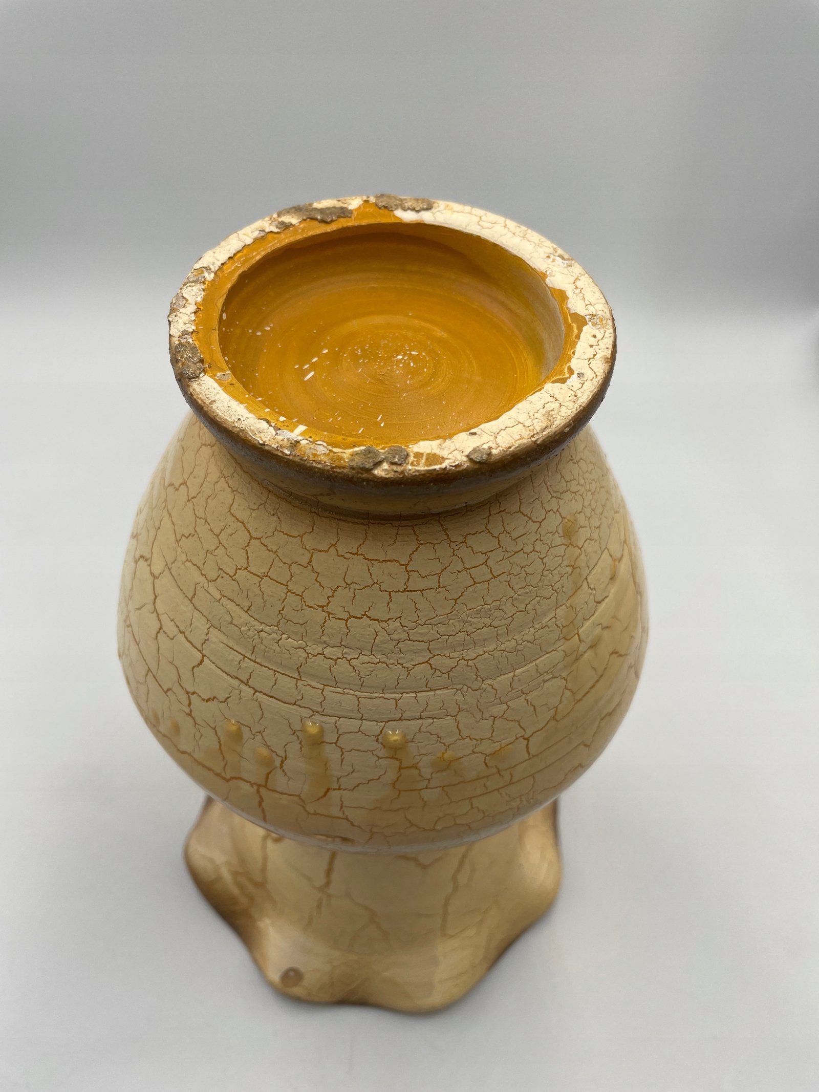 Przedmioty mogą mieć drobne rysy, odpryski, niektóre zabrudzenia, ślady użytkowania i zmiany tekstury spowodowane starzeniem się. Ponieważ stopień zużycia może różnić się w zależności od indywidualnego postrzegania, prosimy o zrozumienie i akceptację cech starych przedmiotów. Będziemy zadowoleni, jeśli będziesz mógł/mogła cieszyć się niepowtarzalnym urokiem starych, dobrych przedmiotów.