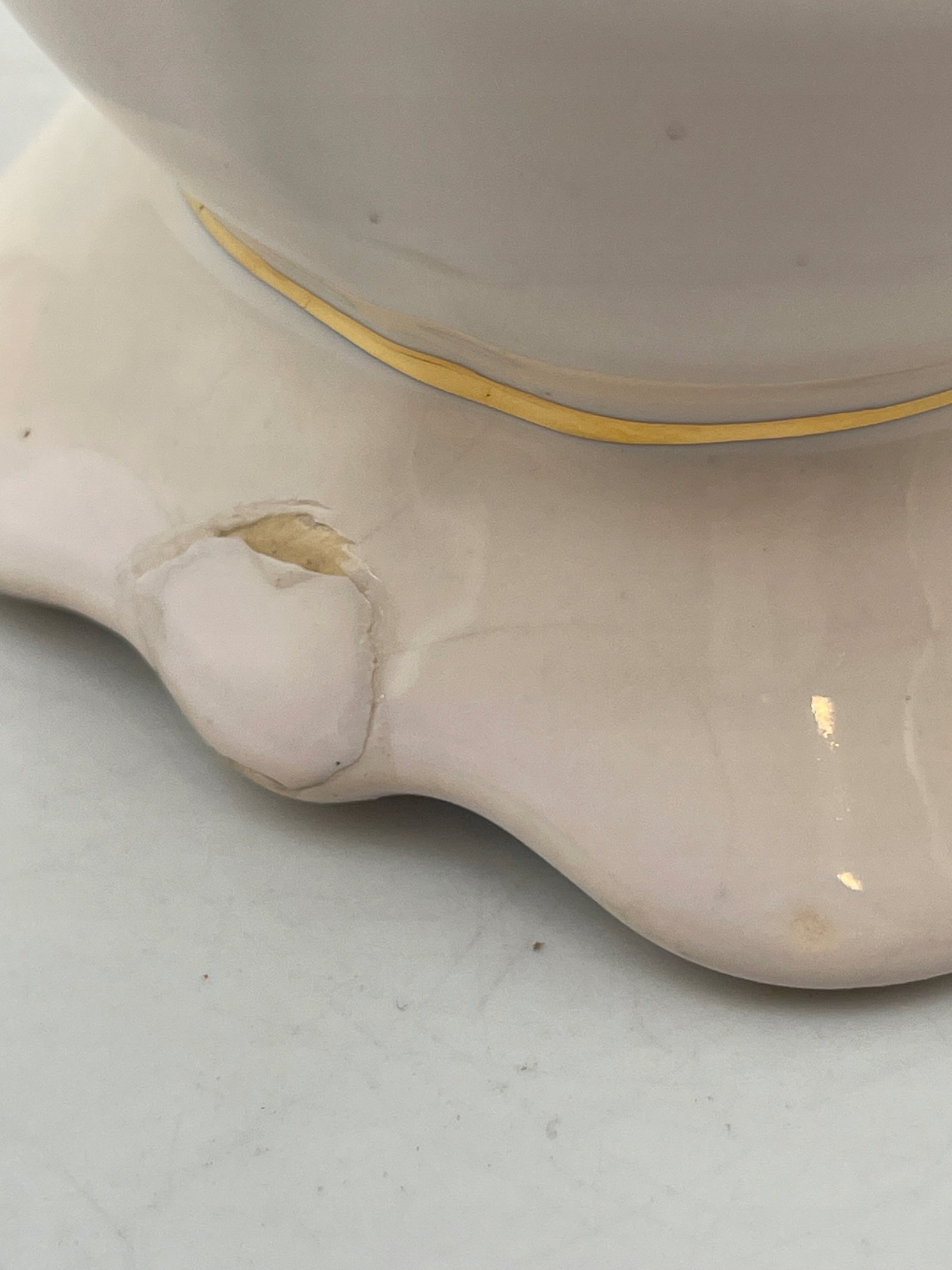 Przedmioty mogą mieć drobne rysy, odpryski, niektóre zabrudzenia, ślady użytkowania i zmiany tekstury spowodowane starzeniem się. Ponieważ stopień zużycia może różnić się w zależności od indywidualnego postrzegania, prosimy o zrozumienie i akceptację cech starych przedmiotów. Będziemy zadowoleni, jeśli będziesz mógł/mogła cieszyć się niepowtarzalnym urokiem starych, dobrych przedmiotów.
