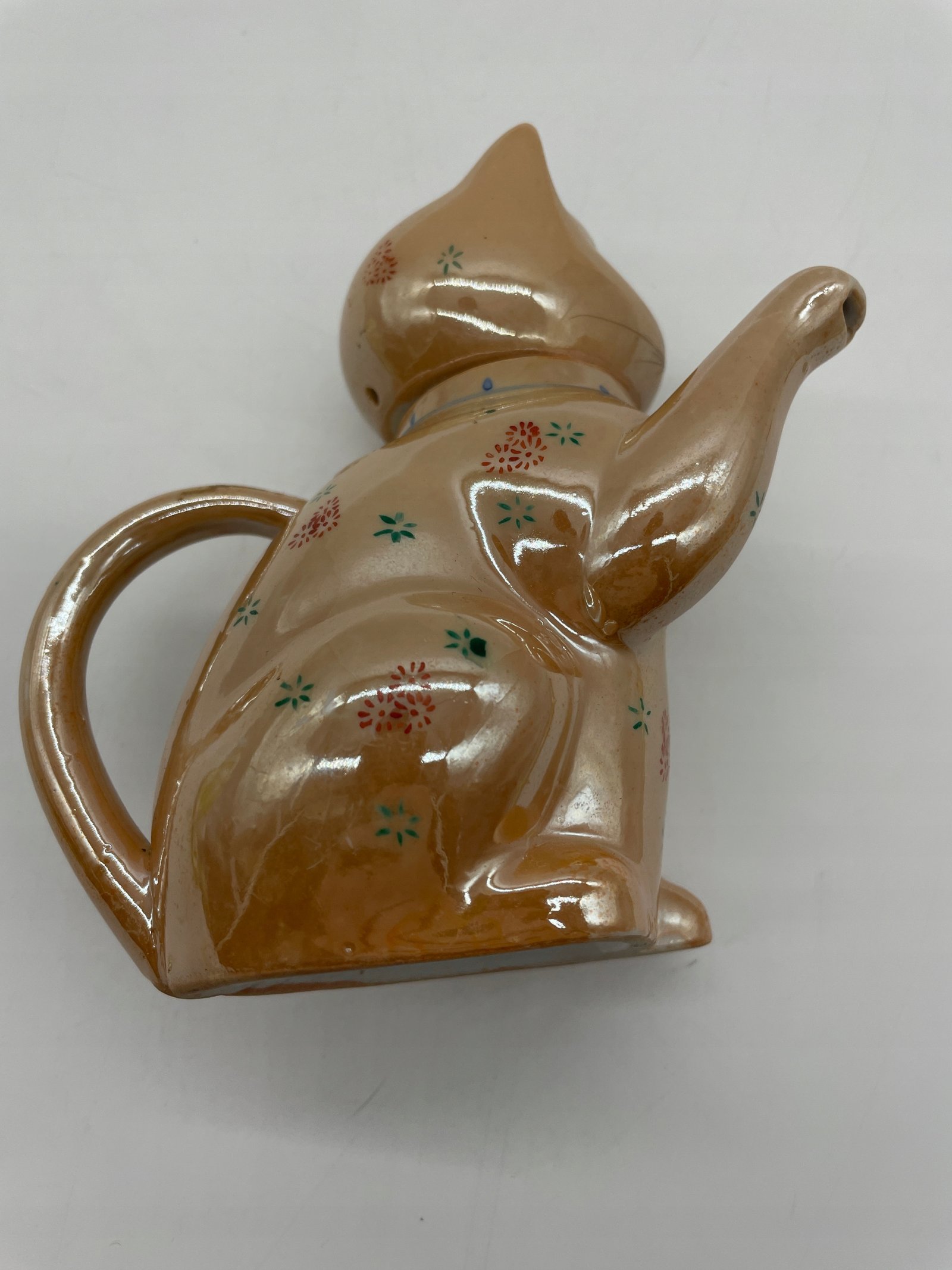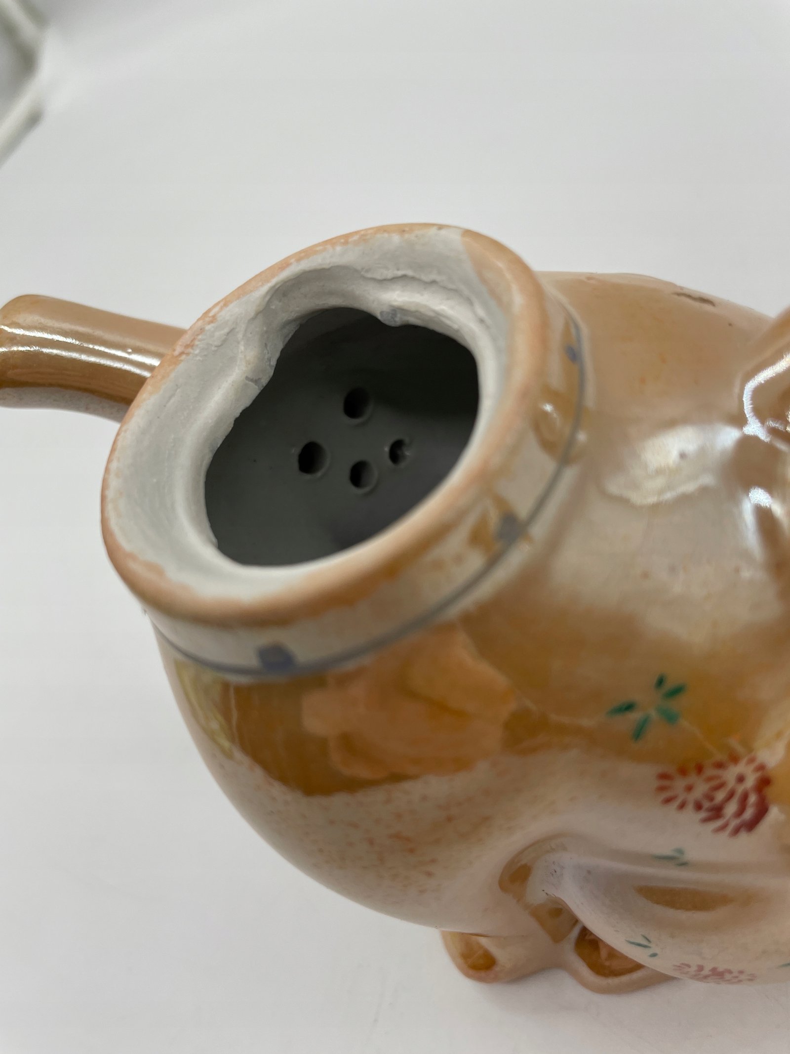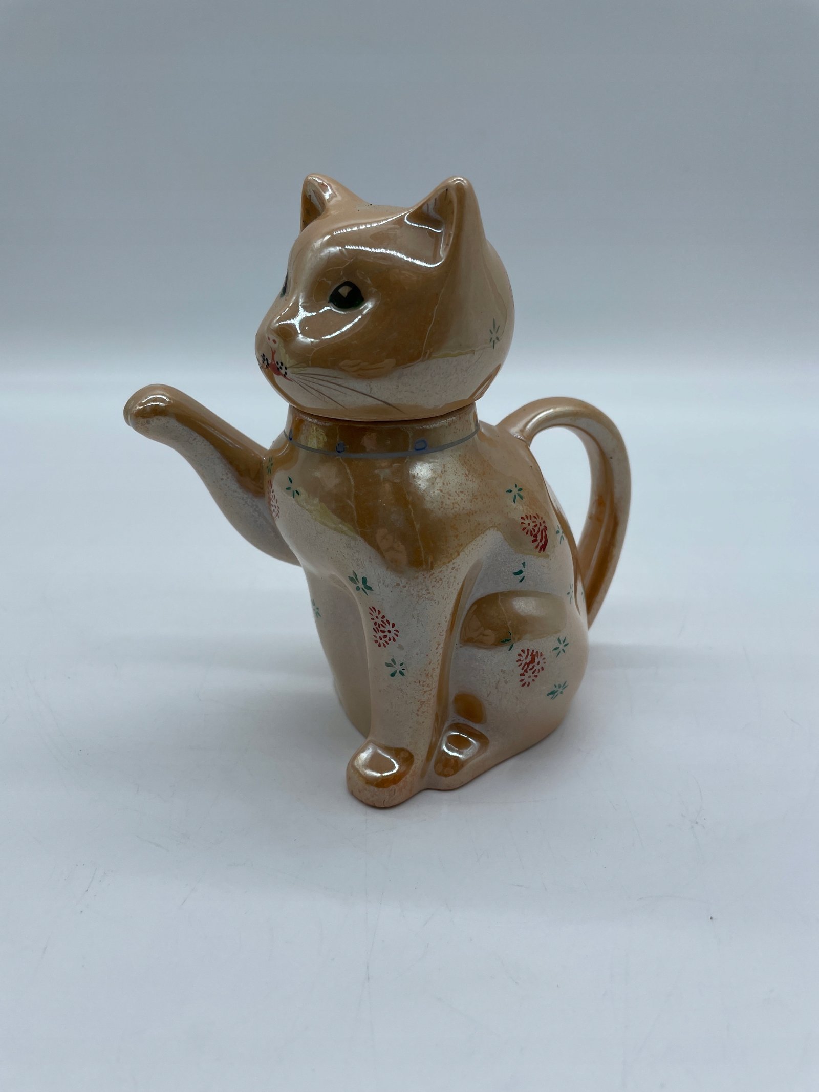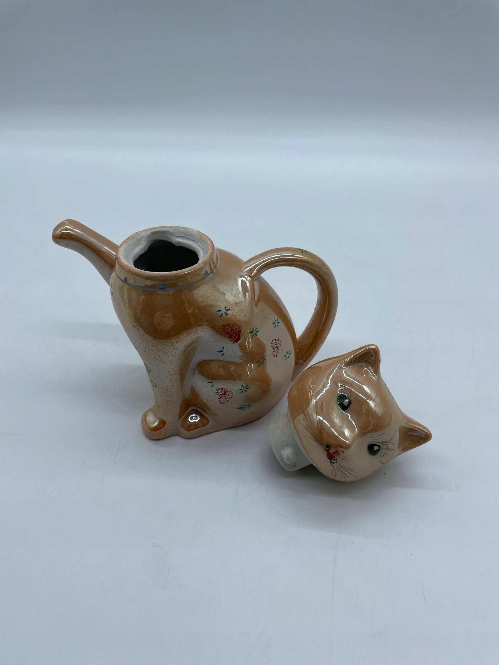 Czajnik ceramiczny kot z kwiatowym dekorem Chiny lata 70 14×13 cm