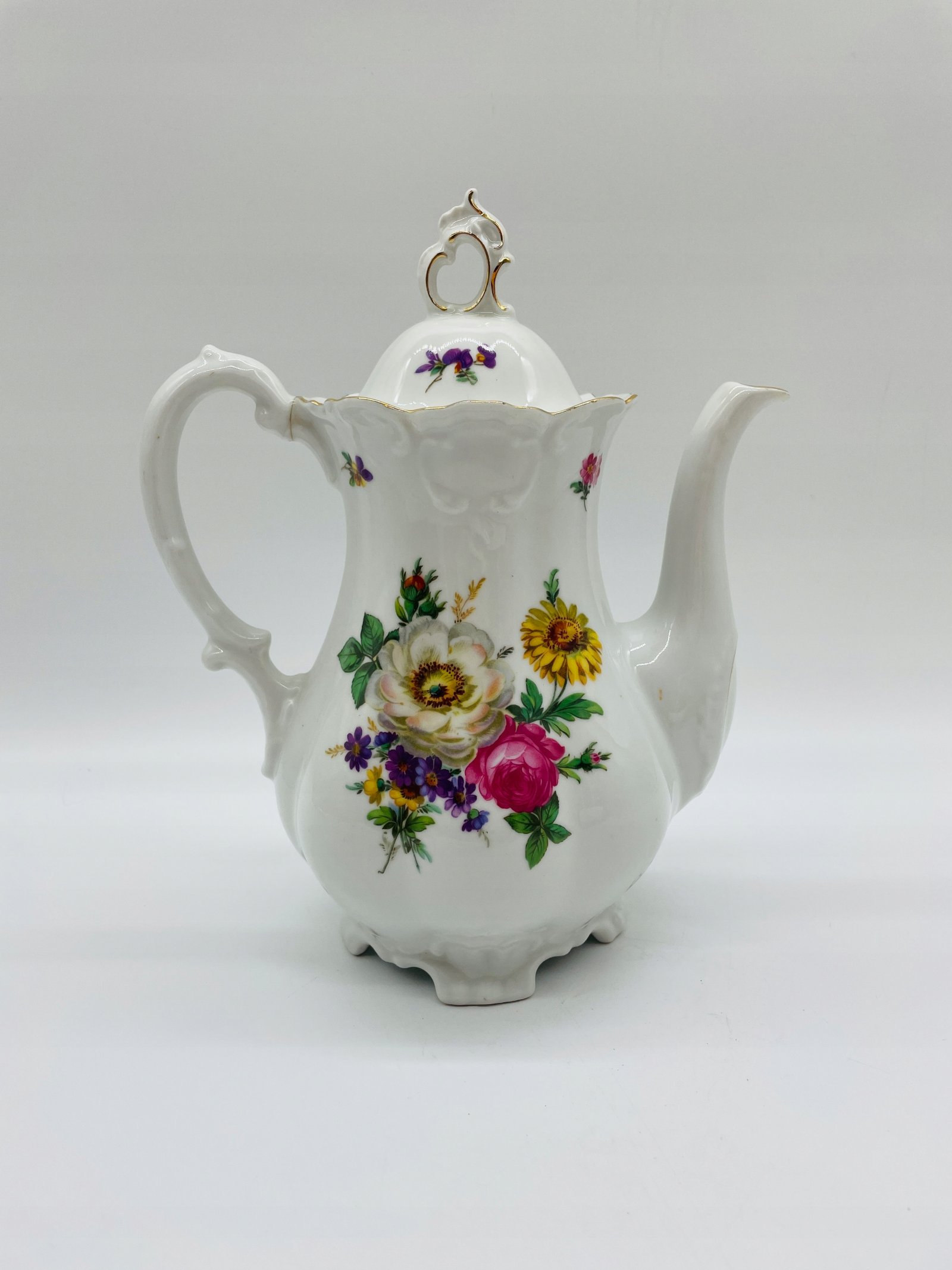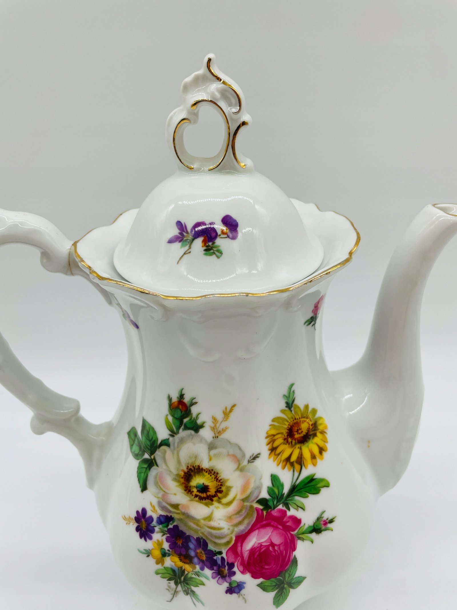 Czajnik porcelanowy Niemcy Mitterteich Bavaria kwiaty złocenie 28×22×13 cm