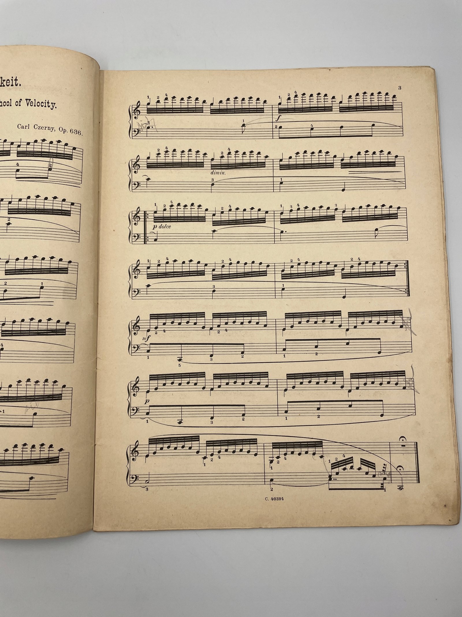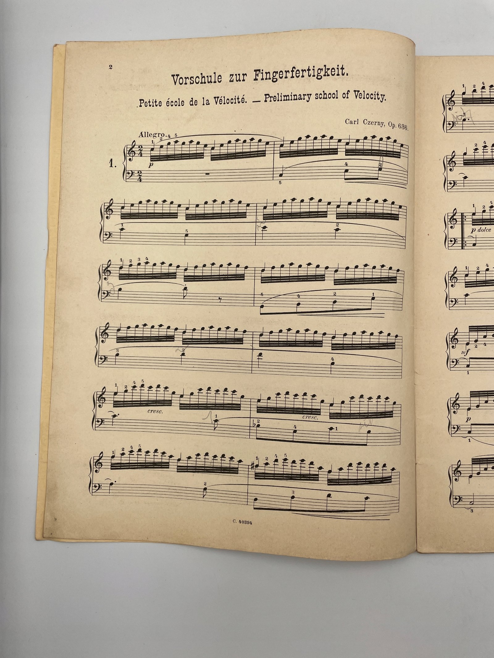 Oferowane nuty to oryginalne wydanie „Petite École de la Vélocité” (Mała szkoła biegłości) autorstwa Carla Czernego, op. 636, wydane przez renomowane wydawnictwo muzyczne Edition Cranz, obecne w Lipsku, Brukseli i Londynie. Pozycja ta zawiera ćwiczenia techniczne dla pianistów, idealne dla rozwijania szybkości i precyzji gry.