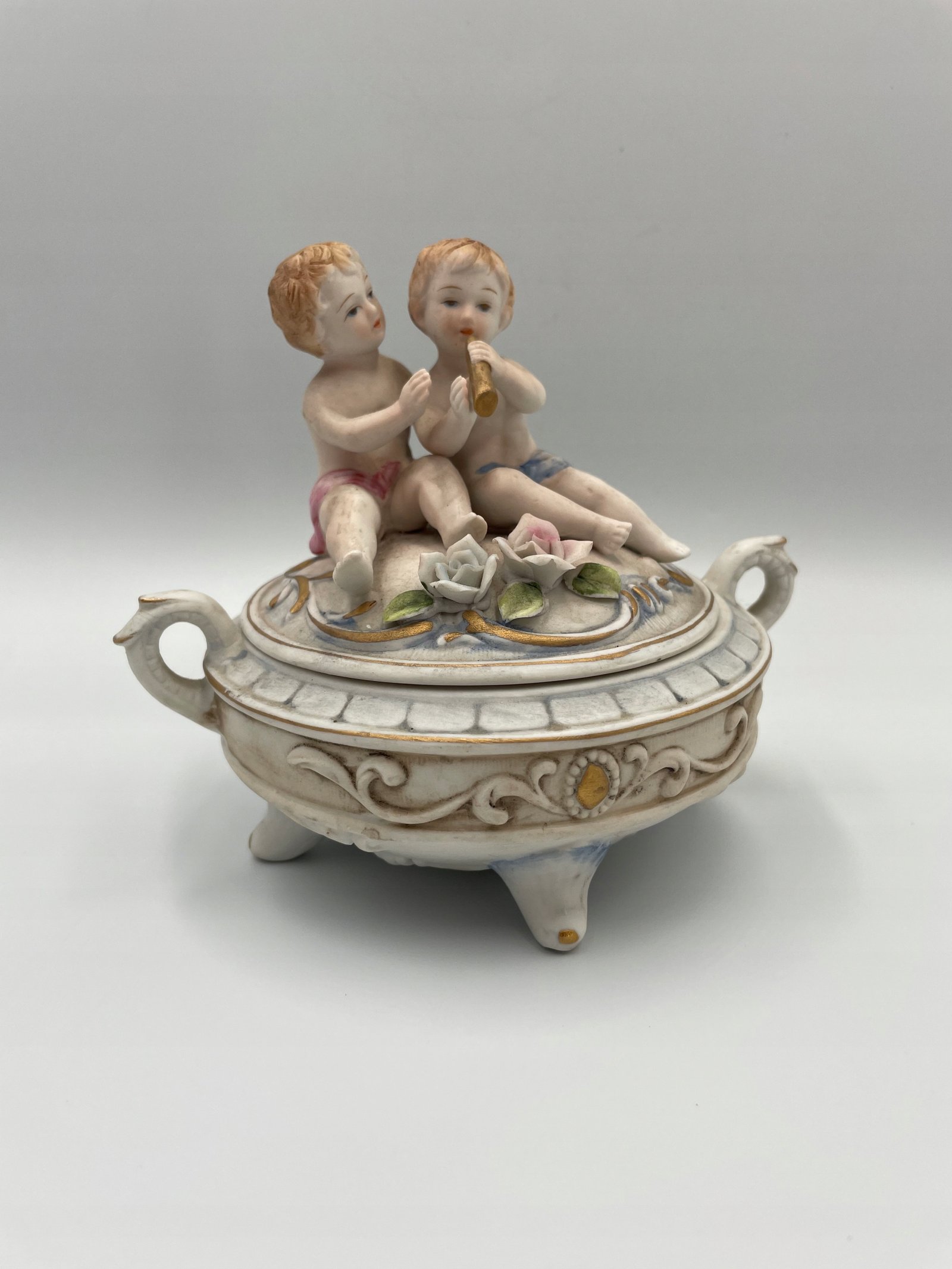 Wintage przedmioty mogą mieć drobne rysy, odpryski, niektóre zabrudzenia, ślady użytkowania i zmiany tekstury spowodowane starzeniem się. Ponieważ stopień zużycia może różnić się w zależności od indywidualnego postrzegania, prosimy o zrozumienie i akceptację cech starych przedmiotów. Będziemy zadowoleni, jeśli będziesz mógł/mogła cieszyć się niepowtarzalnym urokiem starych, dobrych przedmiotów.