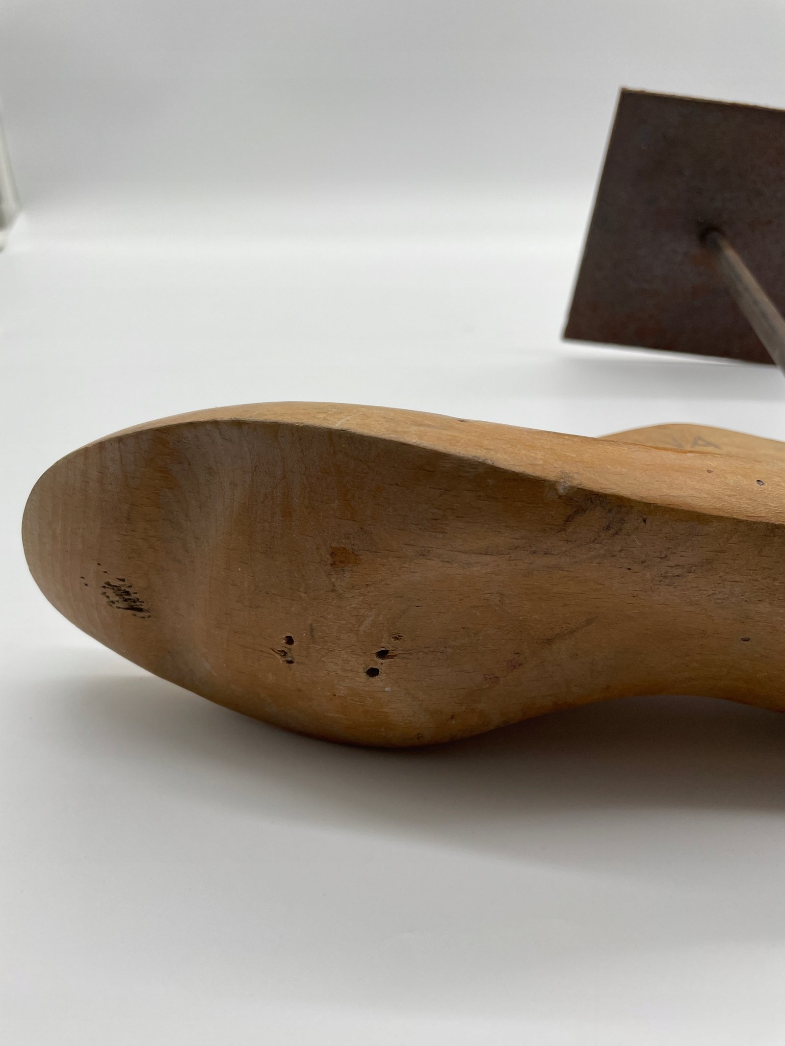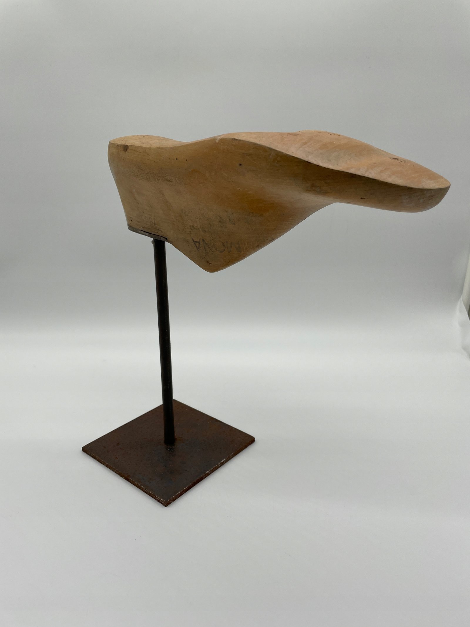 Drewniane kopyto szewskie na metalowej podstawie vintage