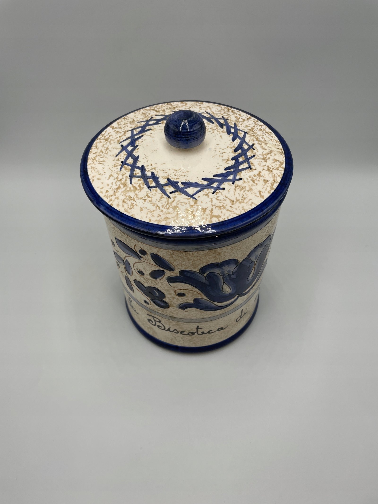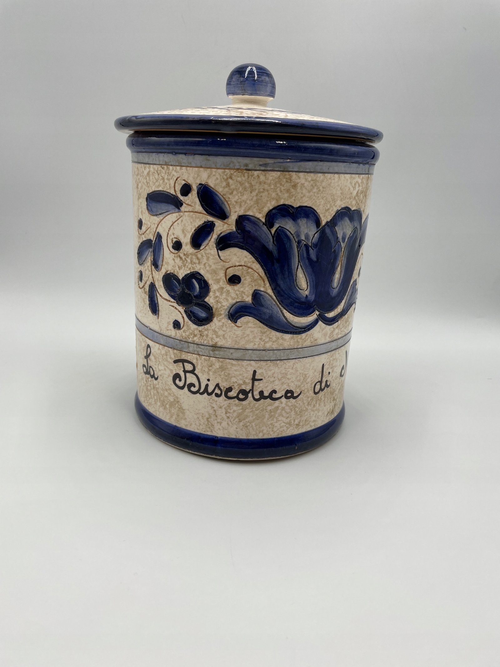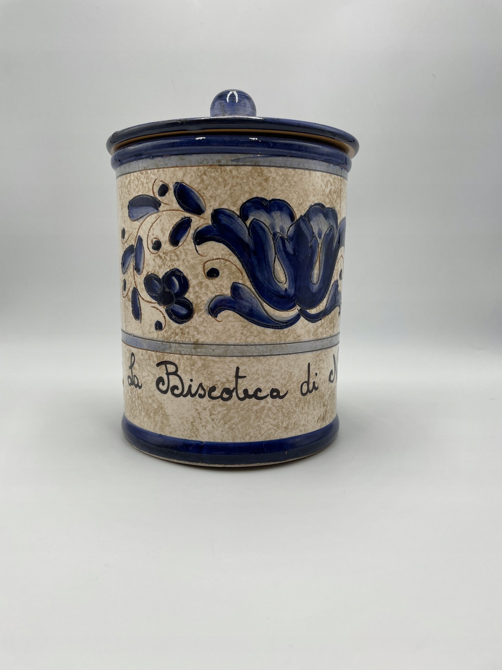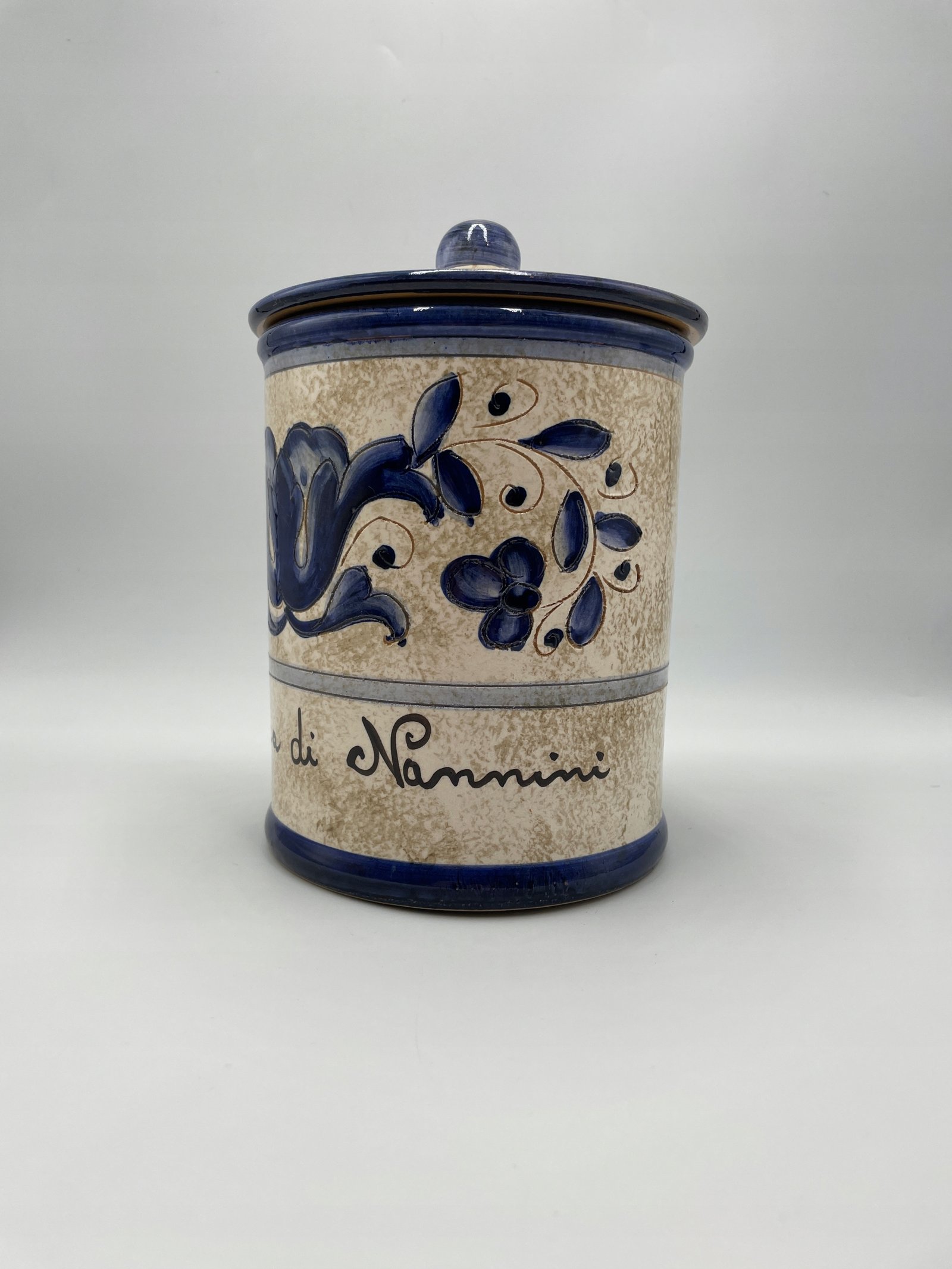 Duża puszka na herbatniki z pokrywką „Nannini” Stara włoska majolika