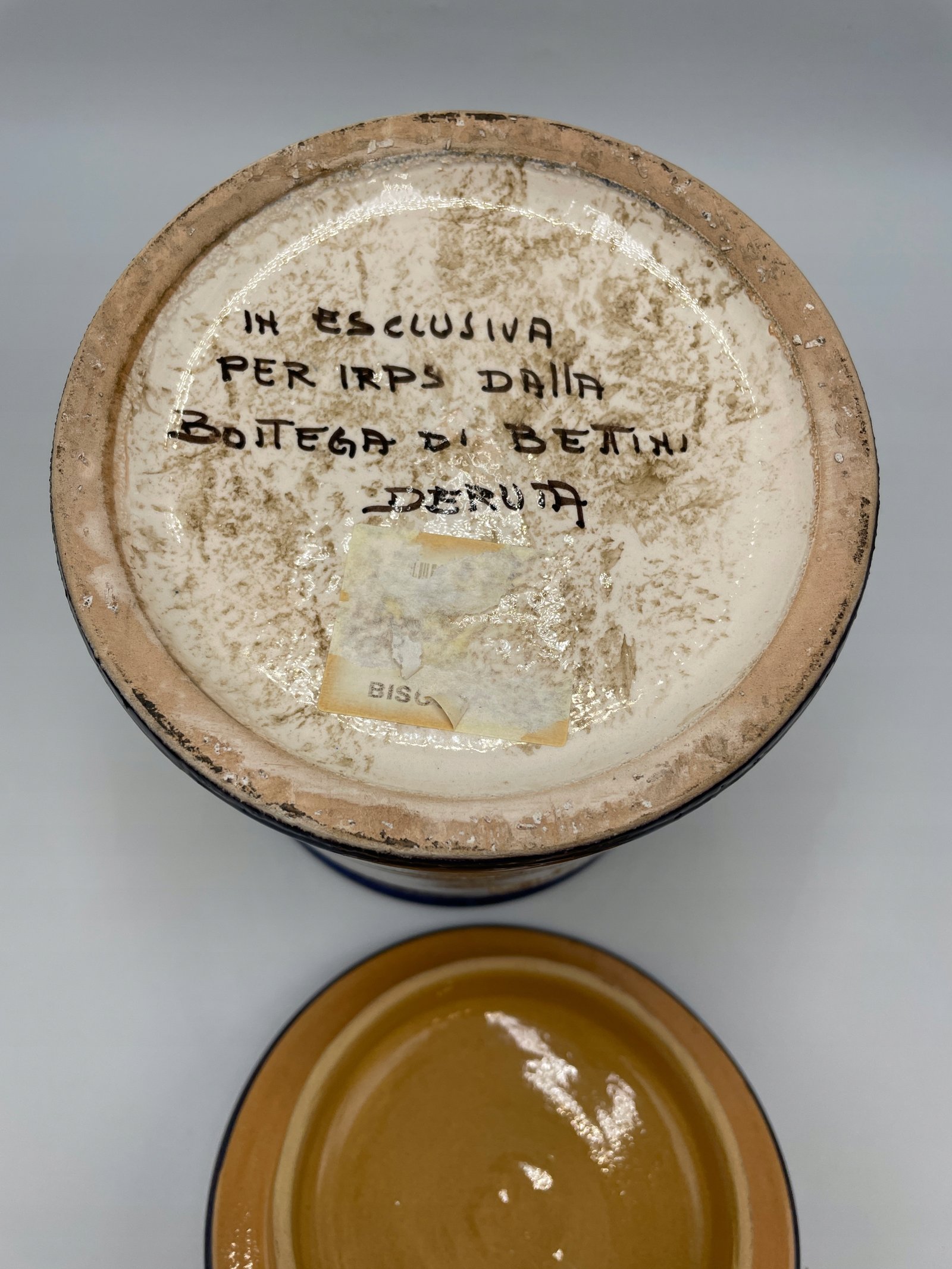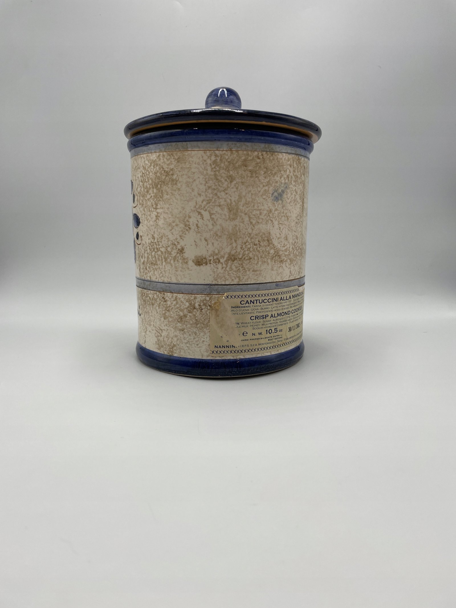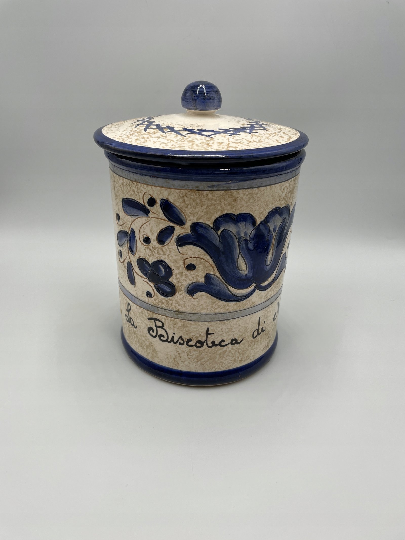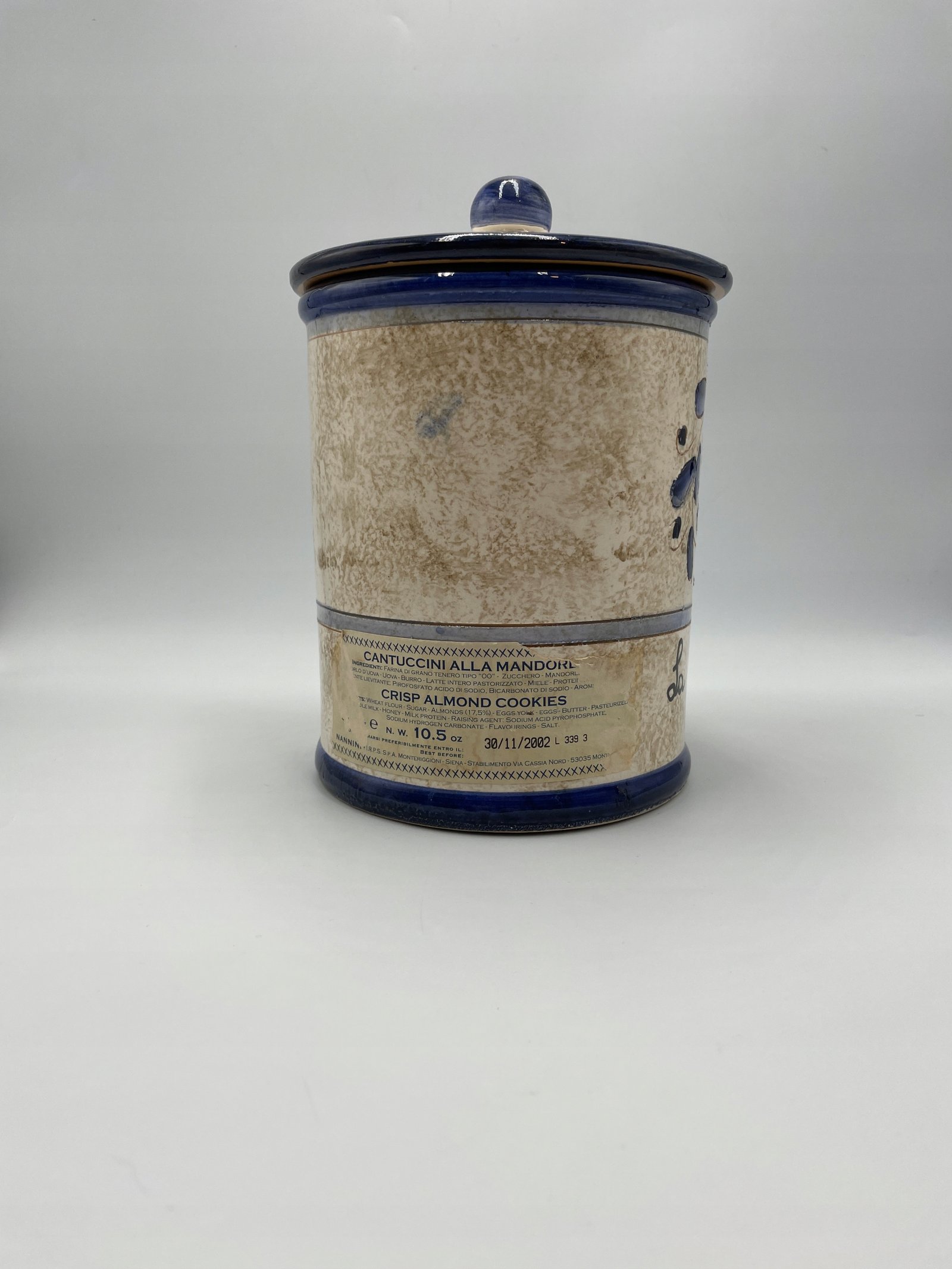 Duża puszka na herbatniki z pokrywką „Nannini” Stara włoska majolika