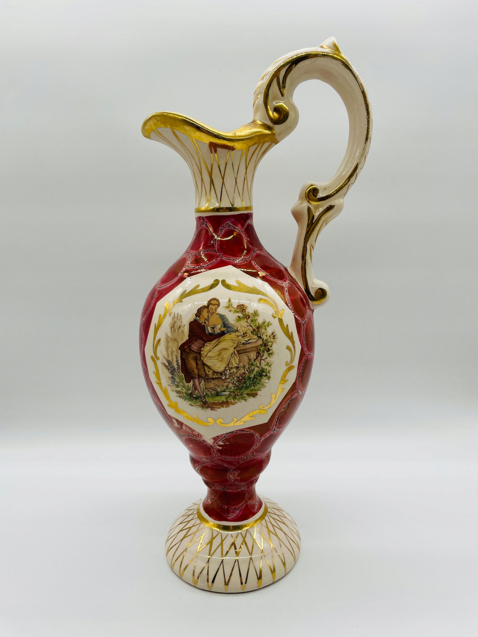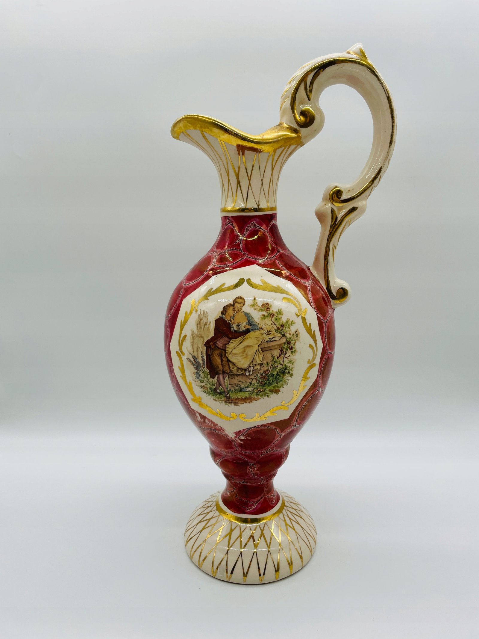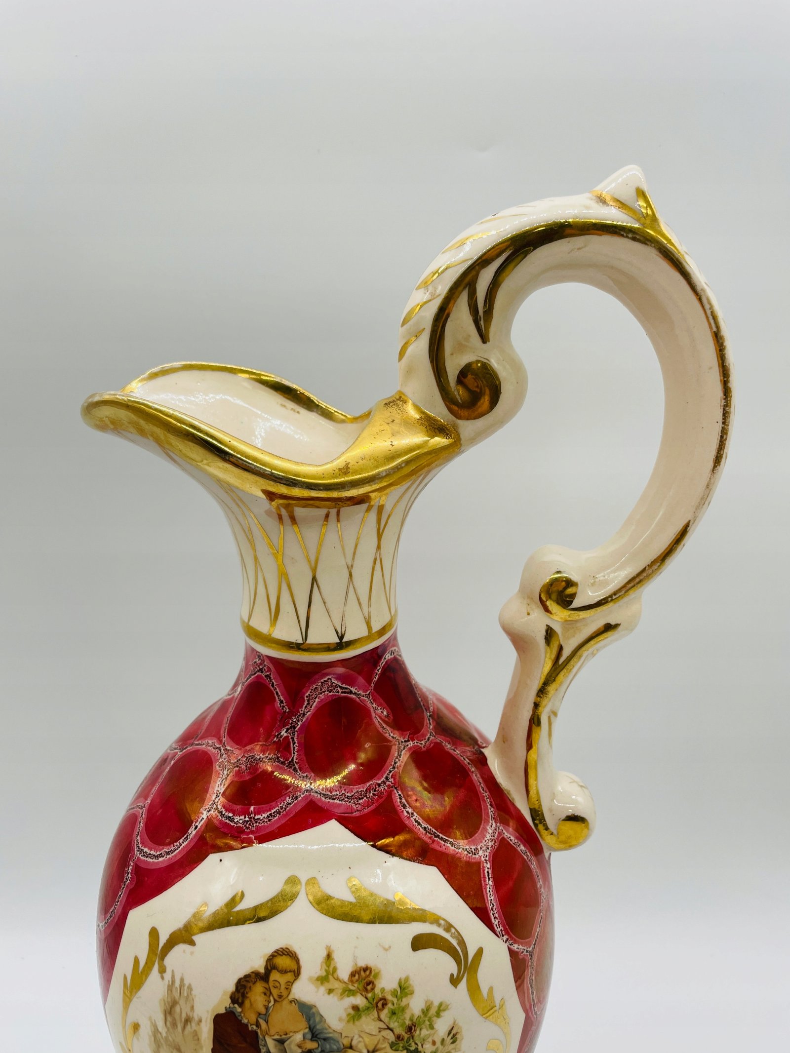 Dzban z motywem pastoralnym Austria lata 1950 porcelana złocenie