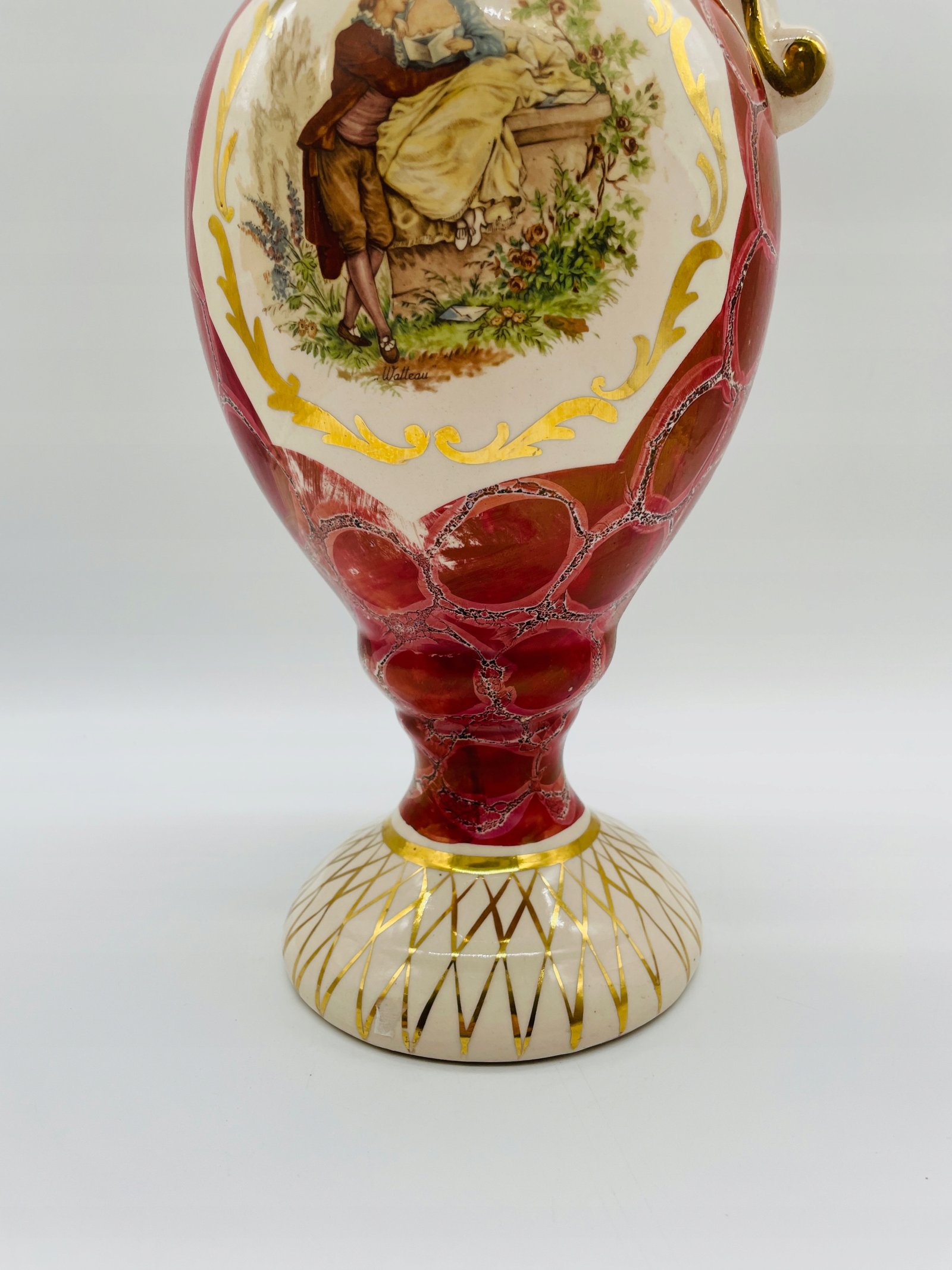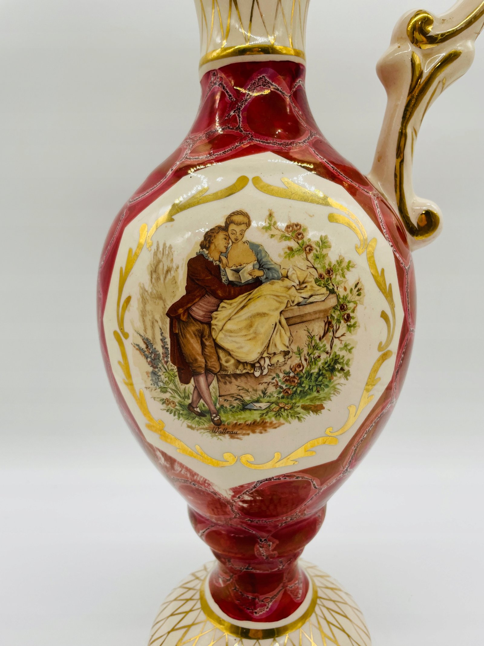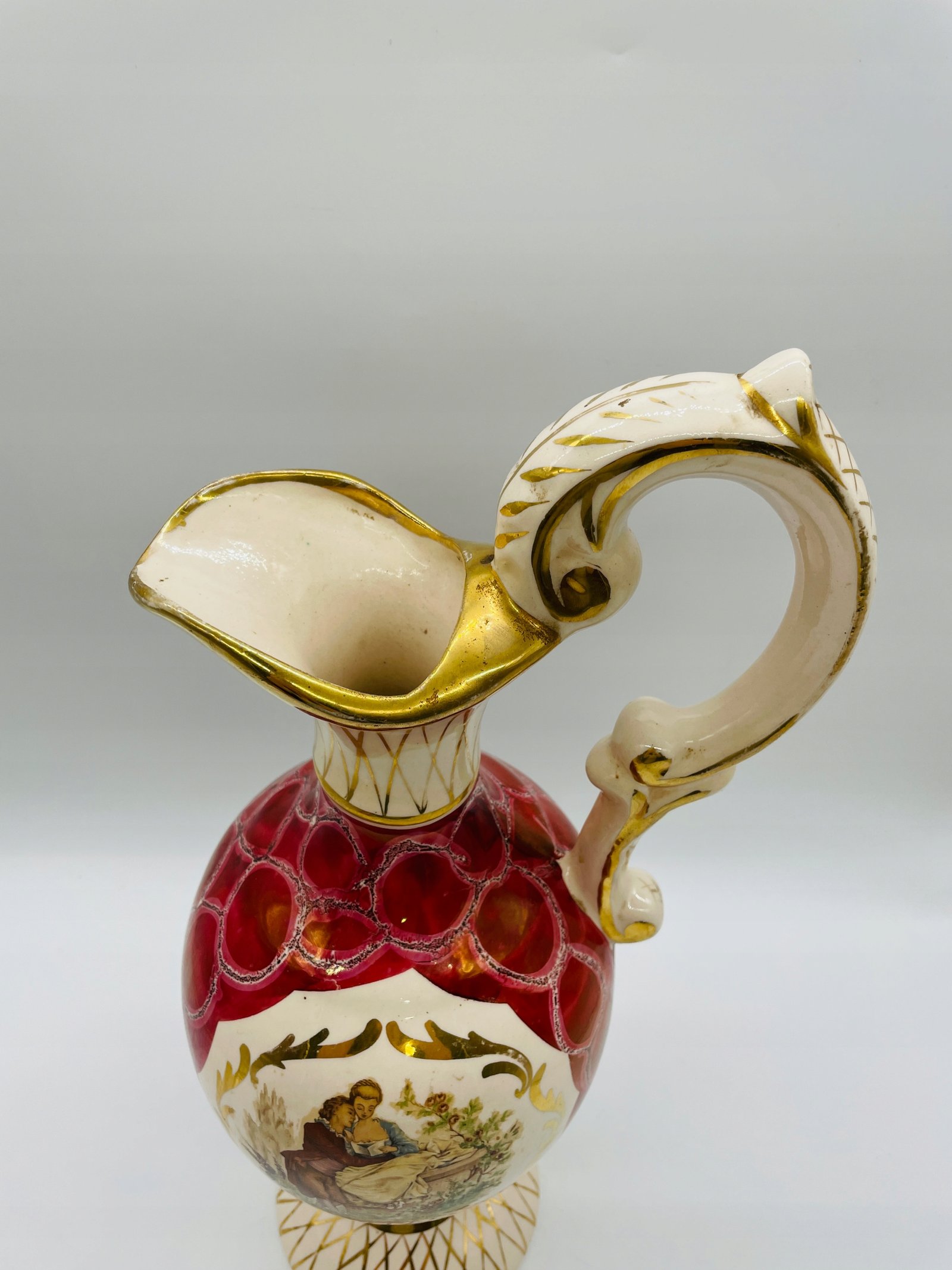 Dzban z motywem pastoralnym Austria lata 1950 porcelana złocenie