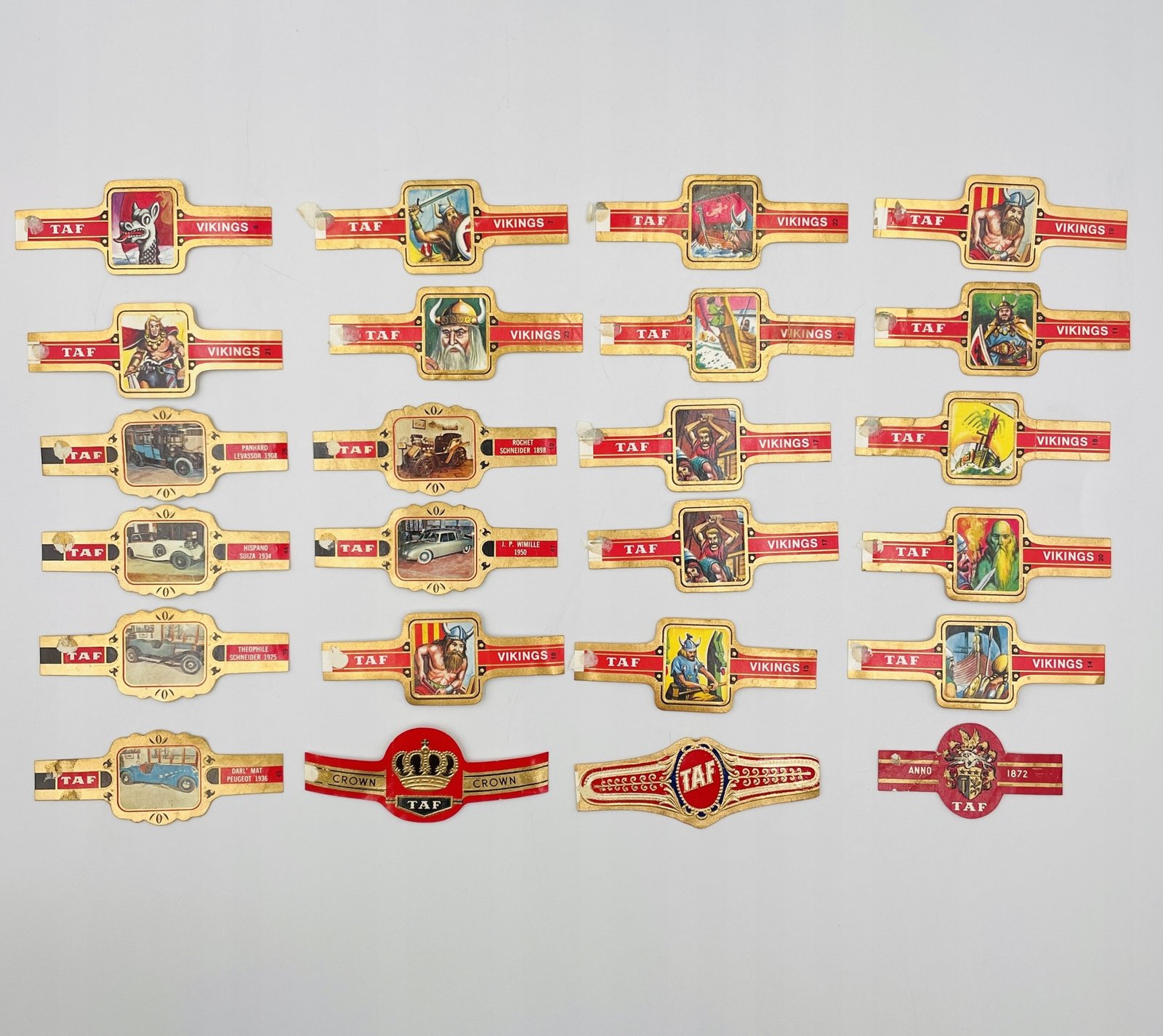 Rosette cygarowe TAF Wikingowie i pojazdy Belgia 1960s 24 szt.