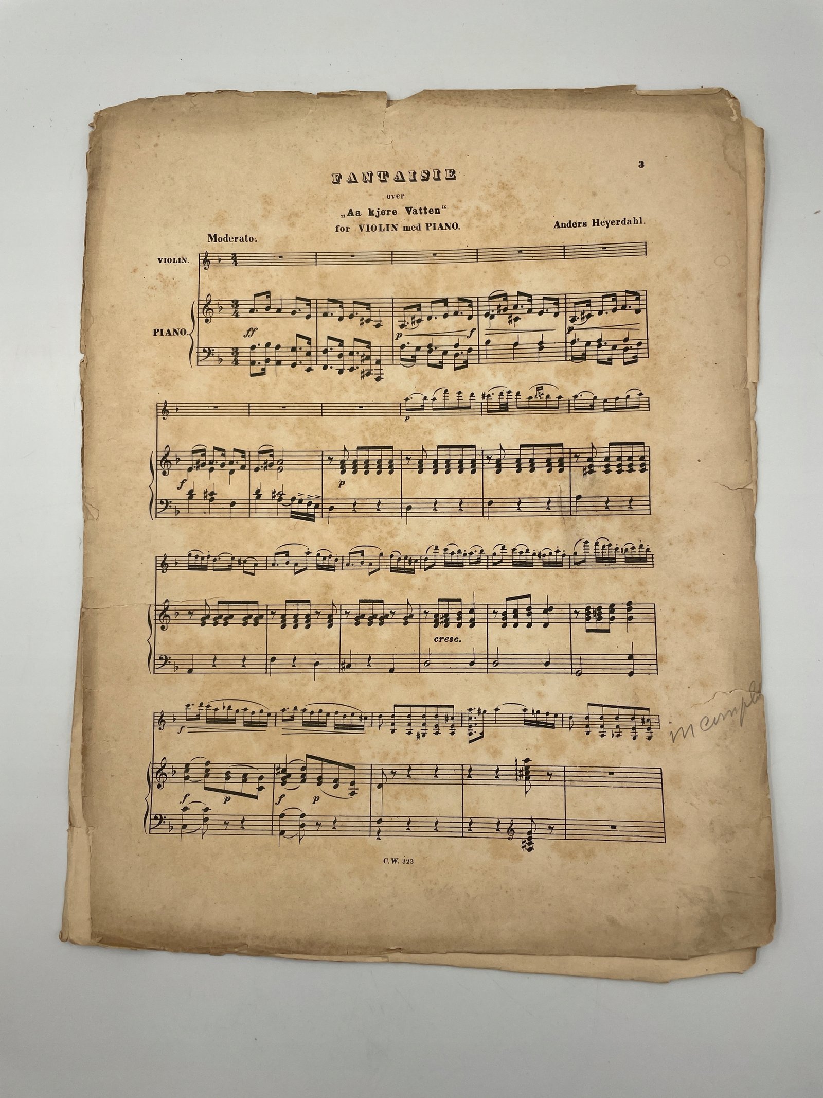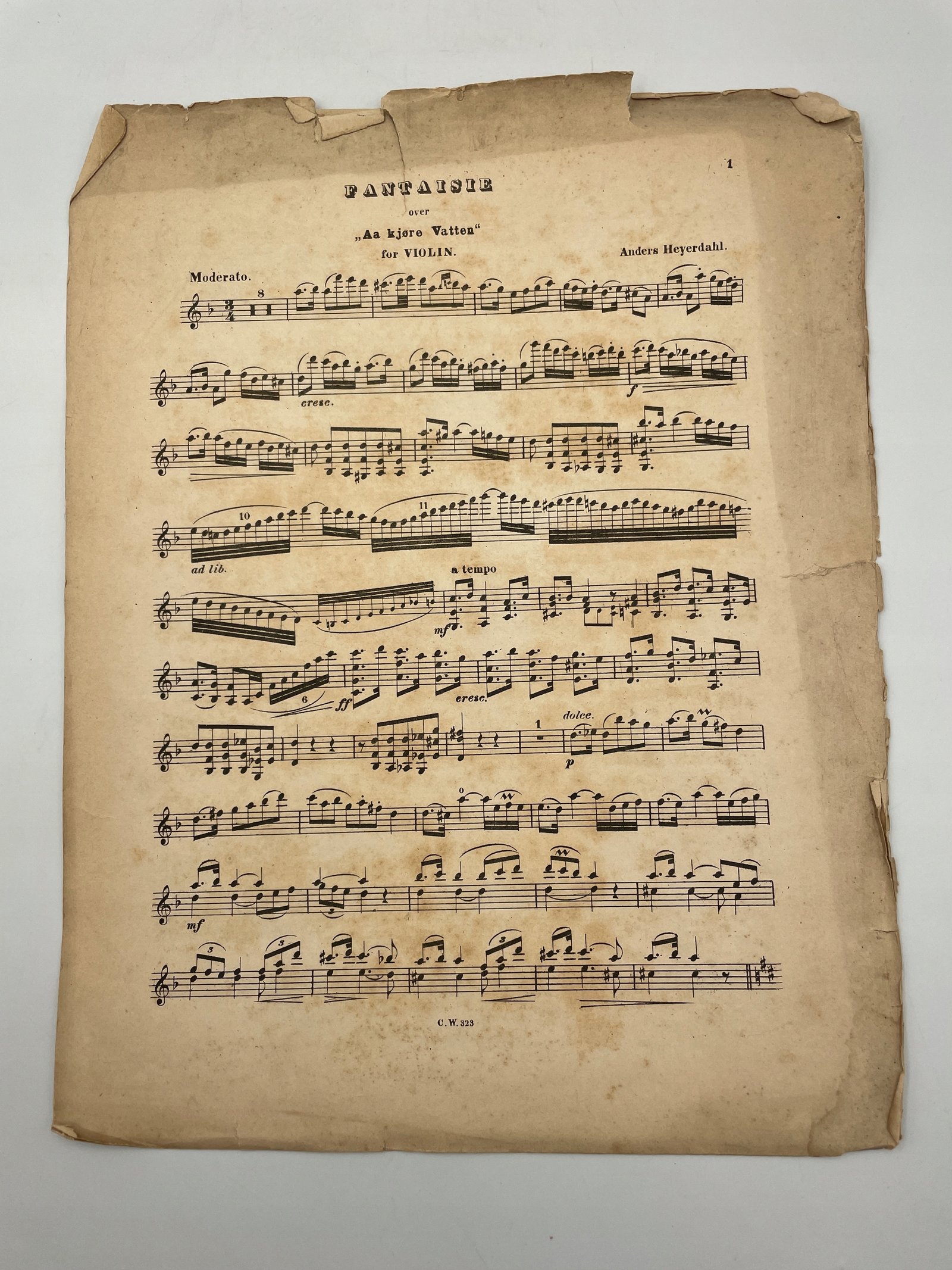 Fantazja na skrzypce i fortepian oparta na norweskim temacie ludowym „Aa kjære Vatten”, skomponowana przez Andersa Heyerdahla. Utwór w romantycznej formie wirtuozowskiej, zawiera partie solowe dla skrzypiec oraz akompaniament fortepianowy. Wydanie z charakterystycznym norweskim tytułem i starym krojem pisma pozwala datować nuty na koniec XIX – początek XX wieku.