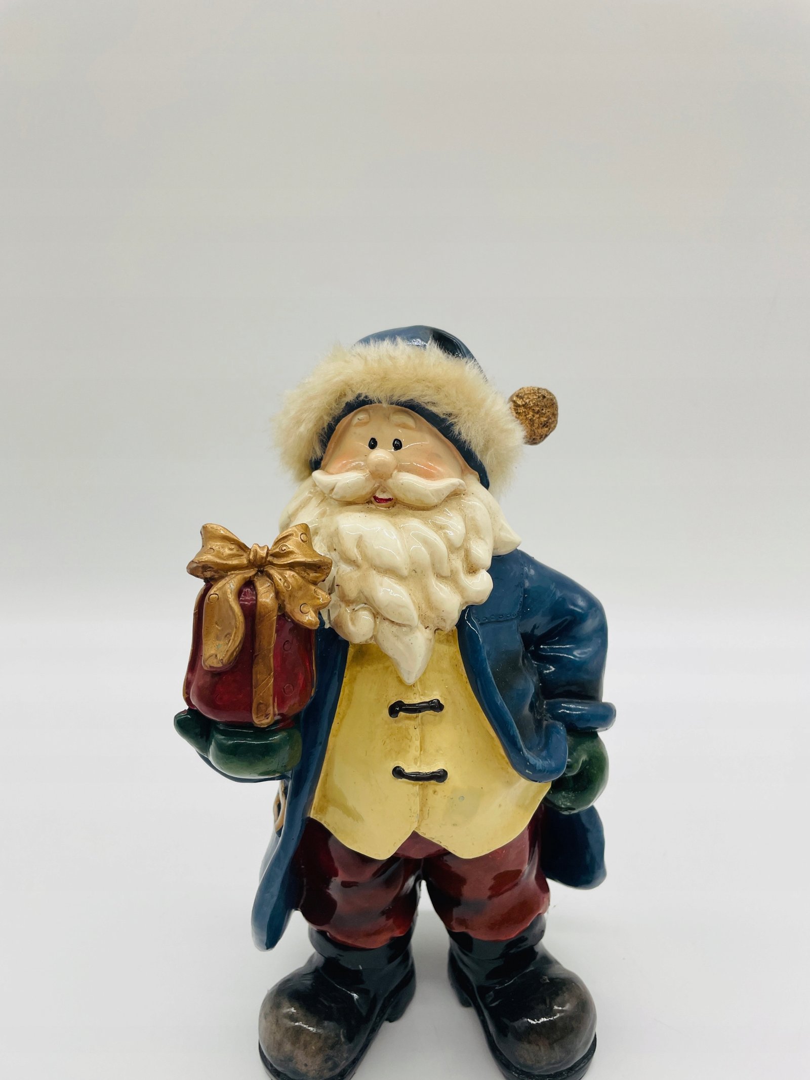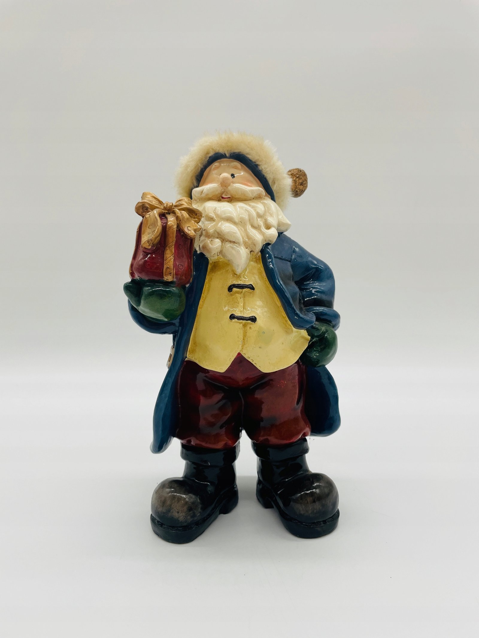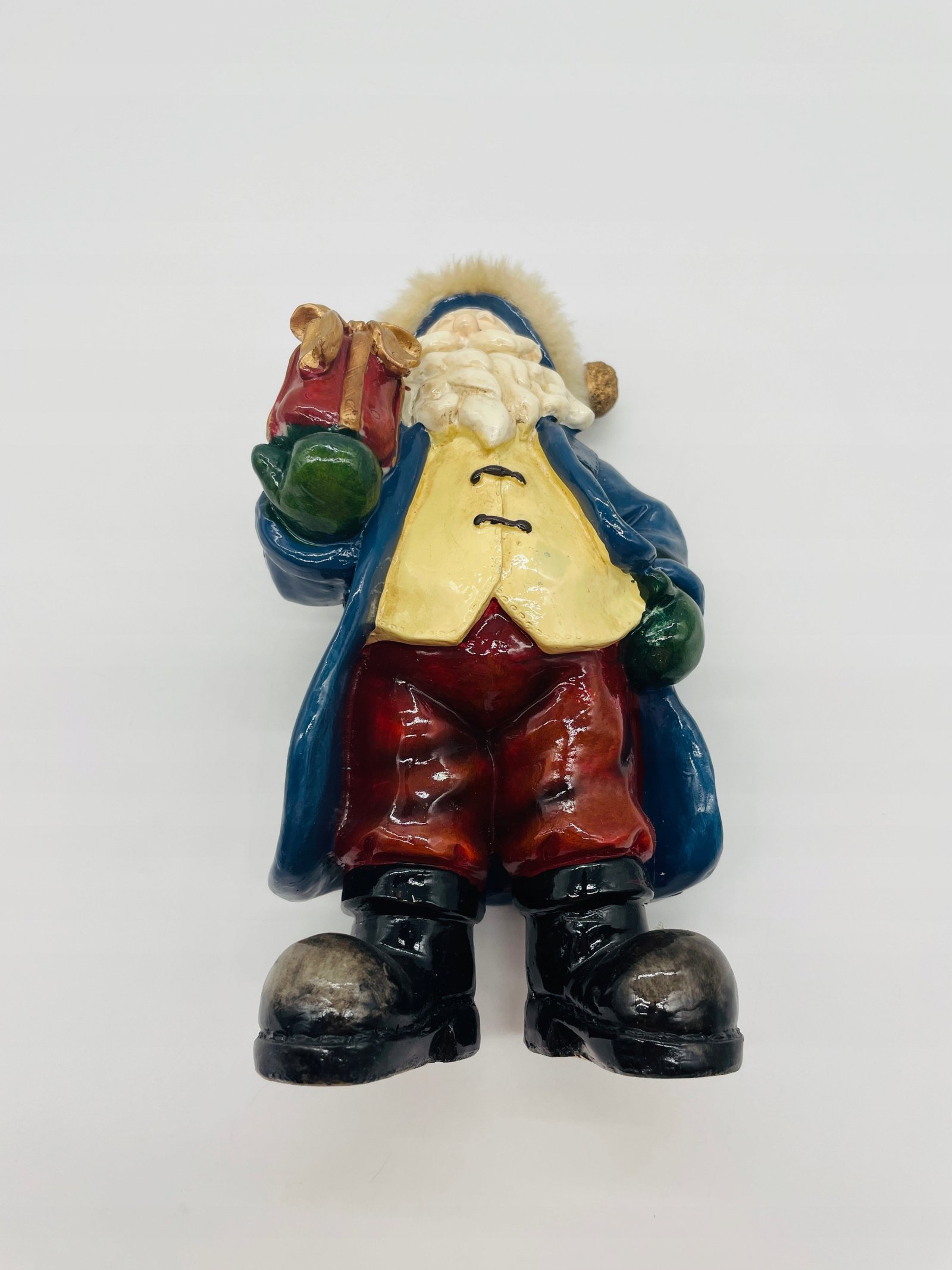 Figurka ceramiczna Mikołaj z prezentem w ręku