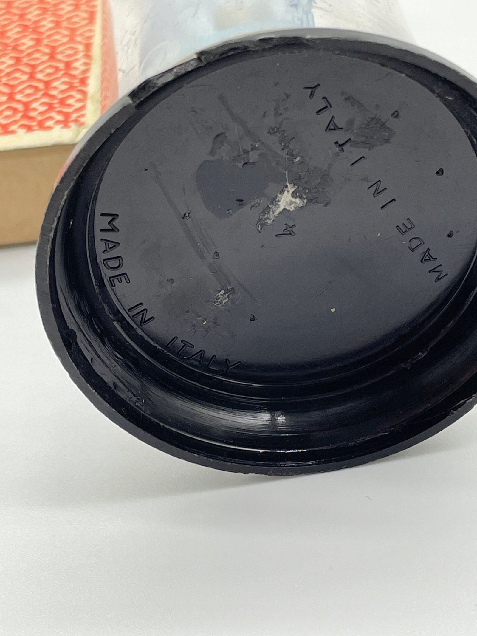 Vintage przedmioty mogą mieć drobne rysy, odpryski, niektóre zabrudzenia, ślady użytkowania i zmiany tekstury spowodowane starzeniem się. Ponieważ stopień zużycia może różnić się w zależności od indywidualnego postrzegania, prosimy o zrozumienie i akceptację cech starych przedmiotów. Będziemy zadowoleni, jeśli będziesz mógł/mogła cieszyć się niepowtarzalnym urokiem starych, dobrych przedmiotów.