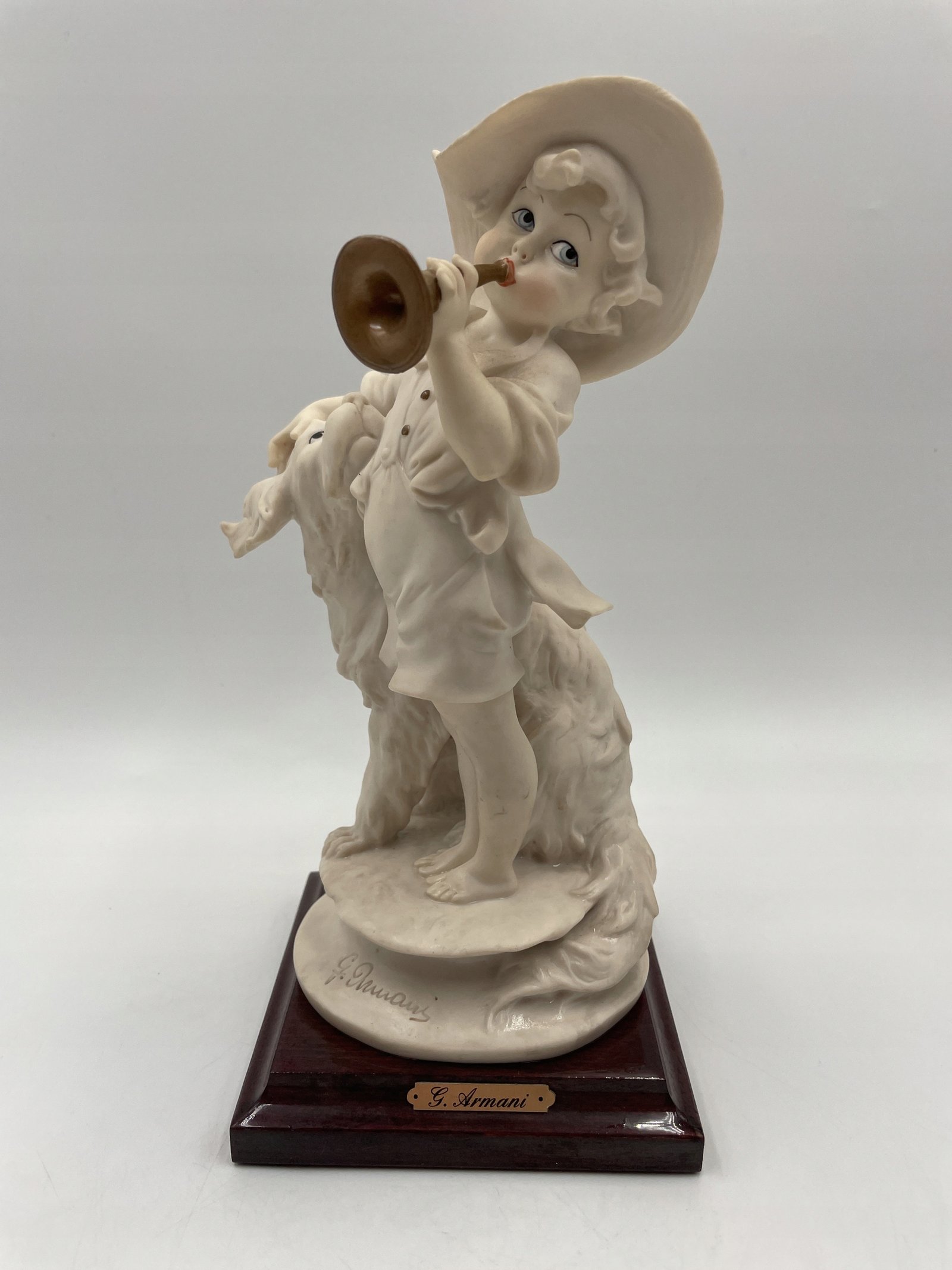 Figurka Giuseppe Armani Capodimonte chłopiec stojący z psem 23cm