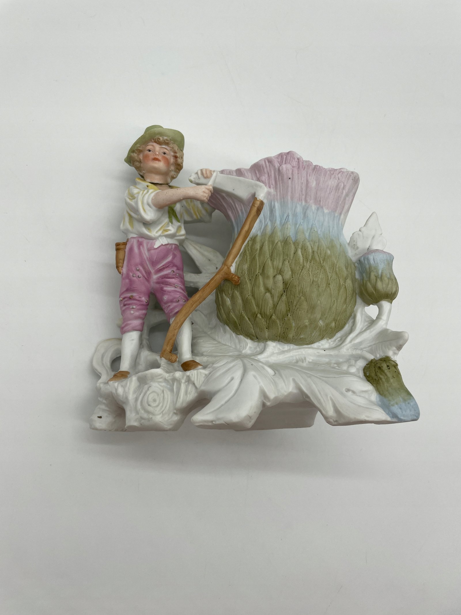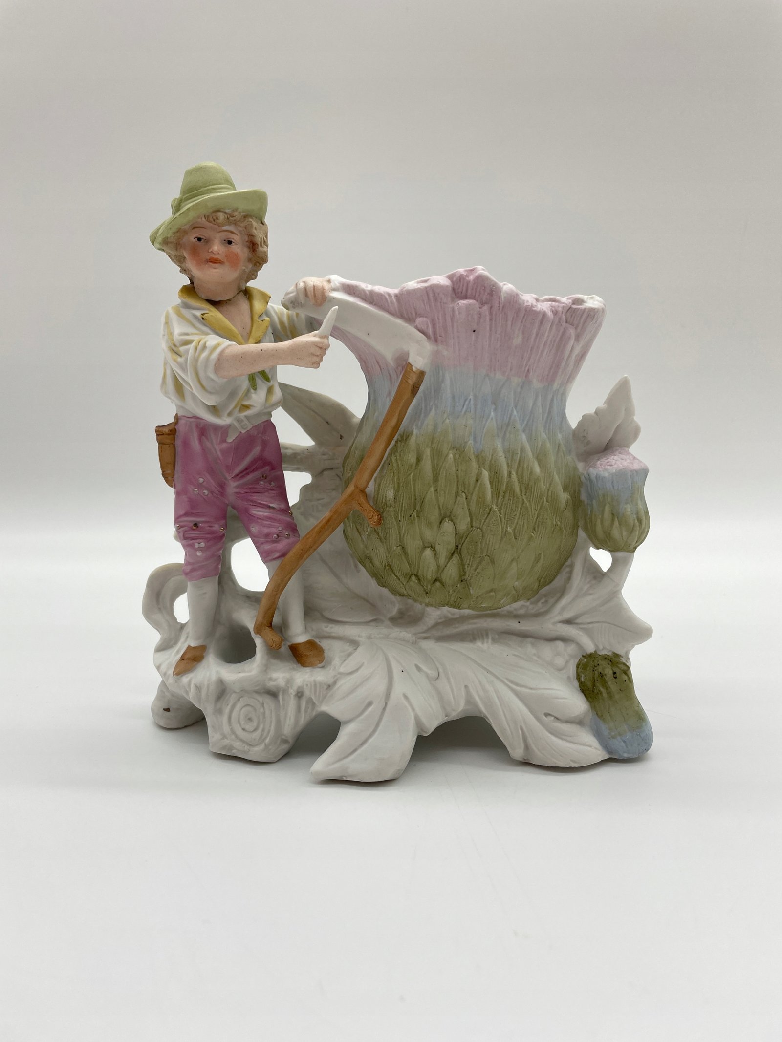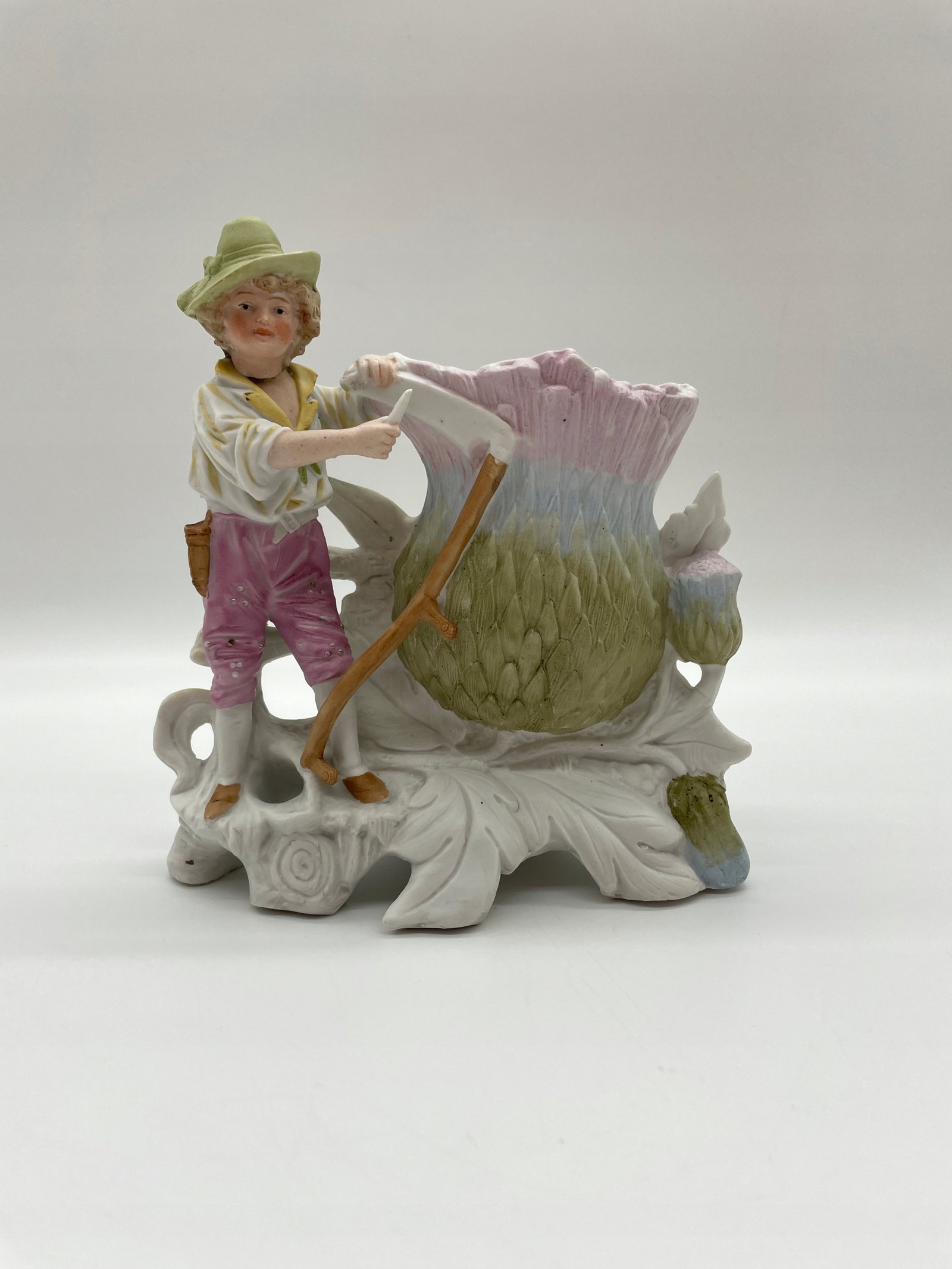 Figurka porcelana chłopiec z kosą przy wazie kwiatowej N8527 DEP