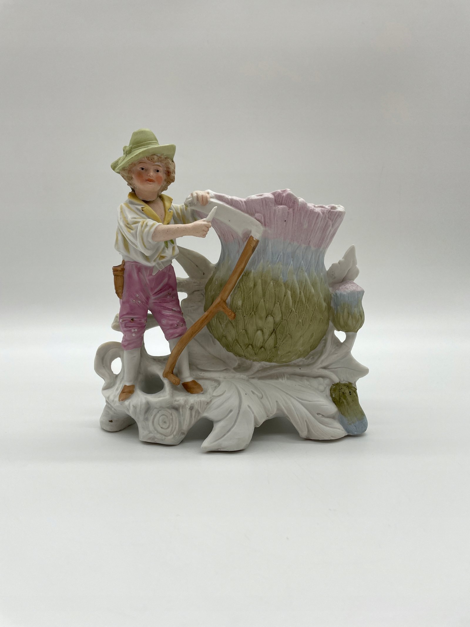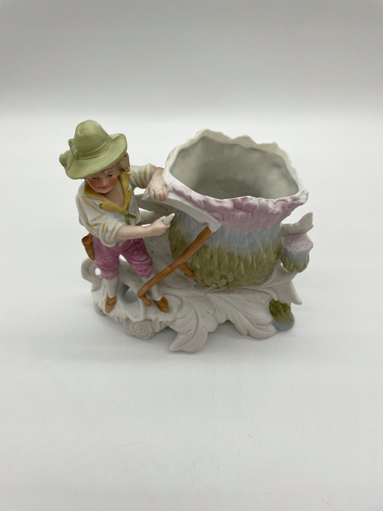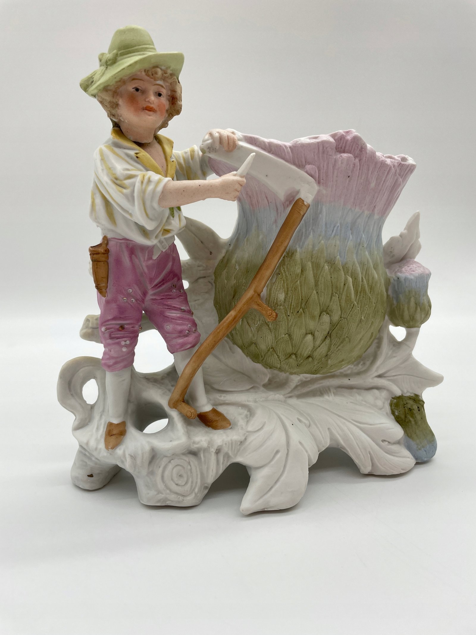 Figurka porcelana chłopiec z kosą przy wazie kwiatowej N8527 DEP