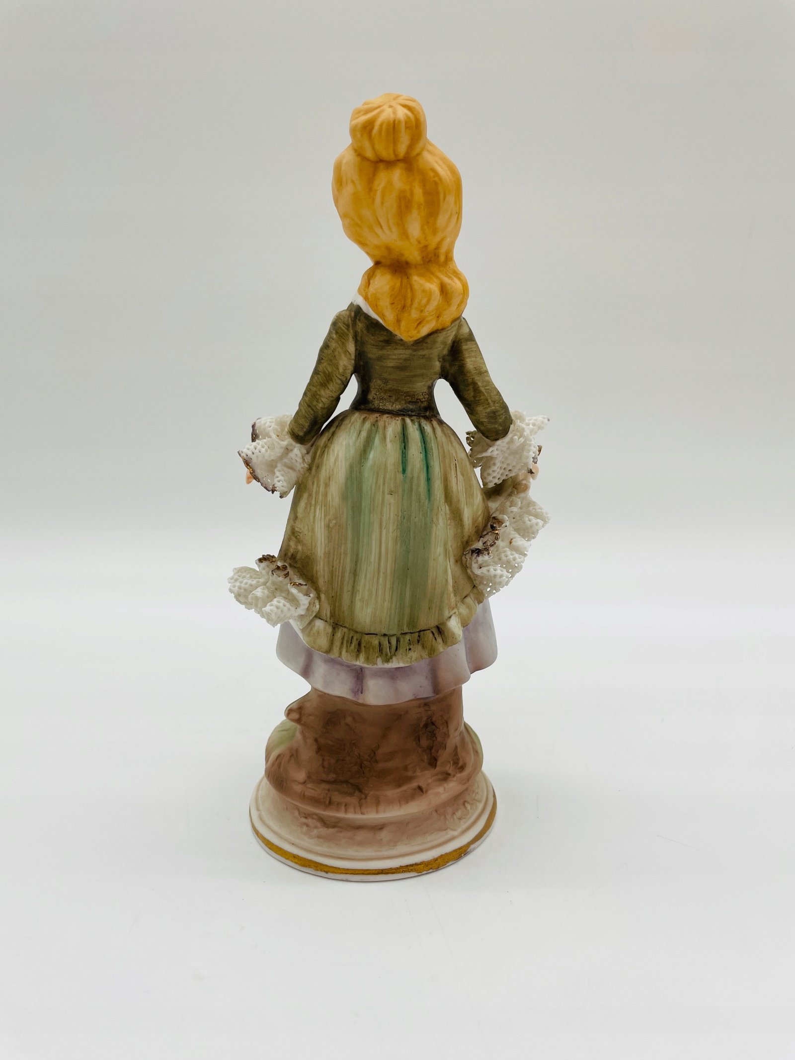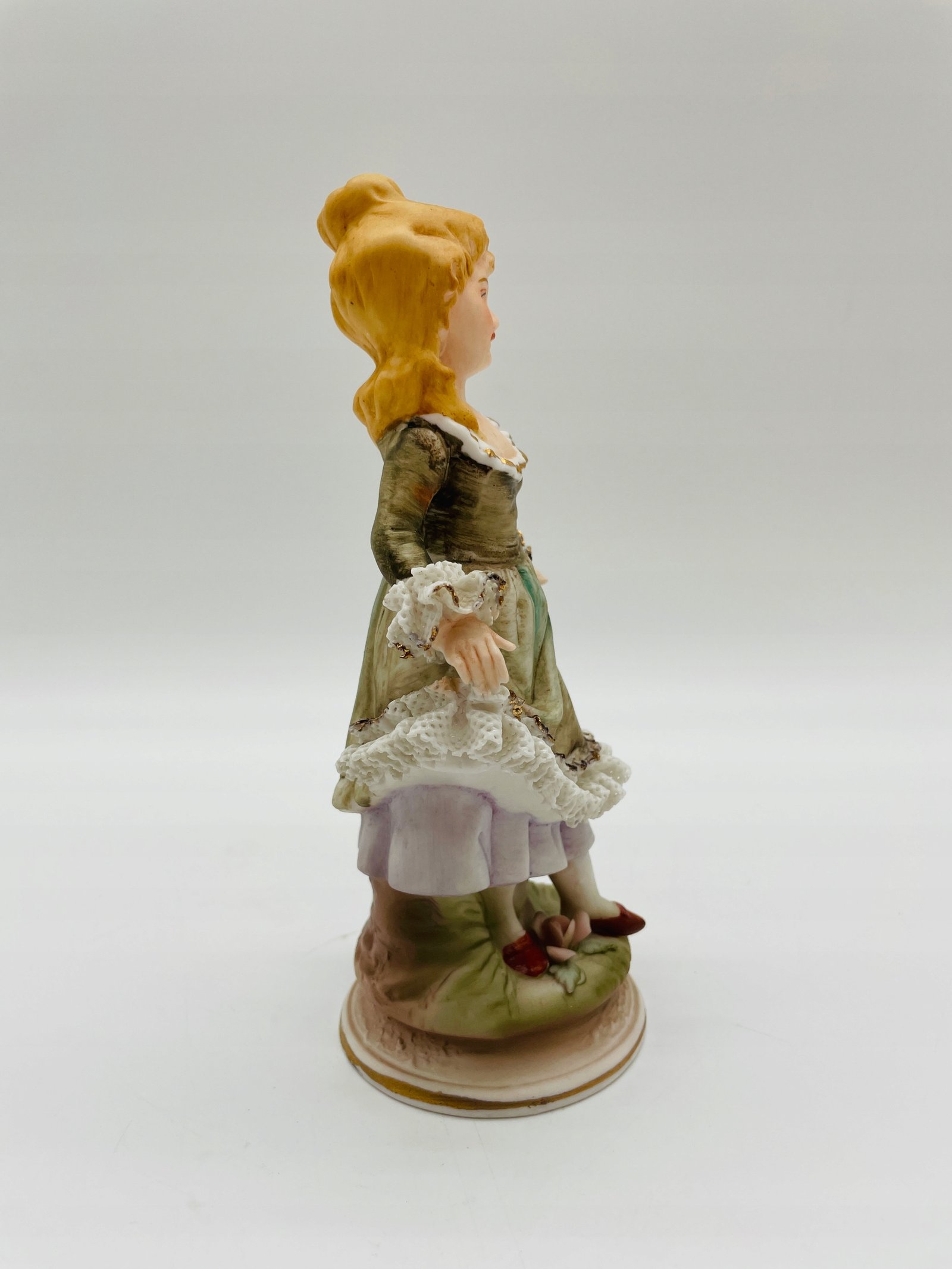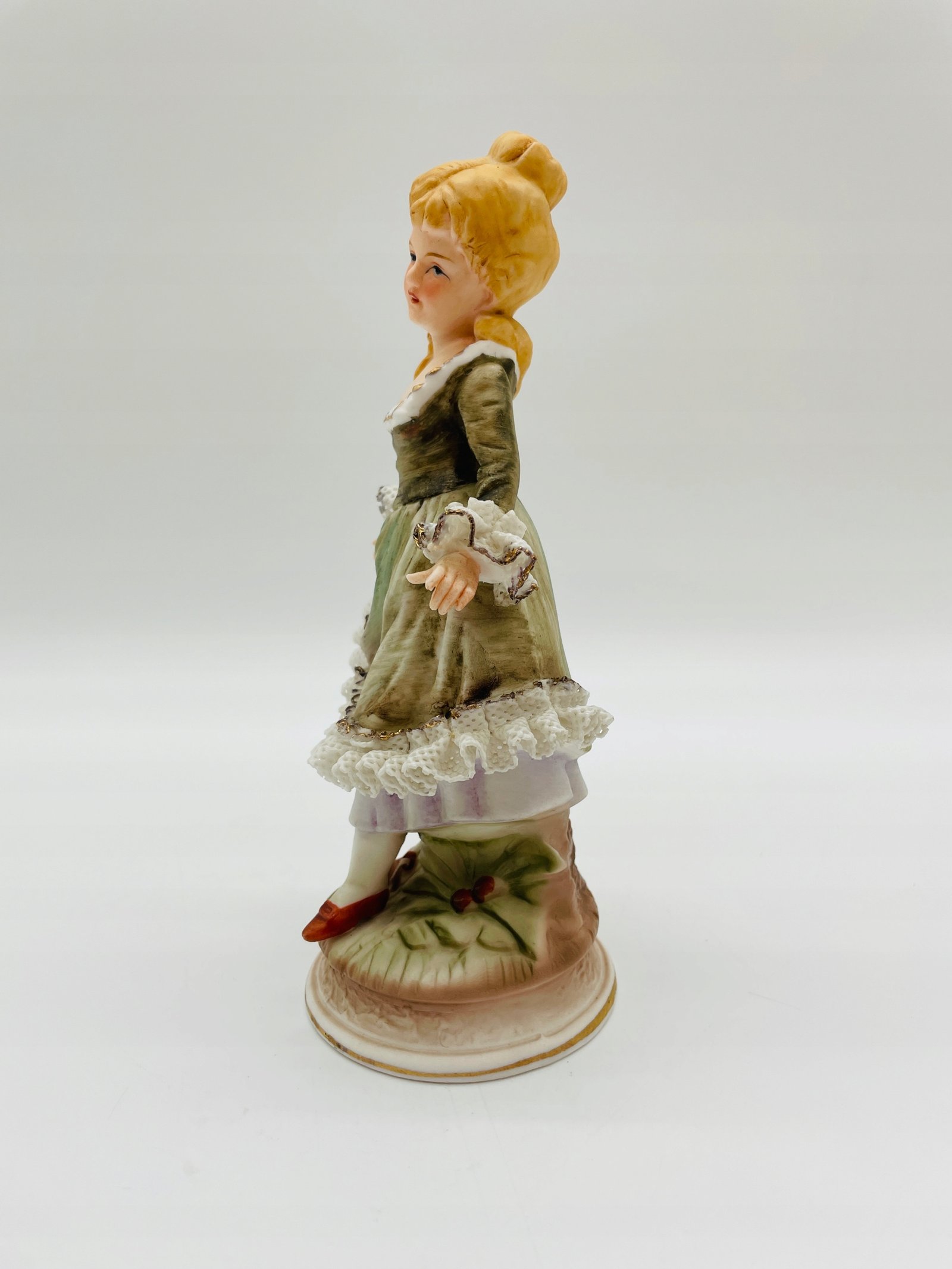 Figurka porcelana dama z koronką w zielonej sukni