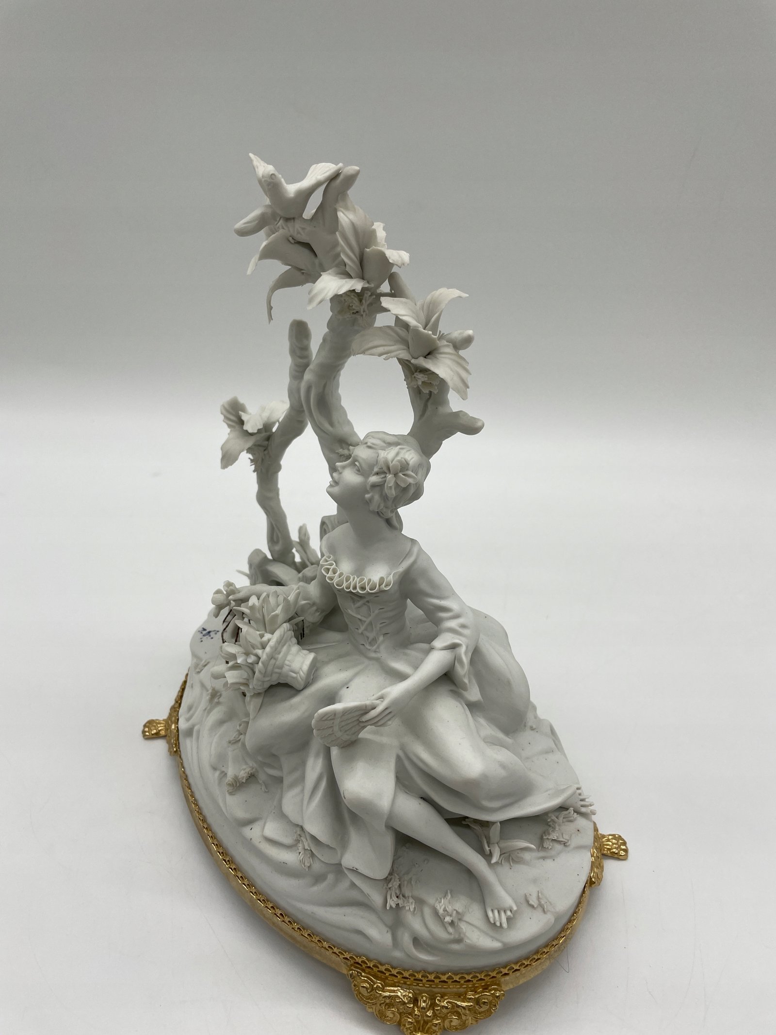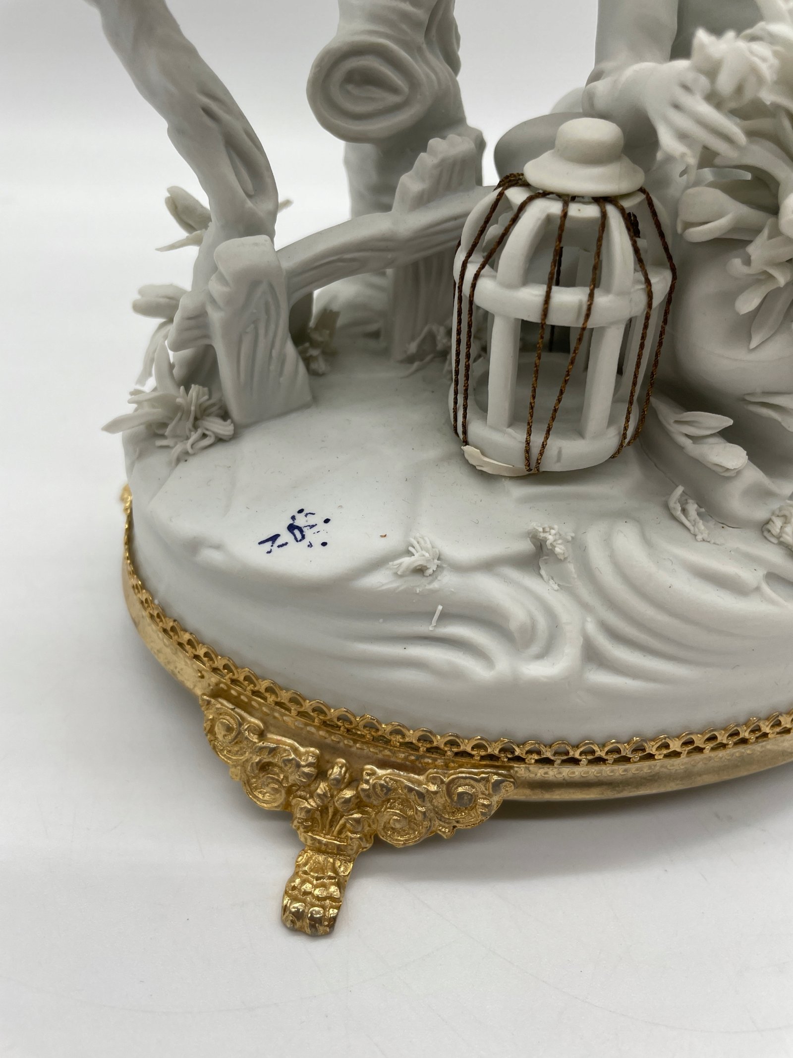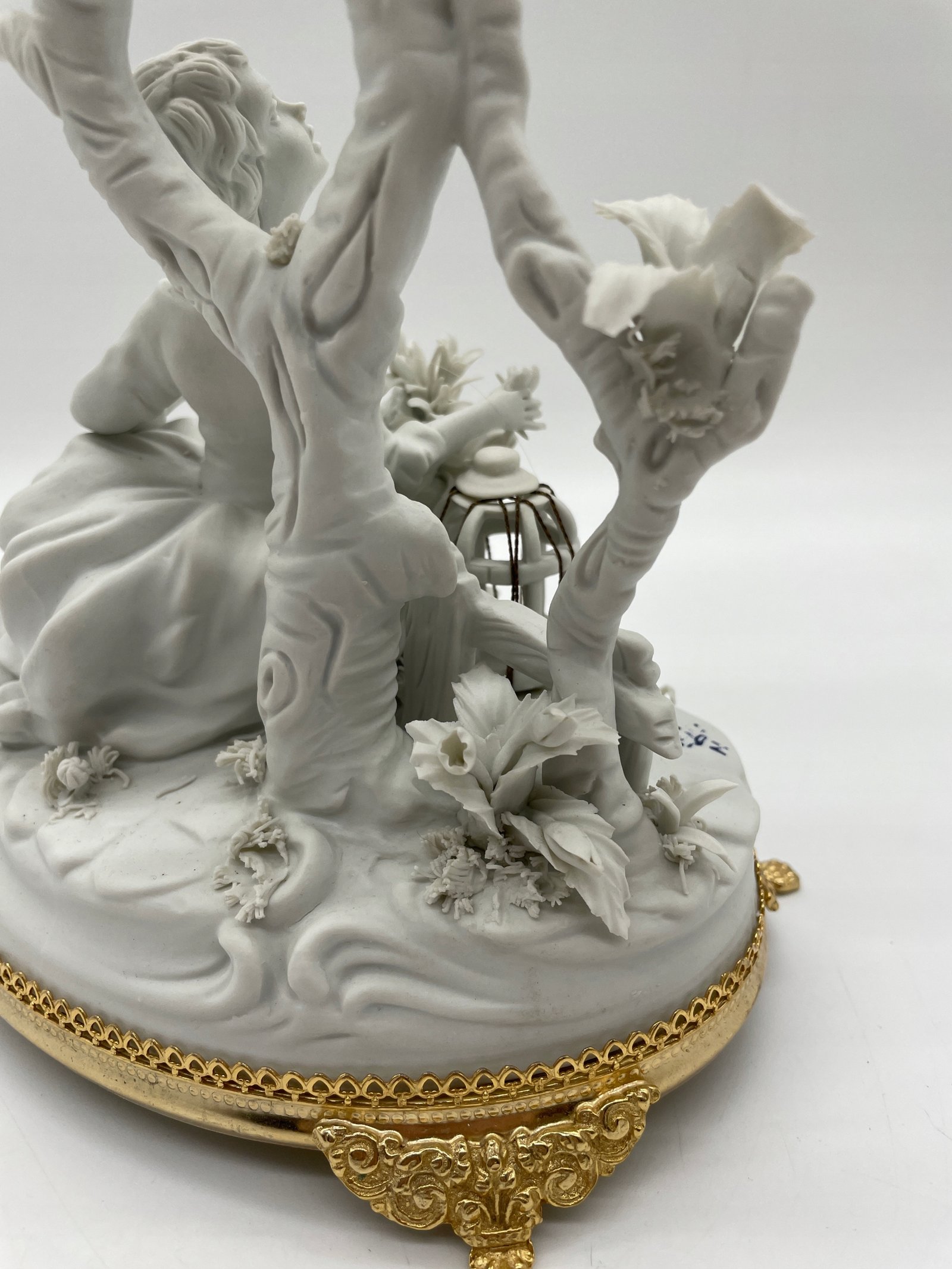 Widoczne uszkodzenia: złamane palce u nóg postaci, ubytki w kwiatach.
