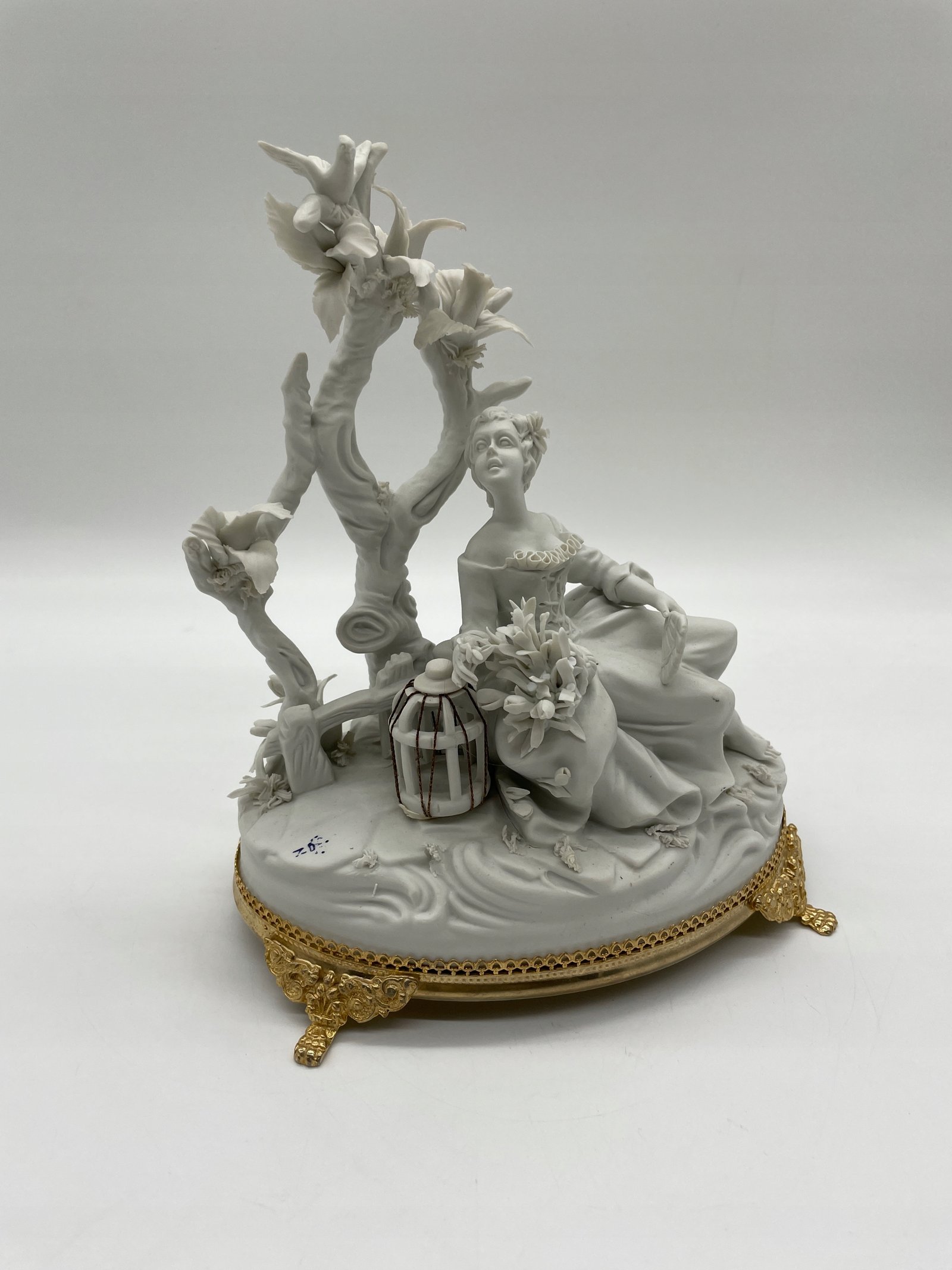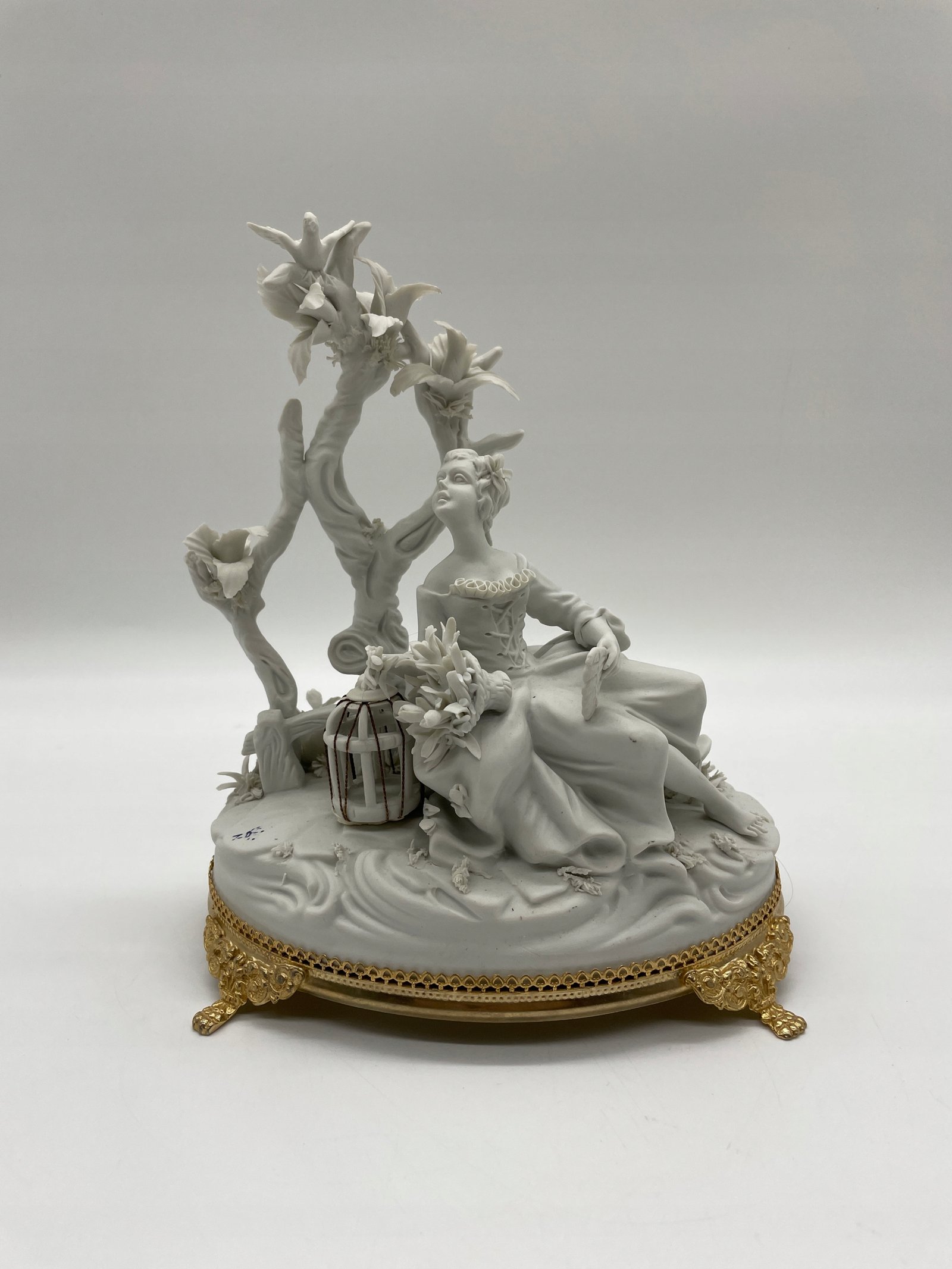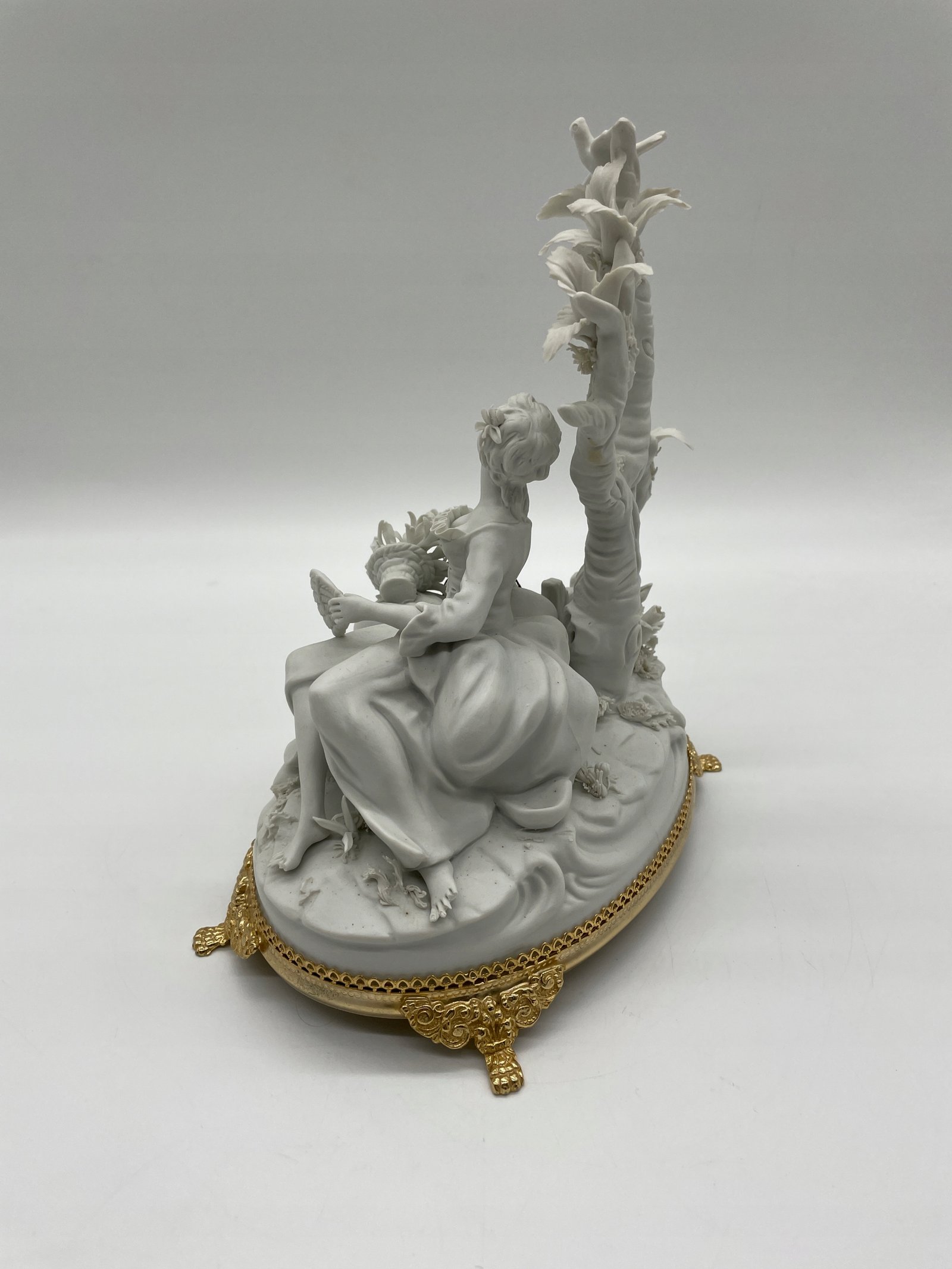 Widoczne uszkodzenia: złamane palce u nóg postaci, ubytki w kwiatach.