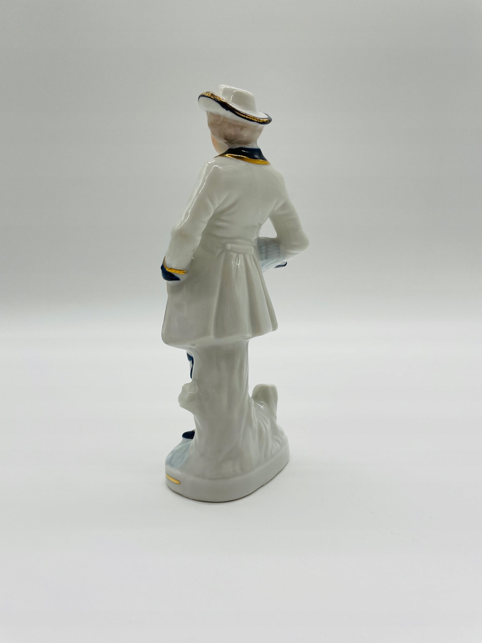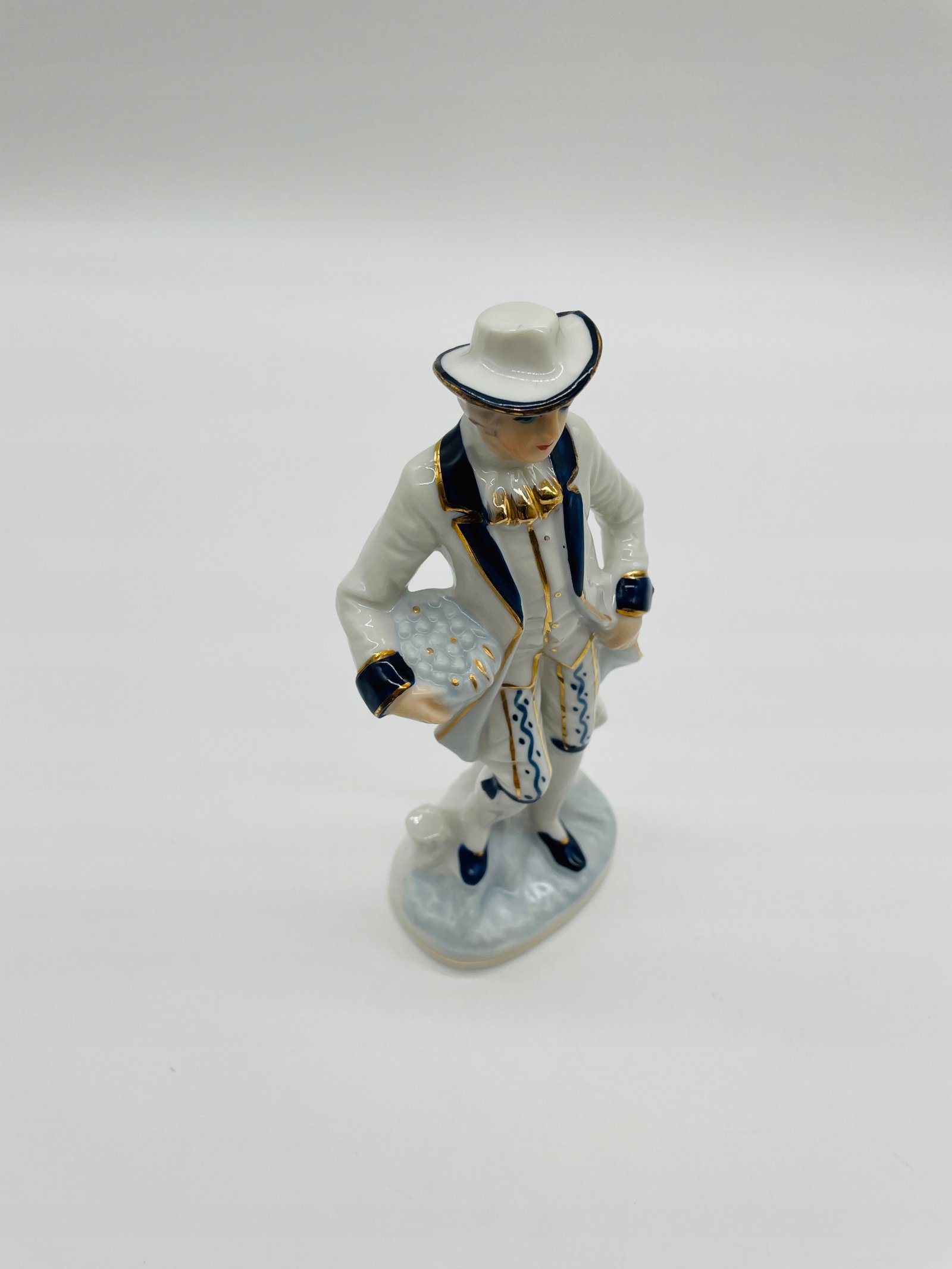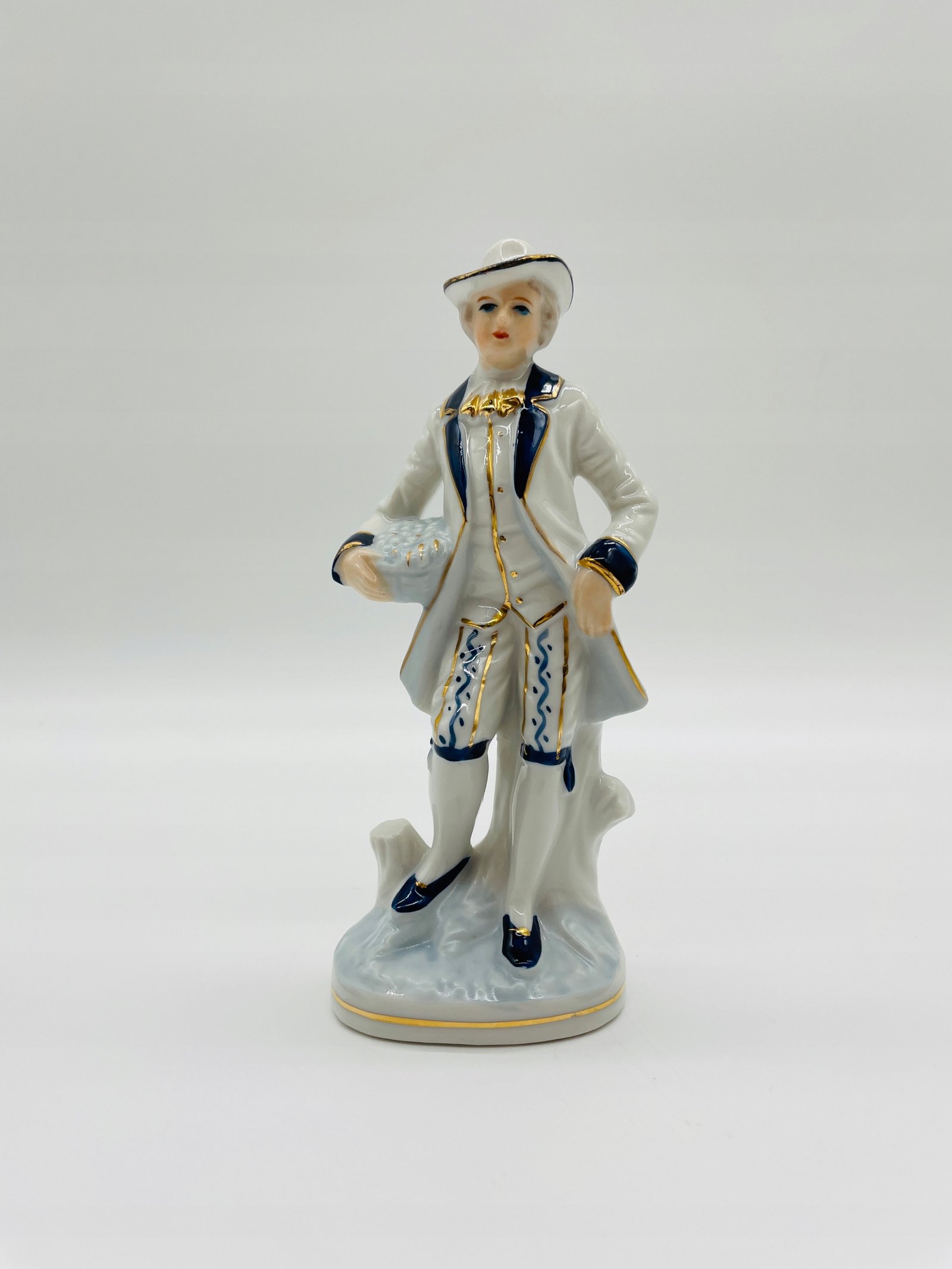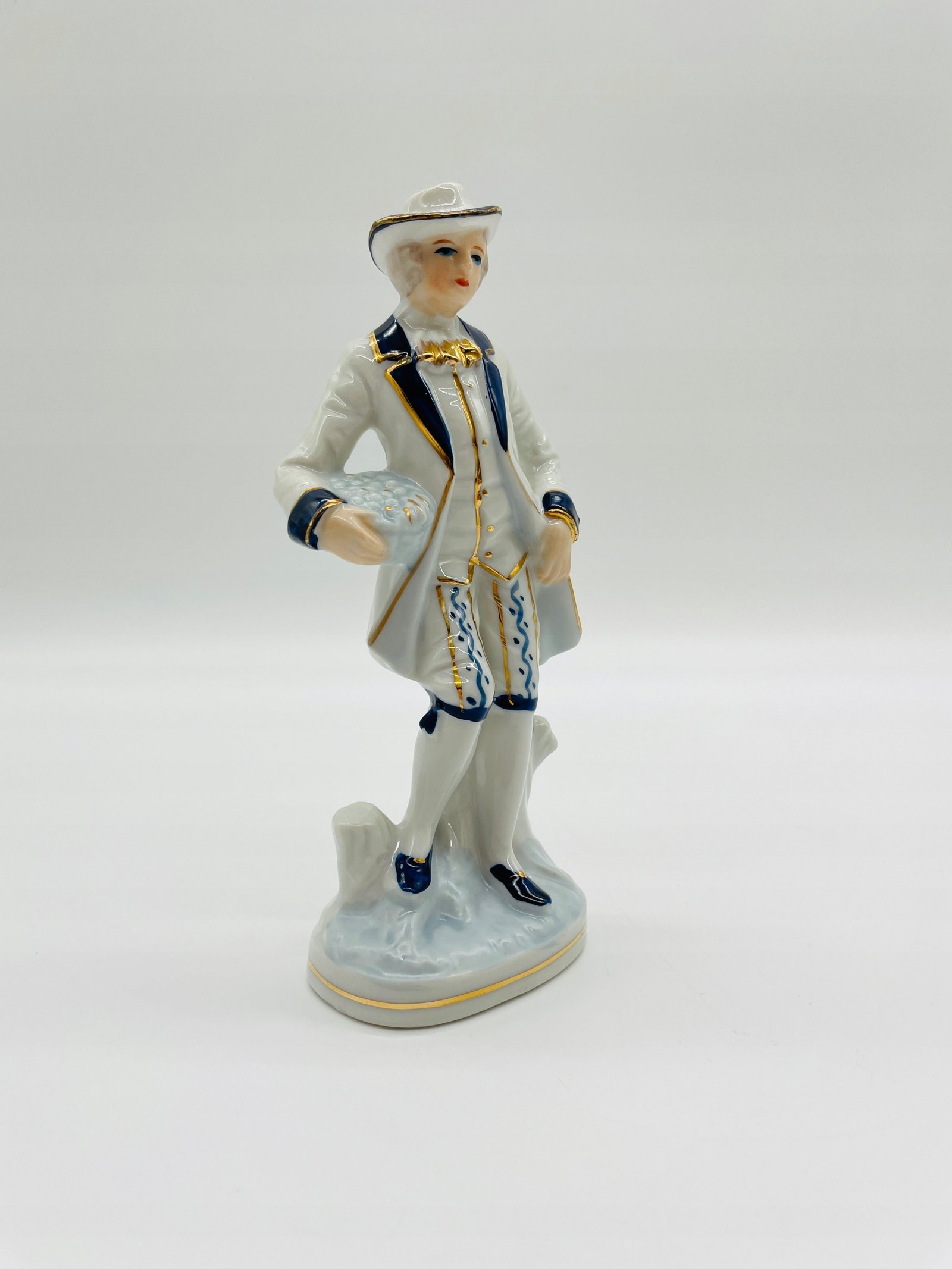 Figurka porcelanowa mężczyzna z kwiatami niebieskie akcenty