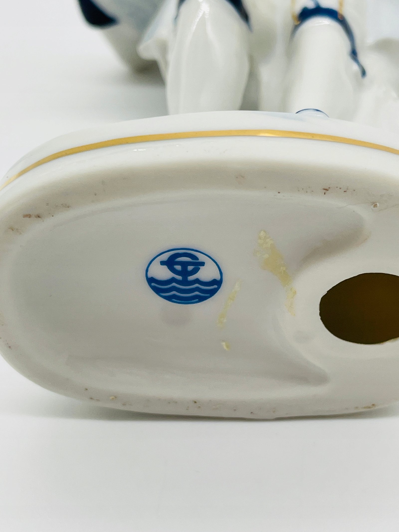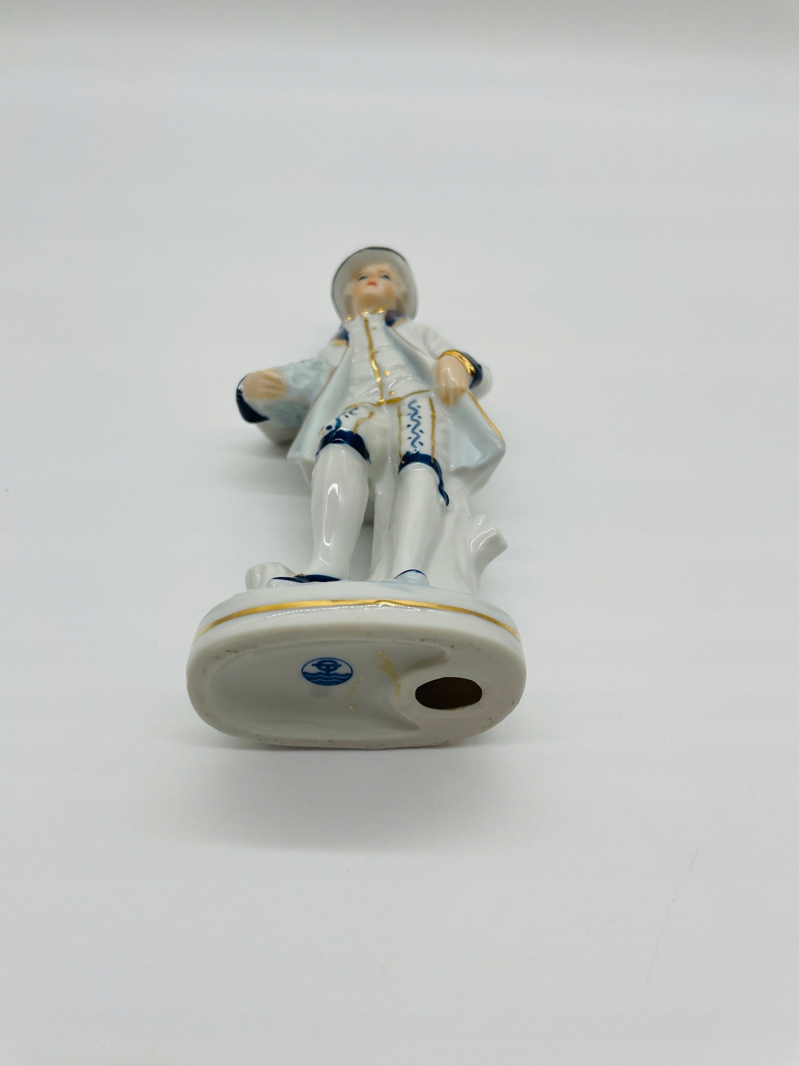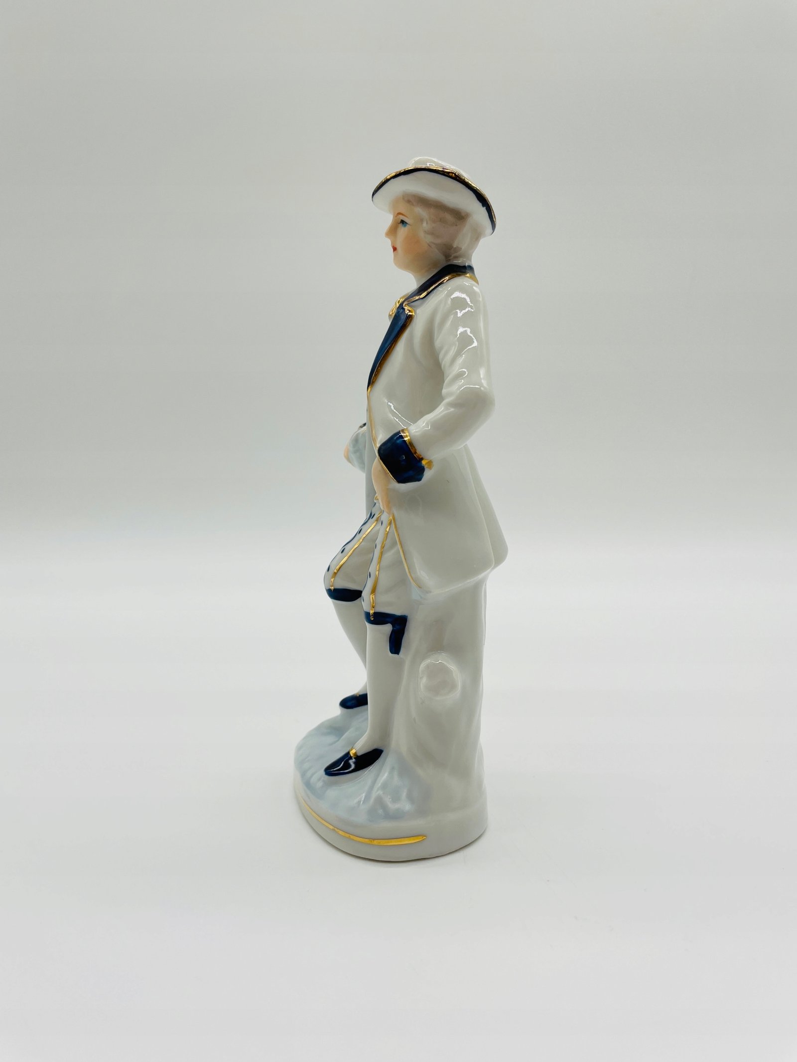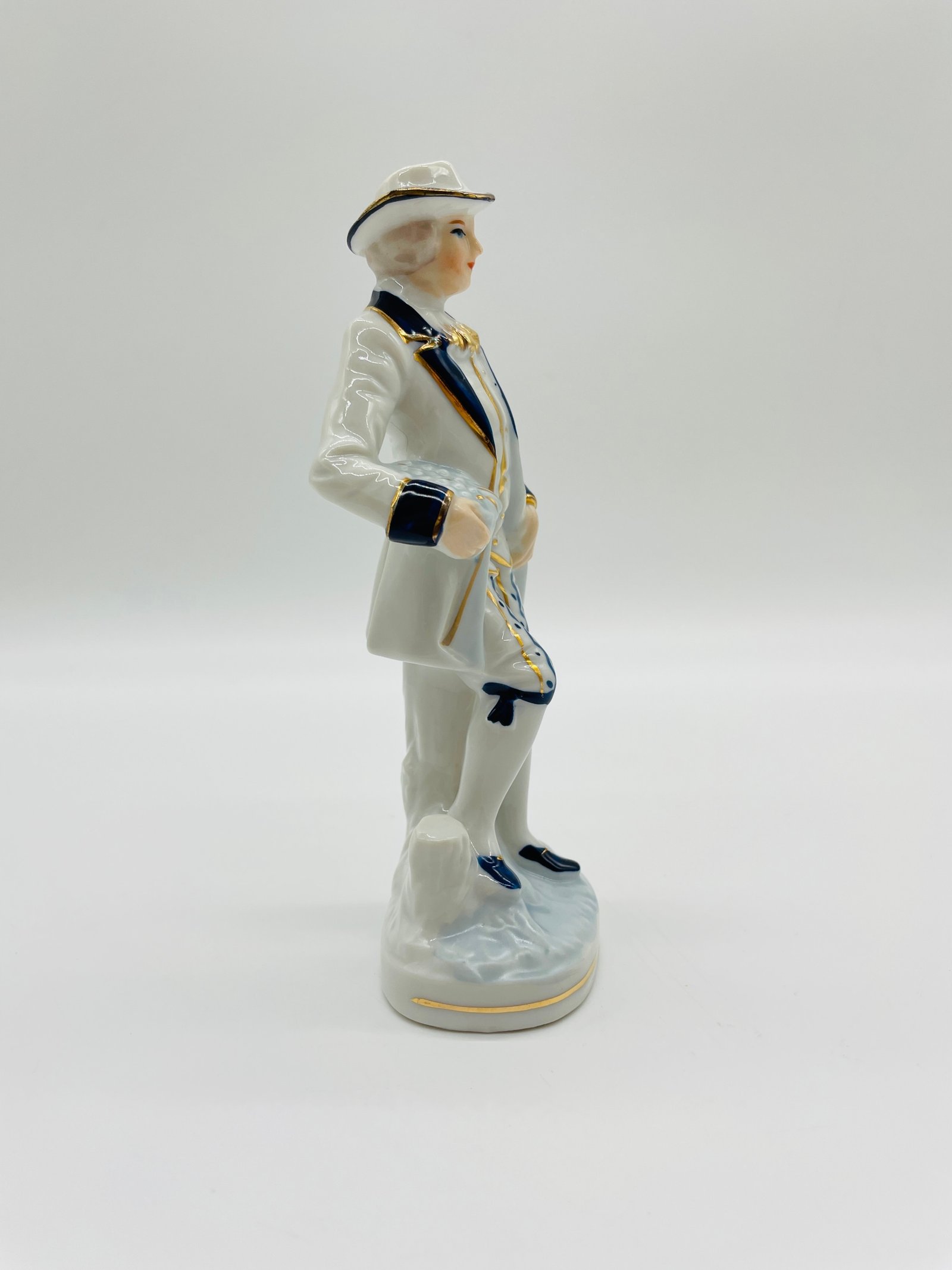 Figurka porcelanowa mężczyzna z kwiatami niebieskie akcenty