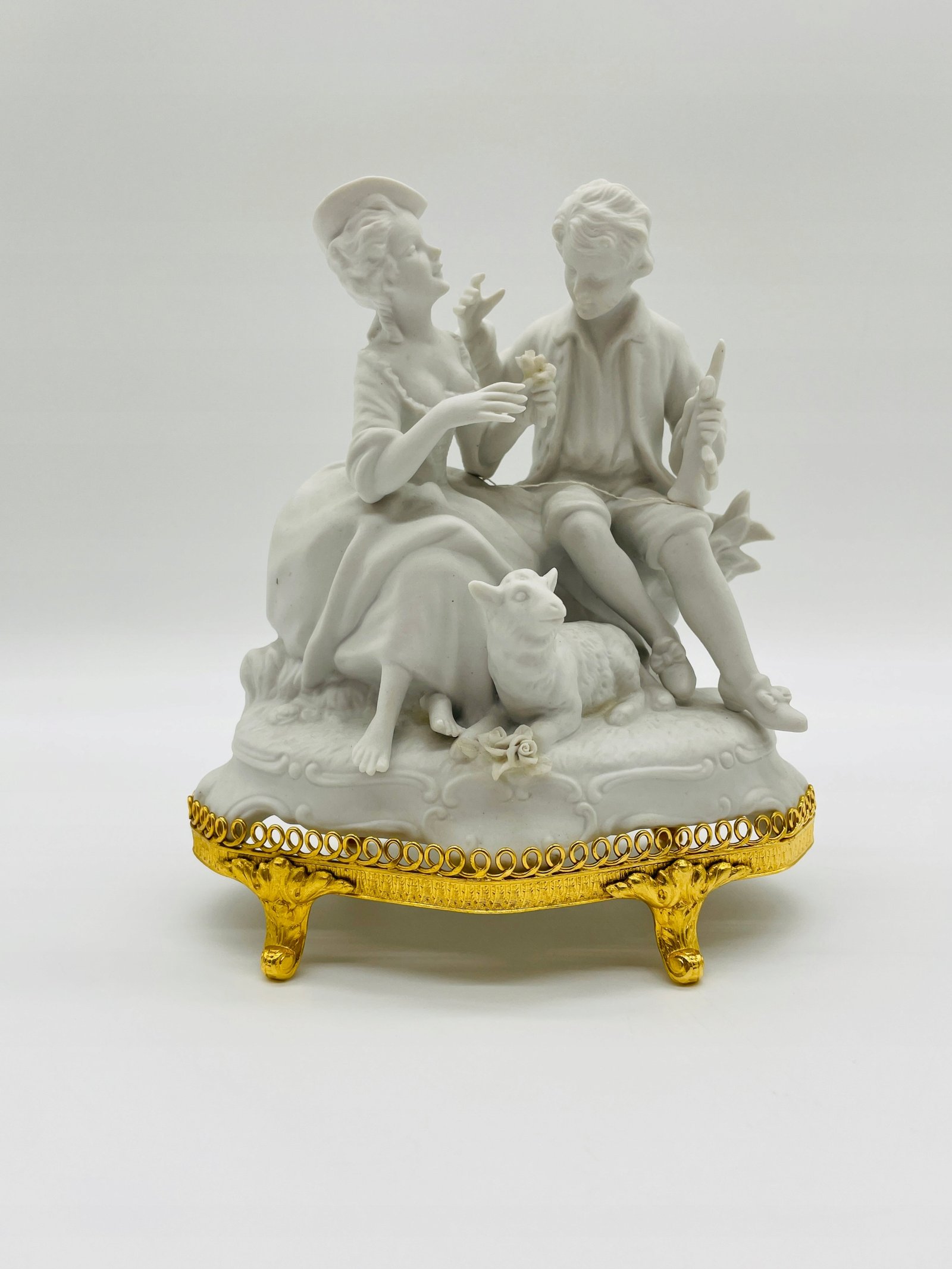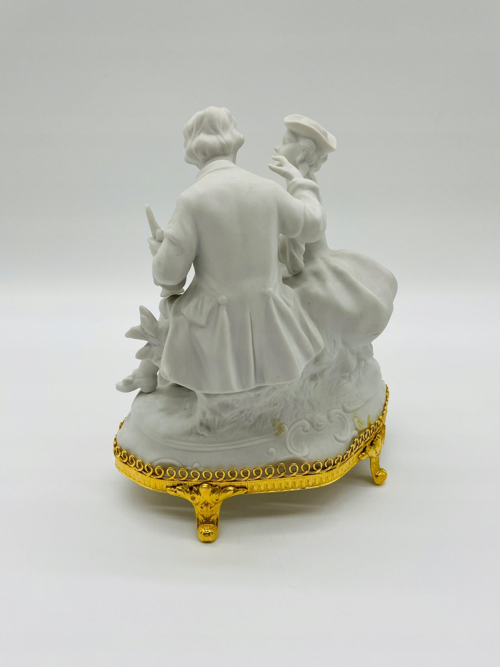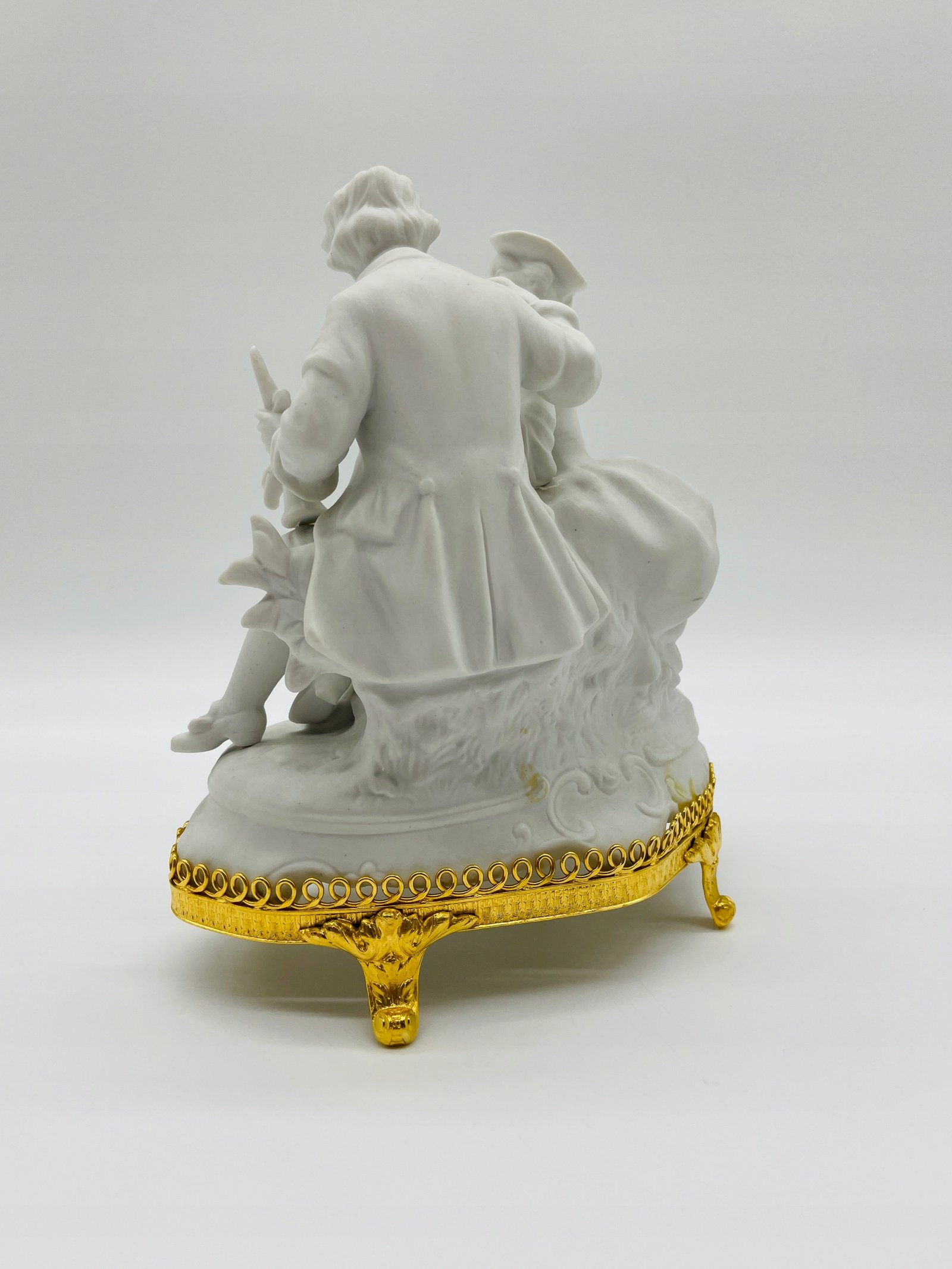 Figurka Unterweissbach Niemcy ok.1960 para z owcą pozłacana podstawa