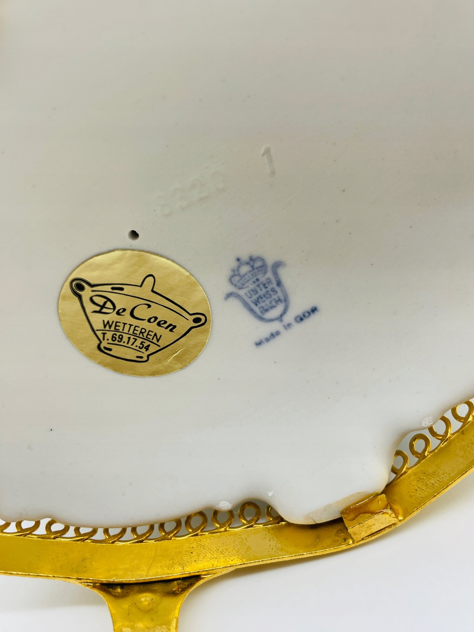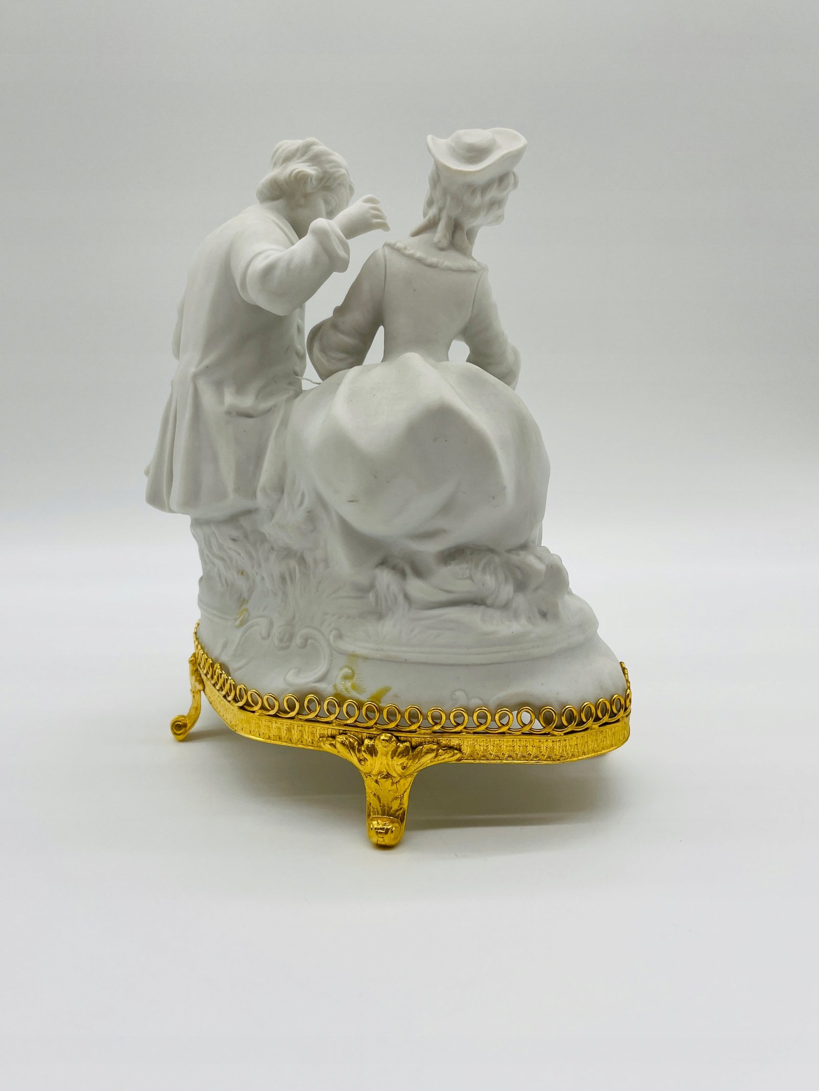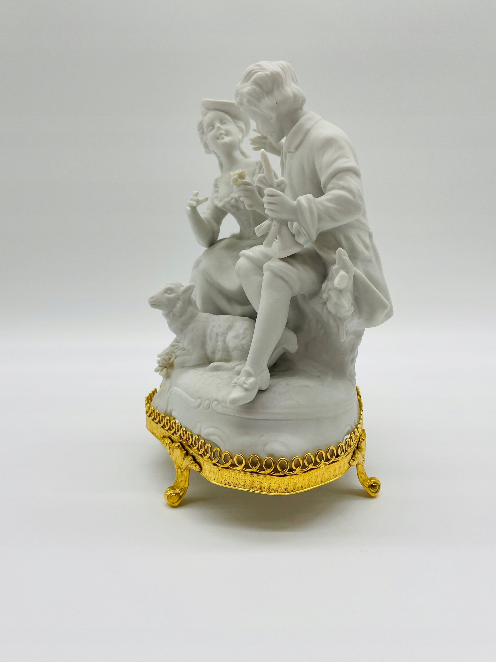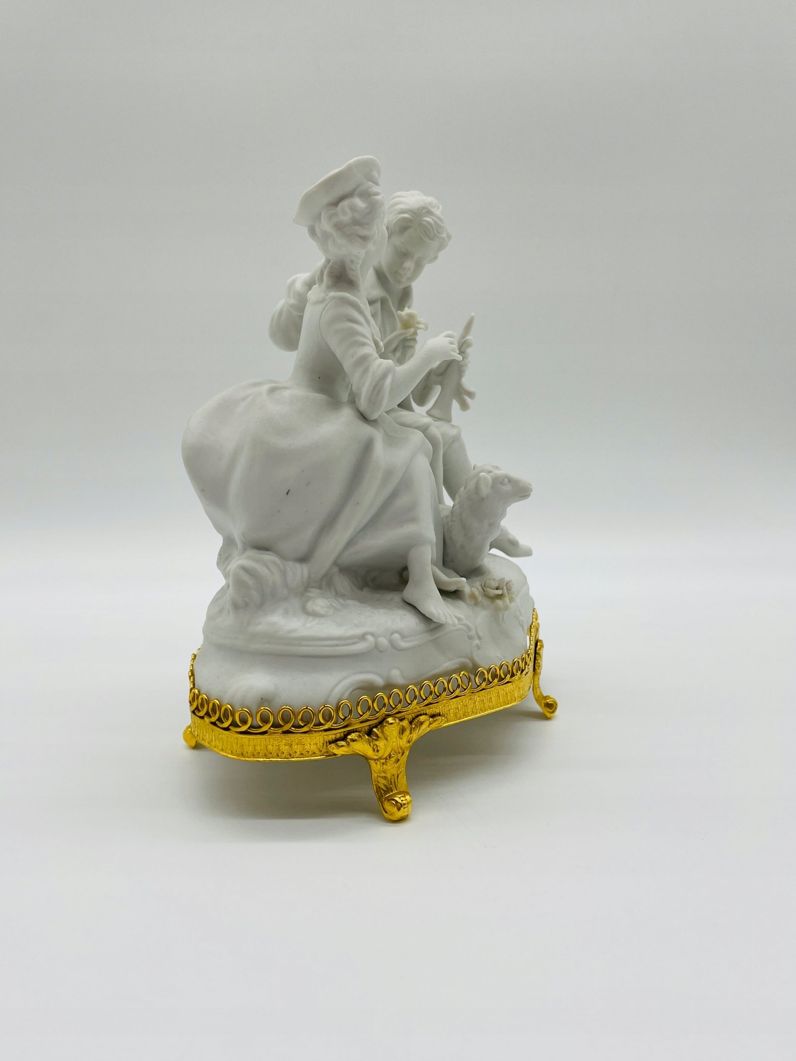 Figurka Unterweissbach Niemcy ok.1960 para z owcą pozłacana podstawa