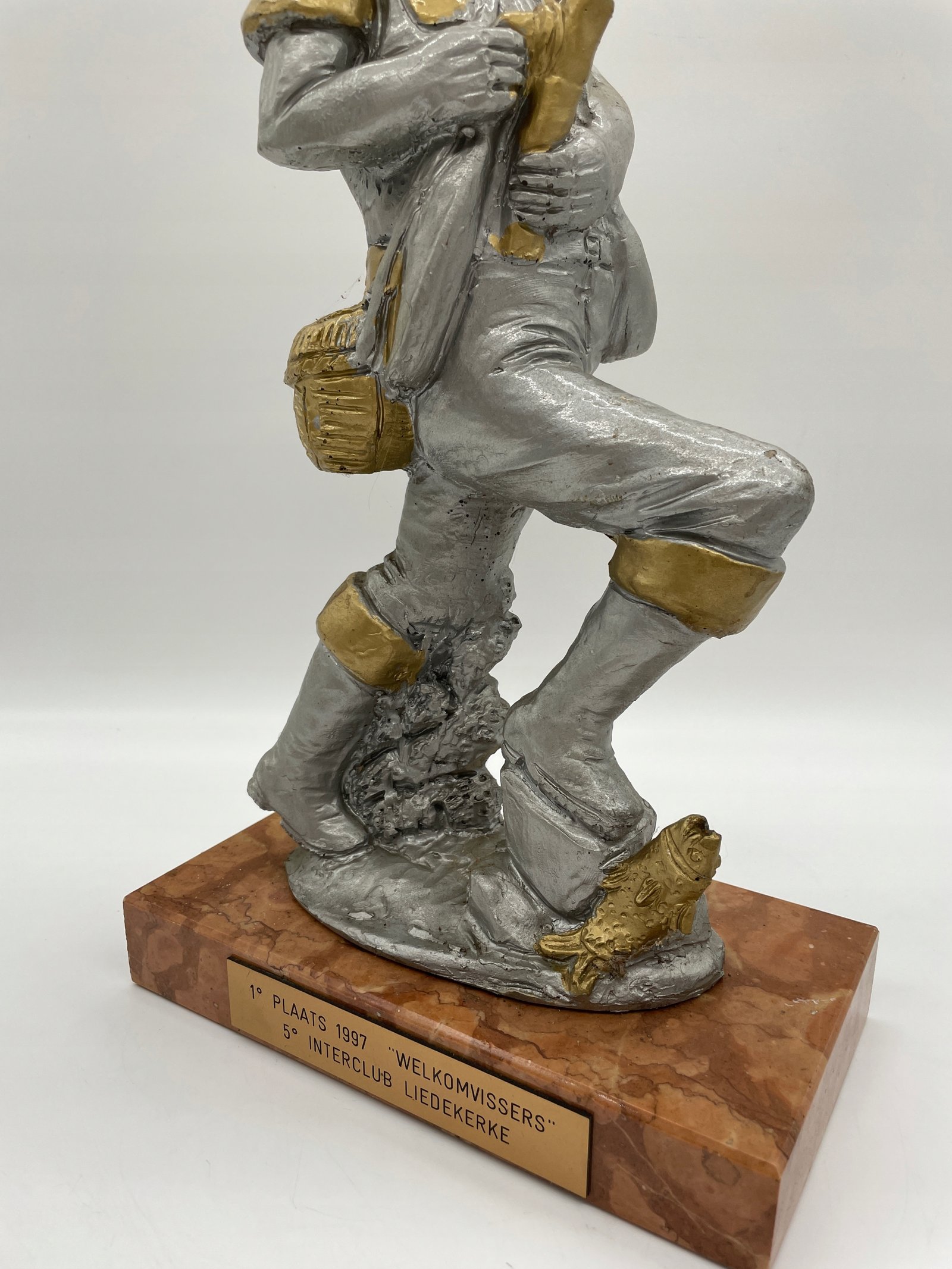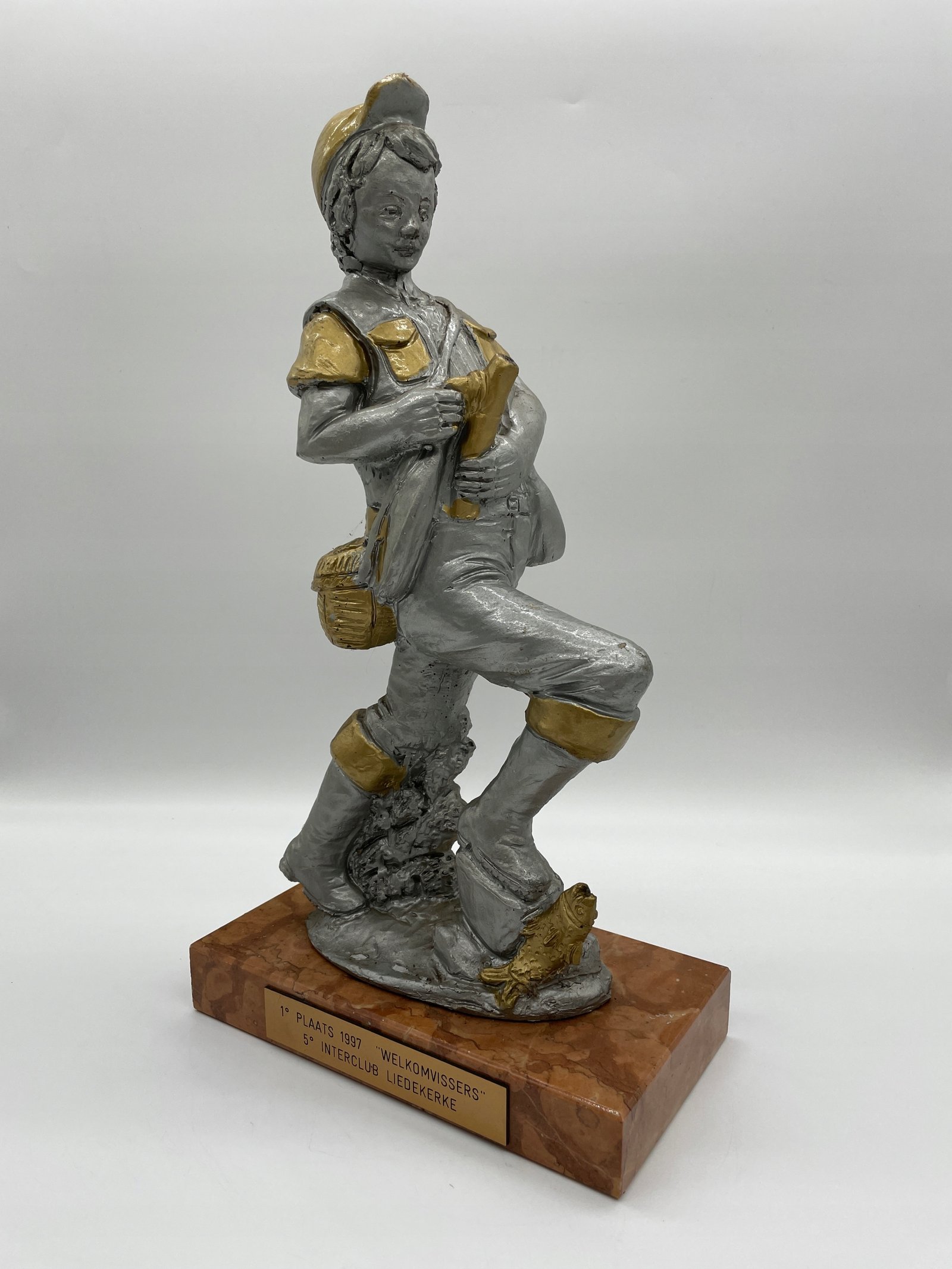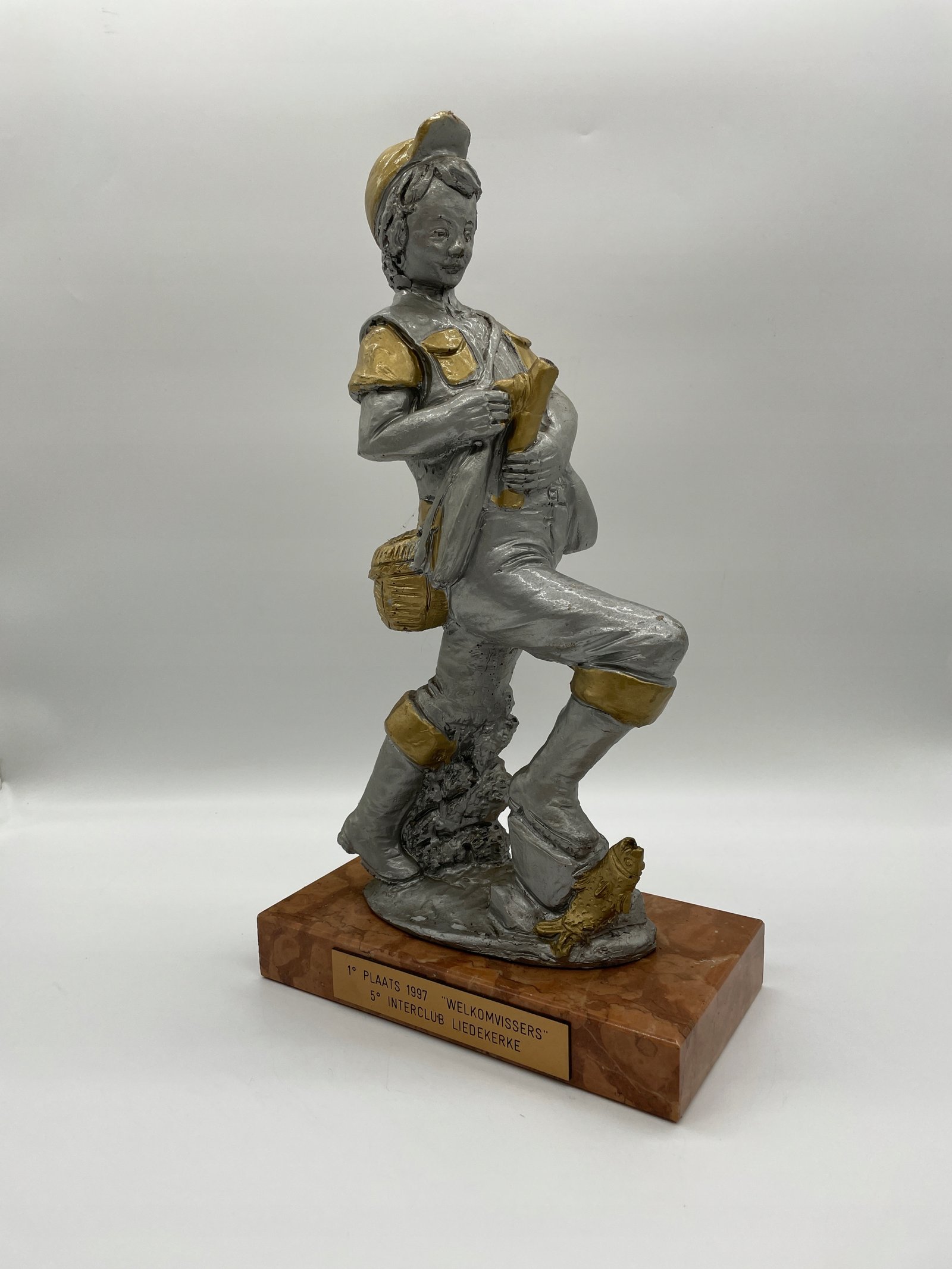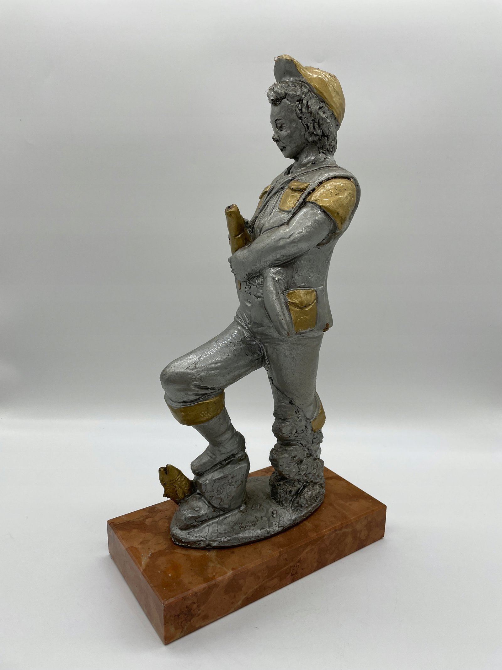 Figurka wedkarza dekoracyjna vintage 46 cm