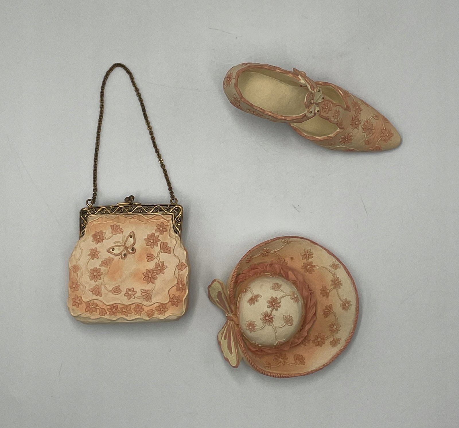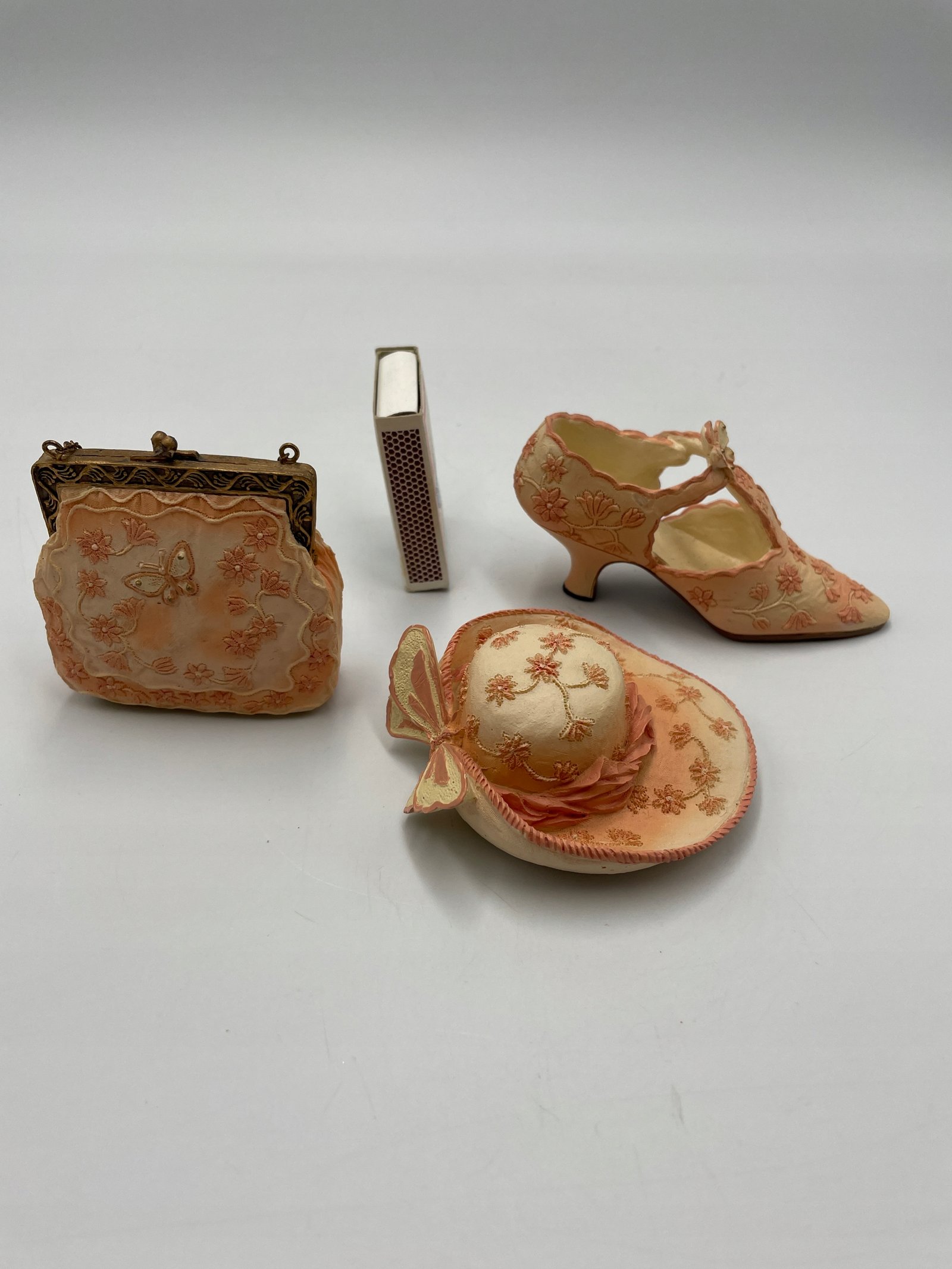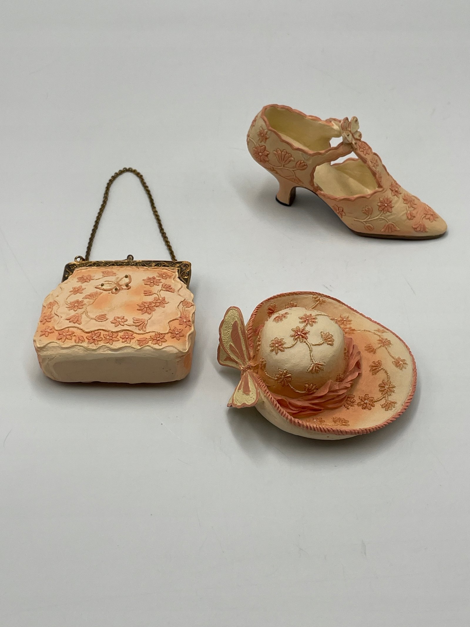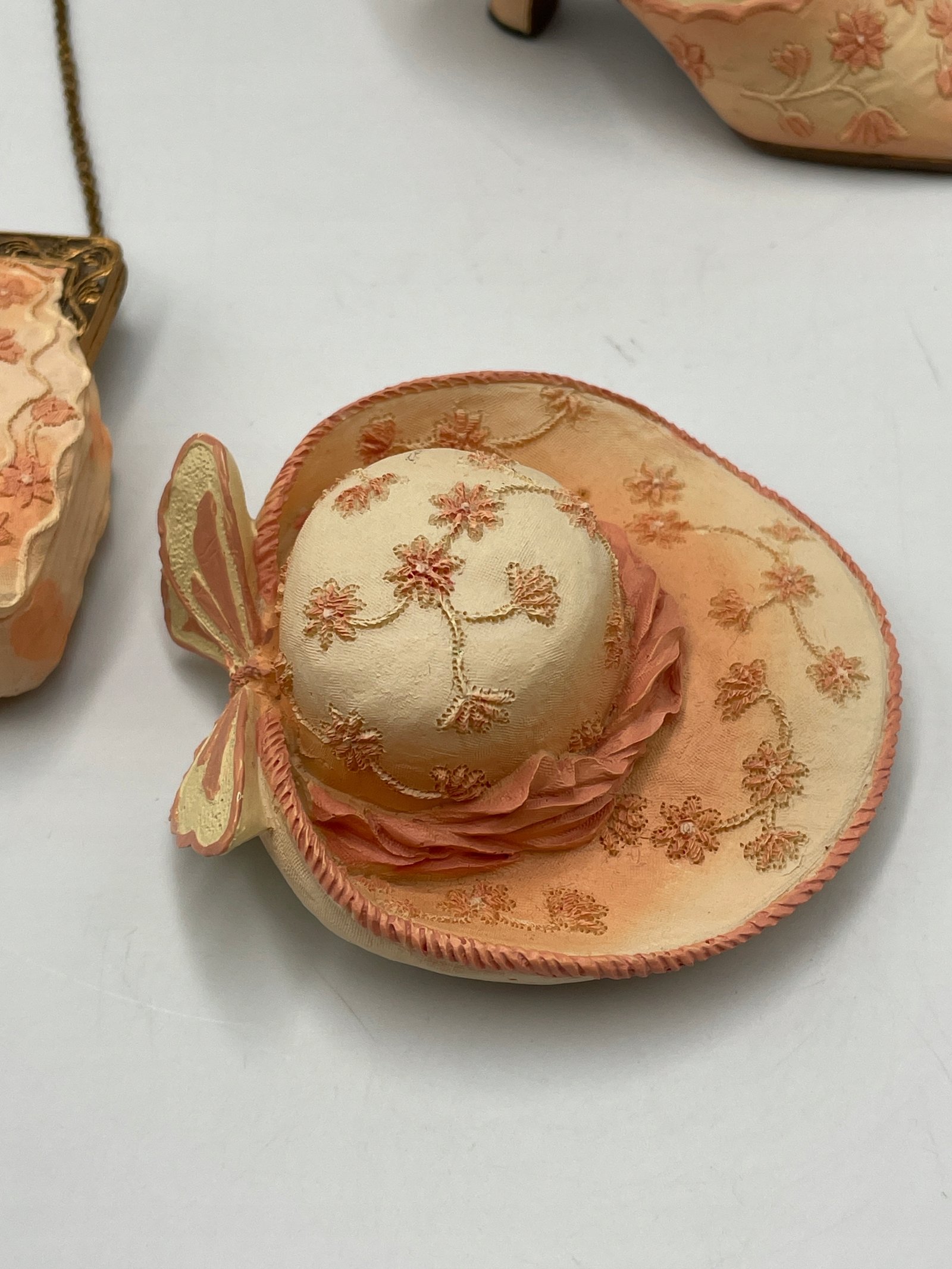 Figurki dekoracyjne: kapelusz torebka bucik