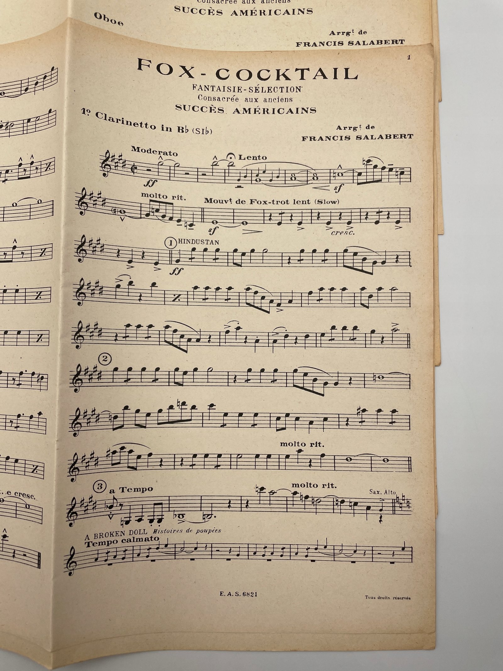 Oryginalne wydanie zbioru „Fox Cocktail” opracowanego przez Francisa Salaberta. Jest to fantazja złożona z amerykańskich przebojów w stylu foxtrot, przeznaczona na mały zespół instrumentalny. Aranżacje zachowane w lekkiej, tanecznej stylistyce z elementami swingu.