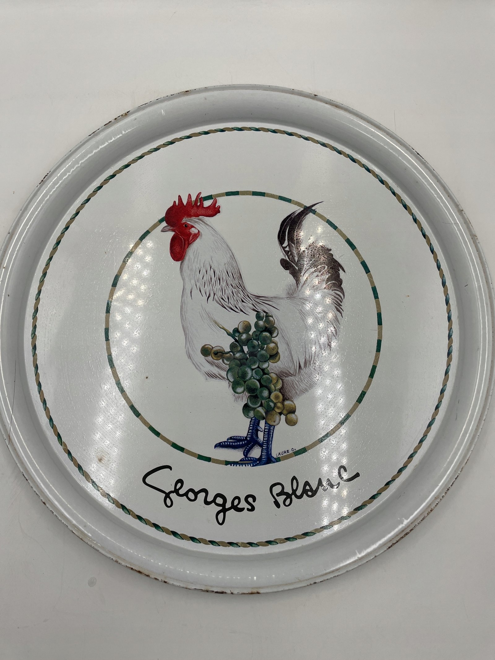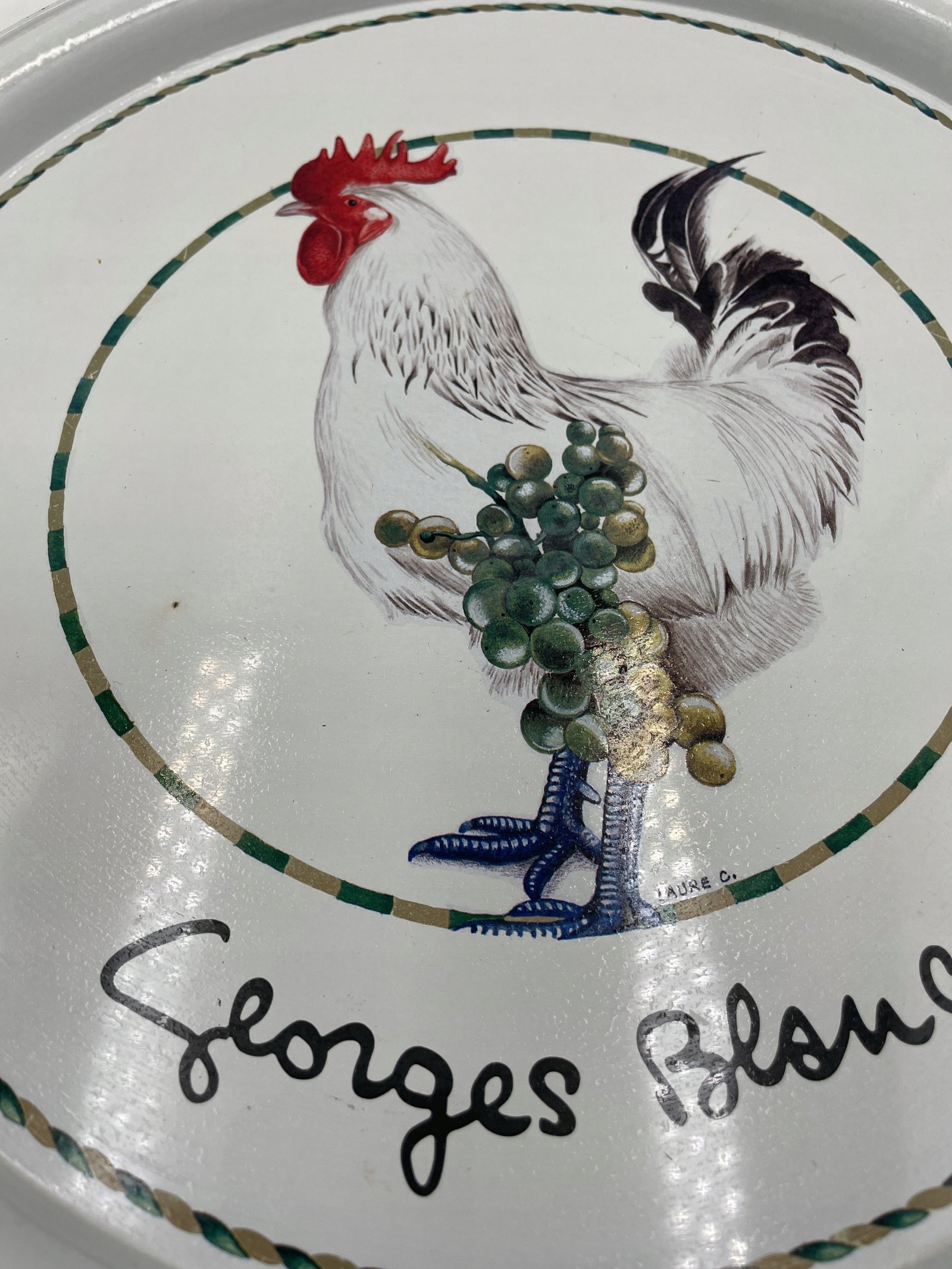 Talerz-taca Georges Blanc Francja ok.1985 metalowa z kogutem 33cm
