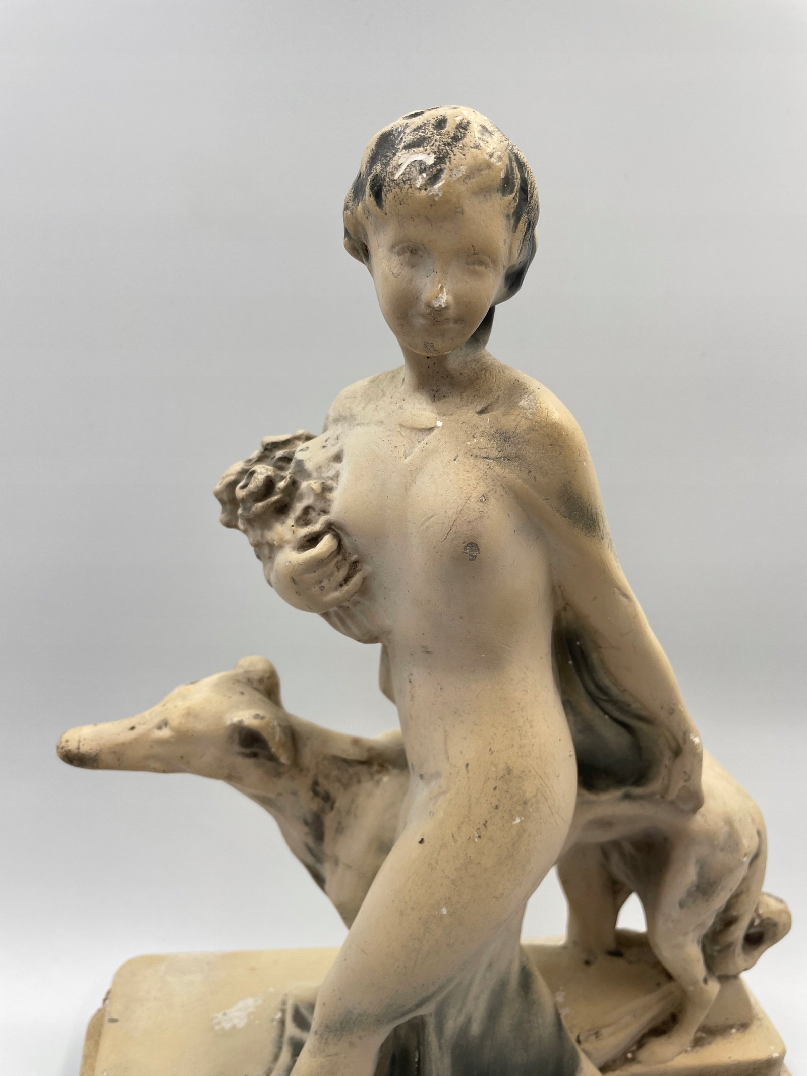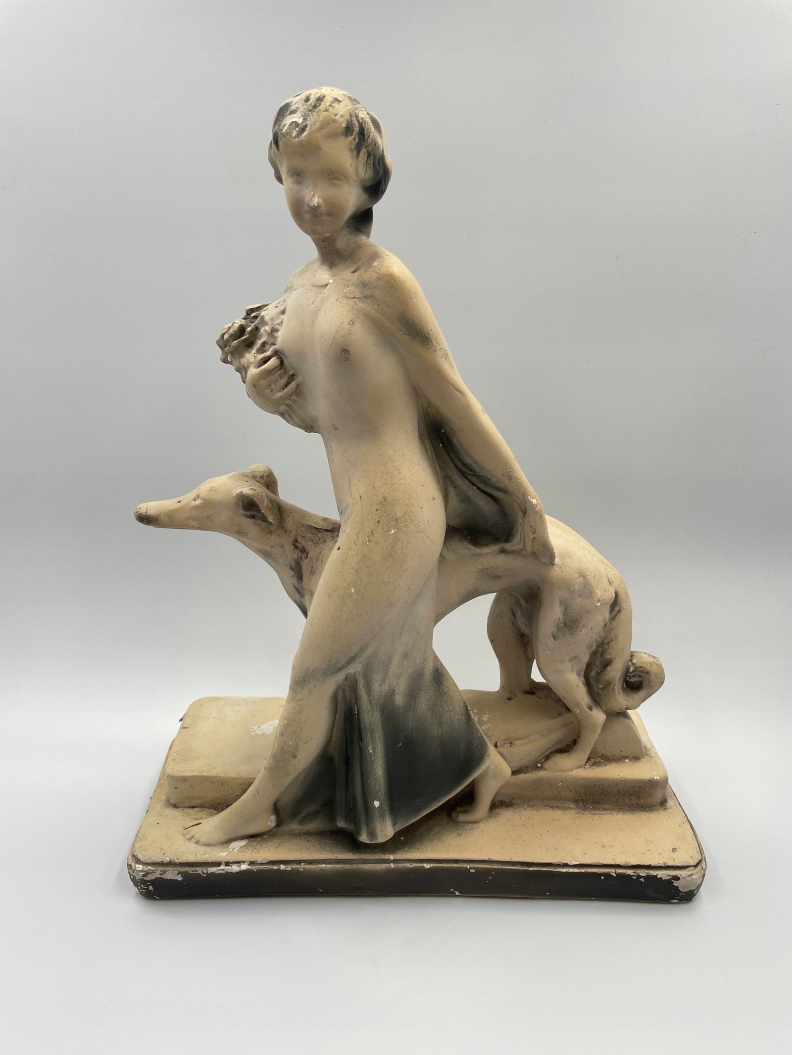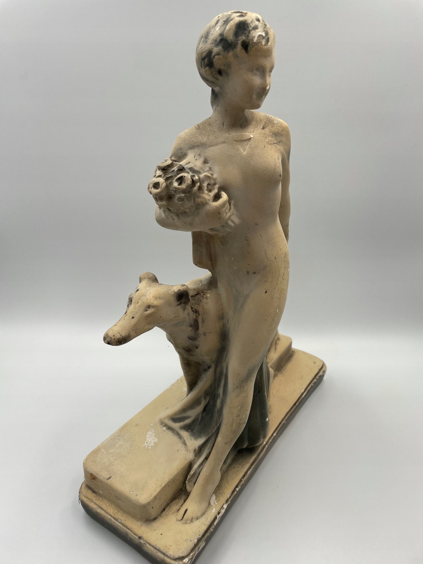 Gipsowa Figurka kobiety z psem