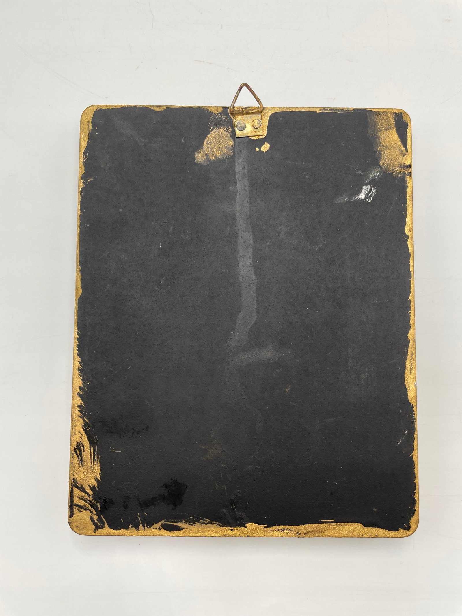 widoczne ślady użytkowania, w tym delikatne przetarcia i drobne uszkodzenia ramki w rogach, zgodne z wiekiem przedmiotu.