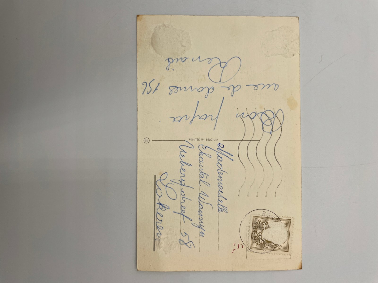 Kartka Belgia 1960 kareta w zimowym mieście napis Bonne Année