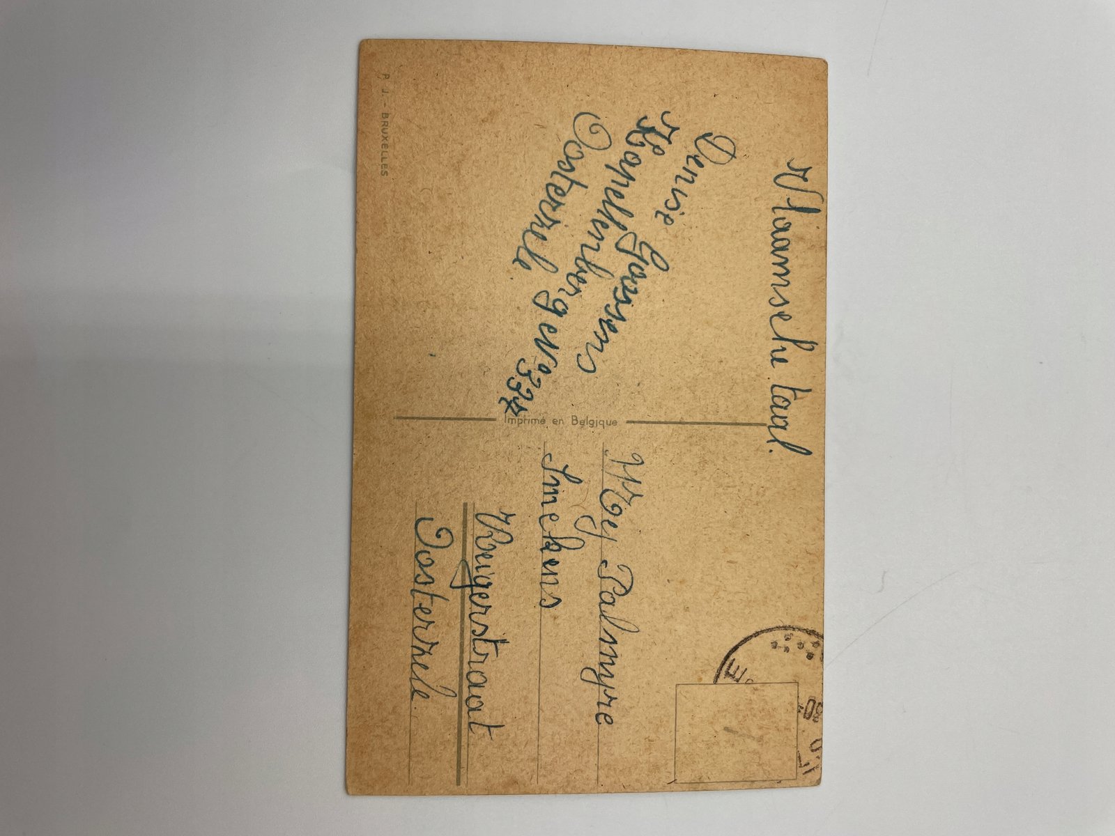 Na odwrocie znajduje się nadruk „J. B. – Bruxelles” i „Imprimé en Belgique”, wskazujący na wydawcę z Brukseli.