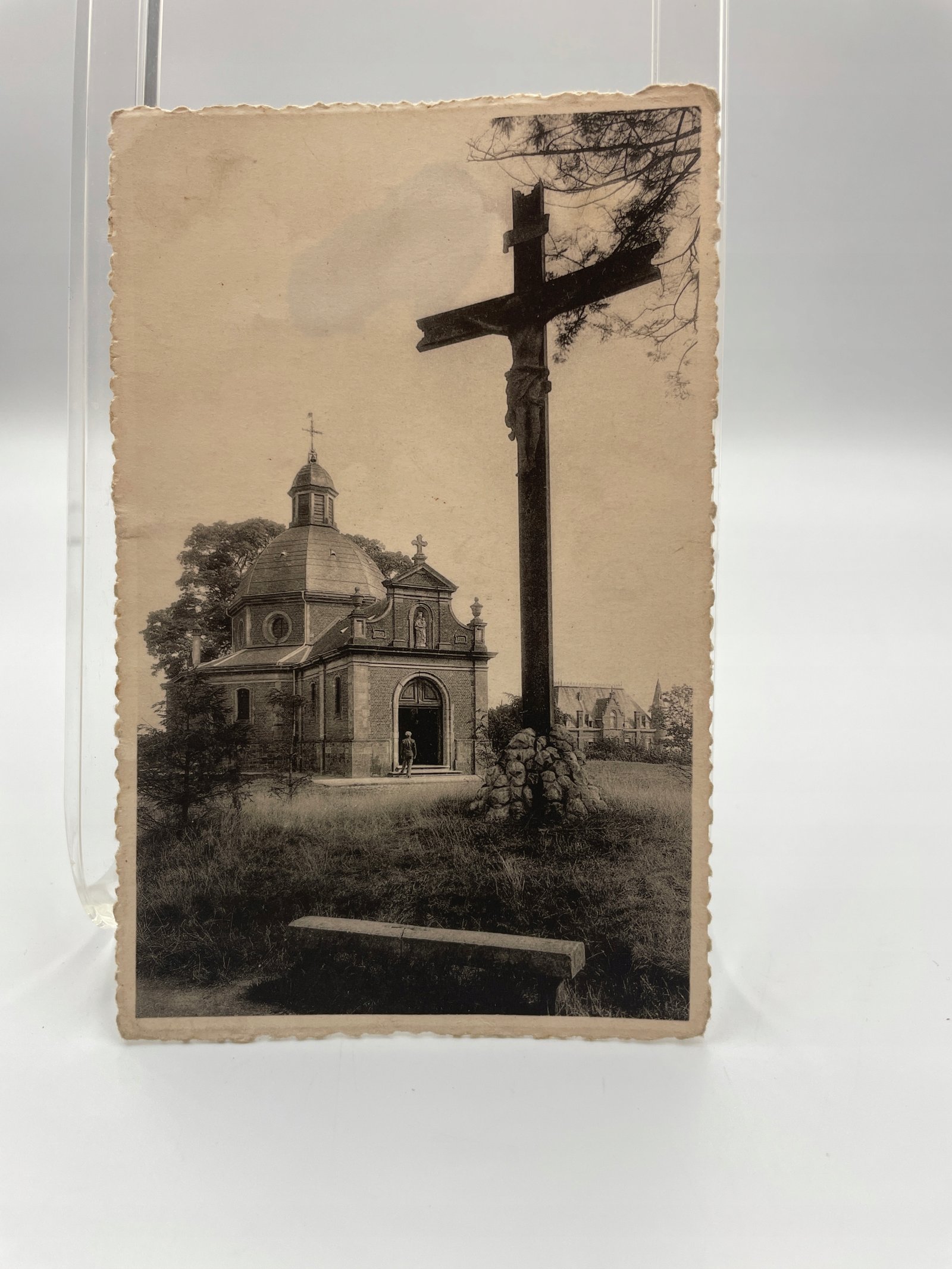 Kartka pocztowa Belgia 1950s kaplica i krzyż na górze Oudenberg