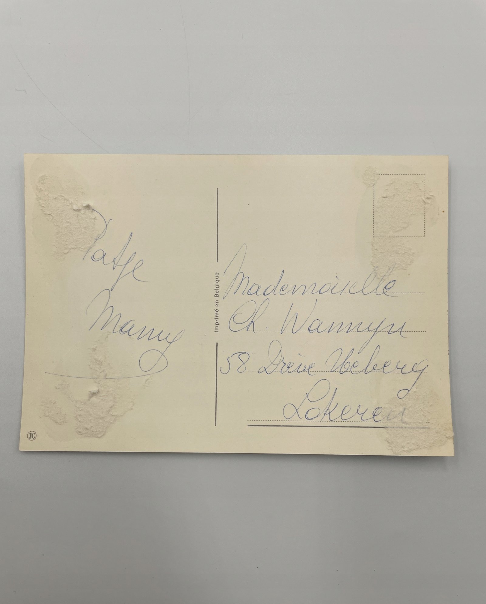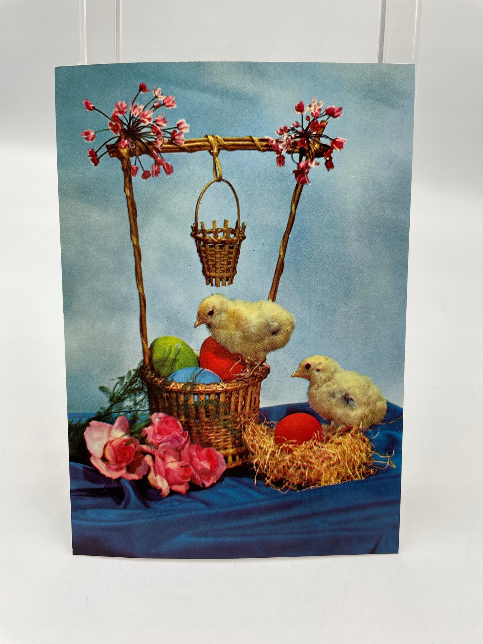 Kartka pocztowa Belgia 1950s wielkanocne kurczaki koszyk kwiaty JC