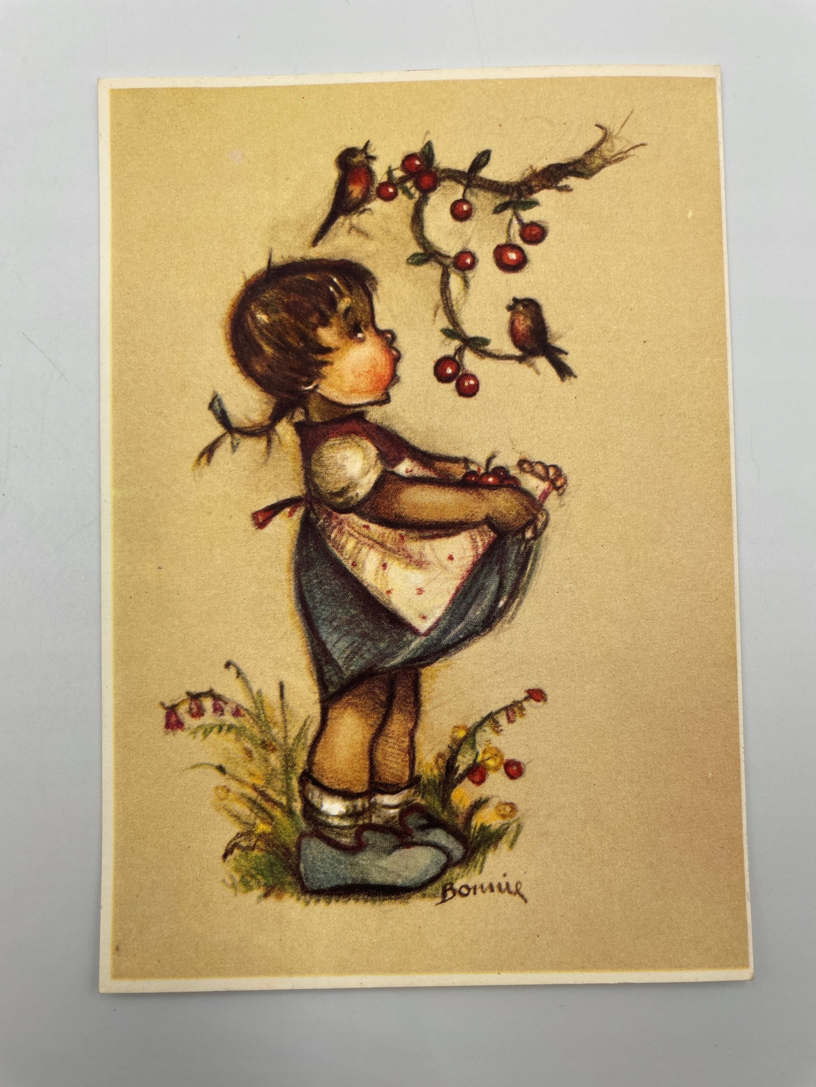 Kartka pocztowa Belgia 1952 dziewczynka i ptaki rysunek Bomiś