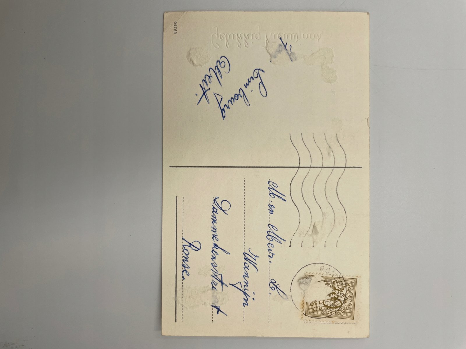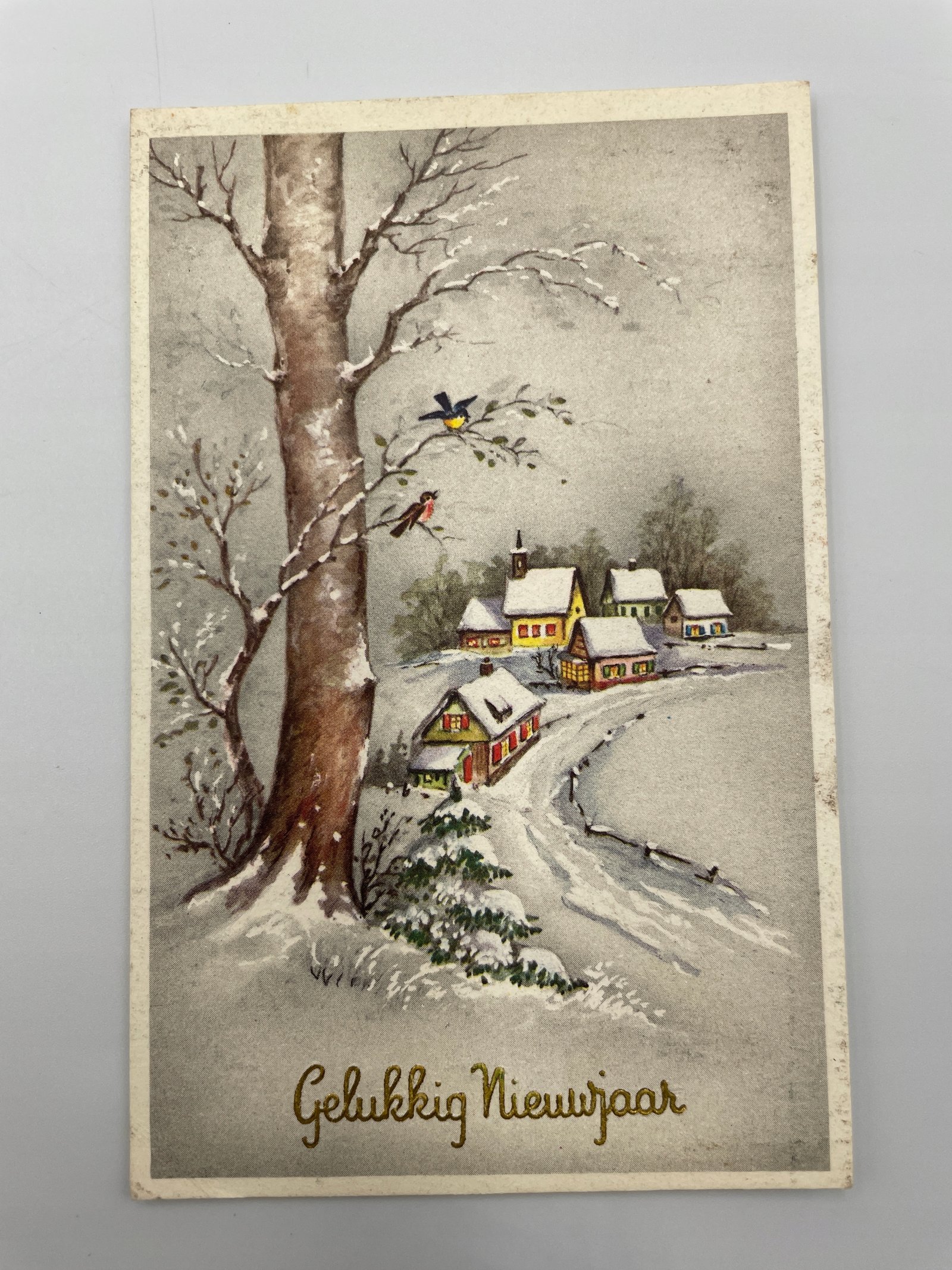 Kartka pocztowa Belgia 1953 zima wieś ptaki śnieg złoty napis