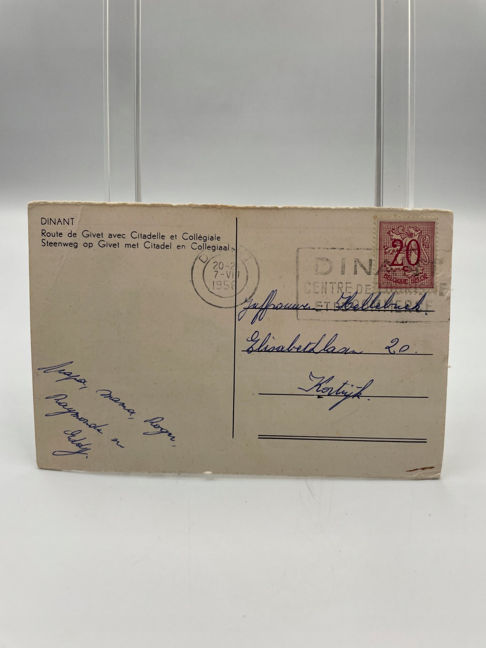 Kartka pocztowa Belgia 1956 Dinant Kościół i Cytadela zdjęcie czarno-białe