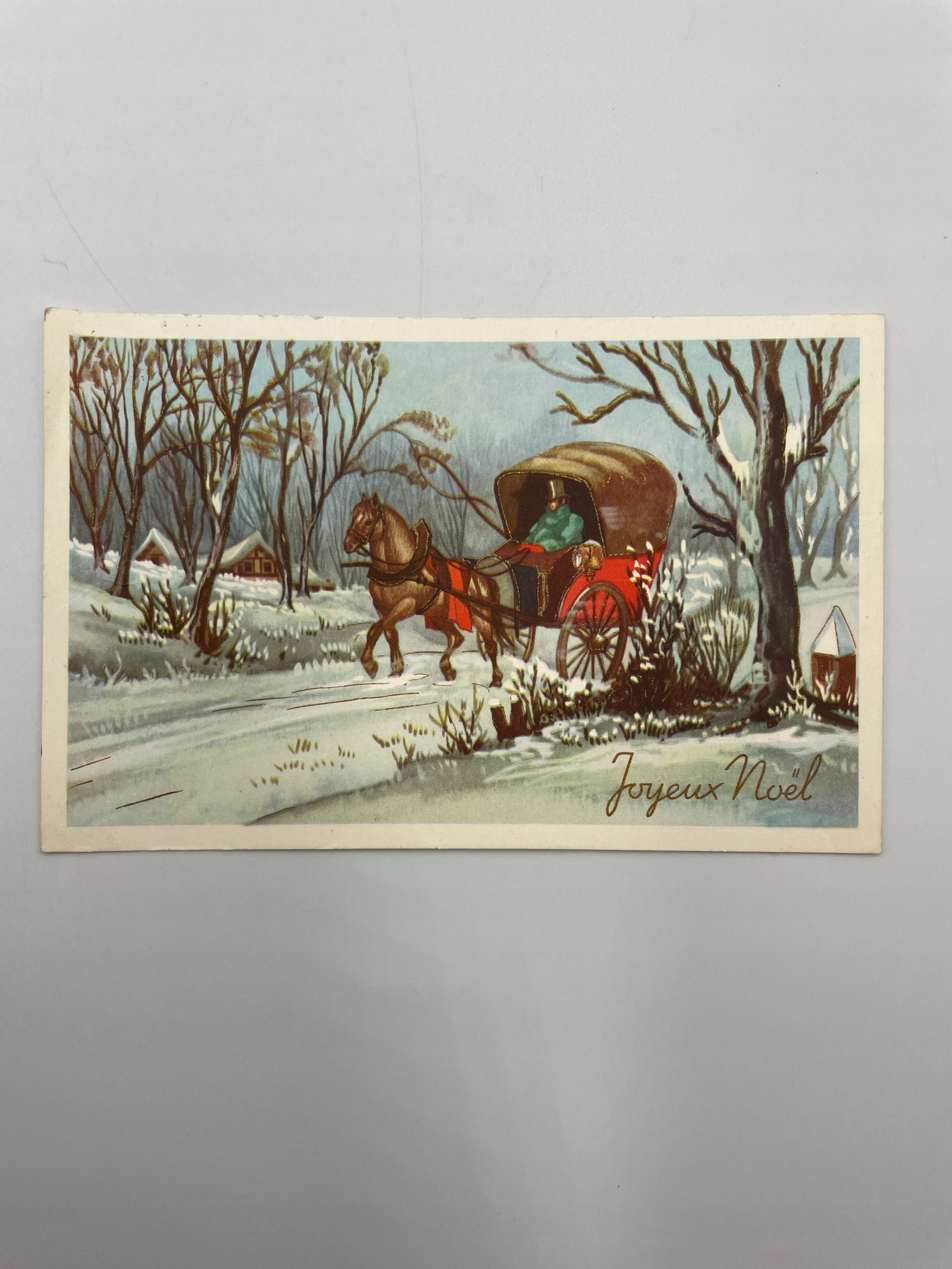 Kartka pocztowa Belgia 1957 Boże Narodzenie powóz zimą Joyeux Noël