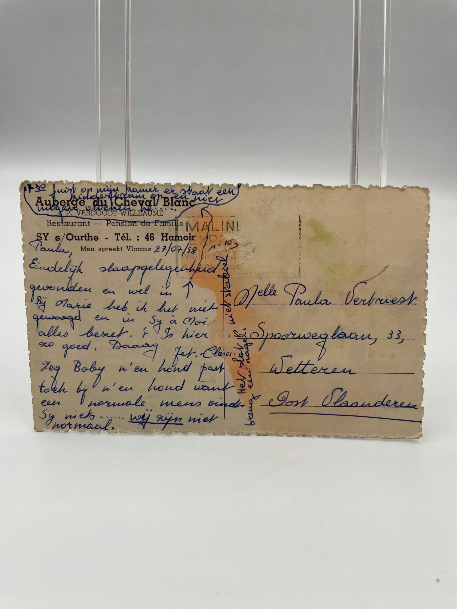 Kartka pocztowa Belgia 1958 Sy s/Ourthe Auberge du Cheval Blanc restauracja