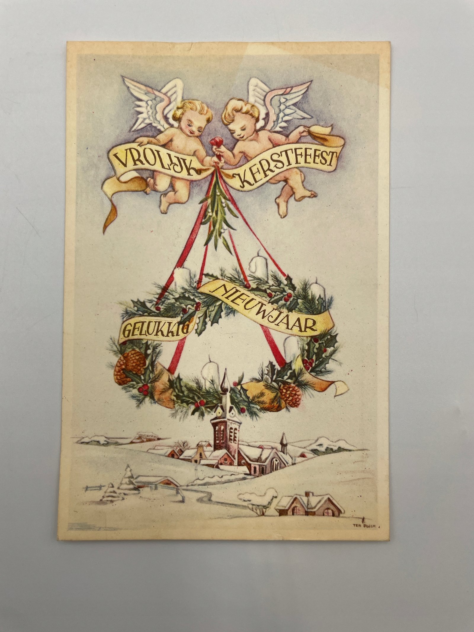 Kartka pocztowa Belgia 1959 Narodzenie anioły pejzaż Ten Dolle