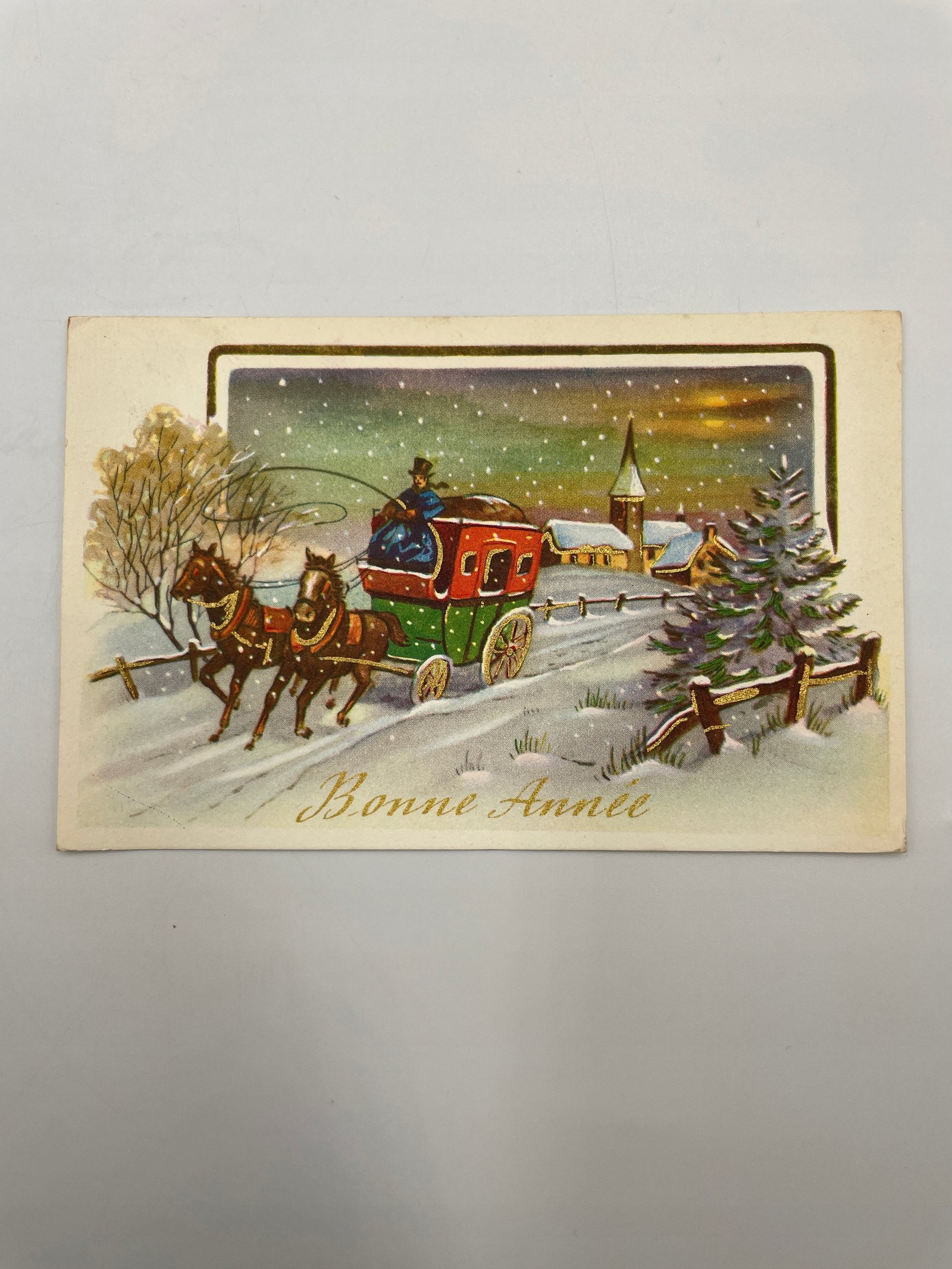 Kartka Belgia 1960 Nowy Rok dzieci na sankach w wiosce