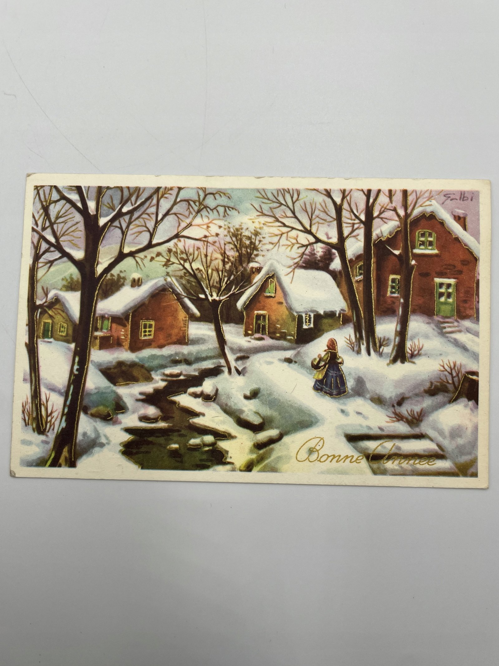 Kartka Belgia 1960 Bonne Année wieś zimą strumień